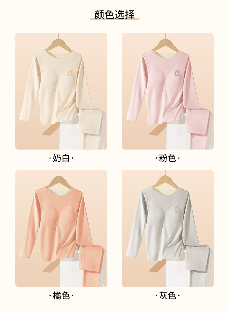 【德绒保暖套装,魅力无限】儿童保暖内衣女童带胸垫,使孩子充满自信。桑蚕丝养肤,舒适呵护。大童秋衣秋裤,健康温暖,舒适贴身!