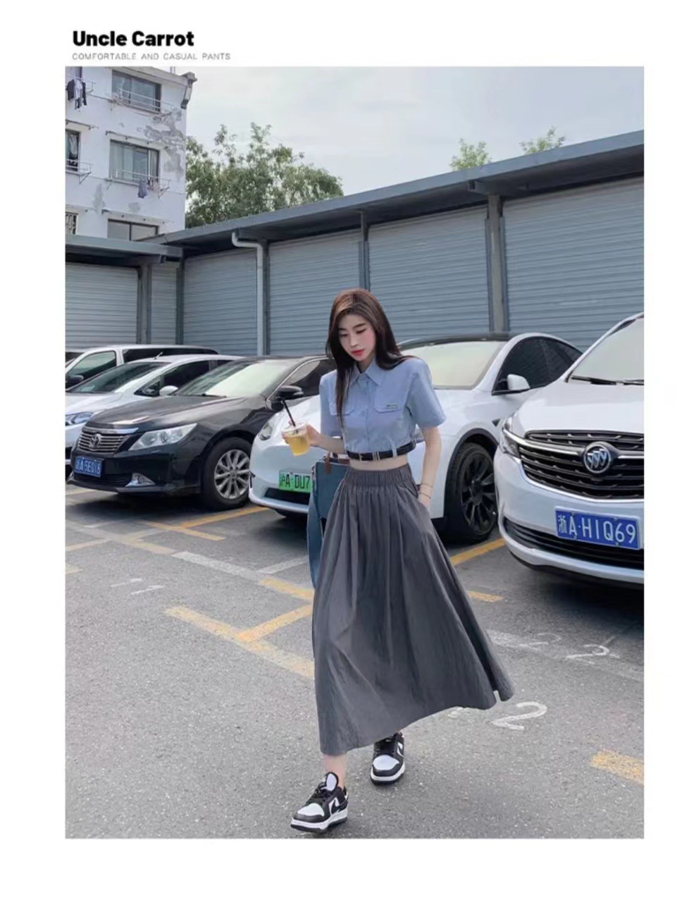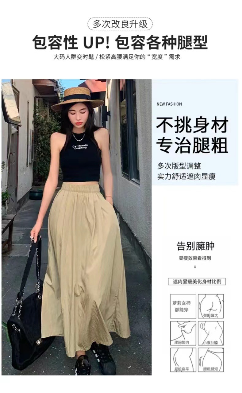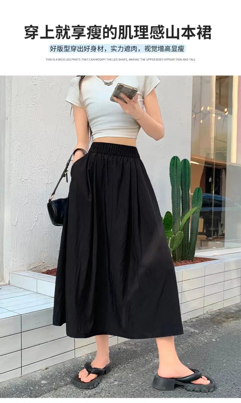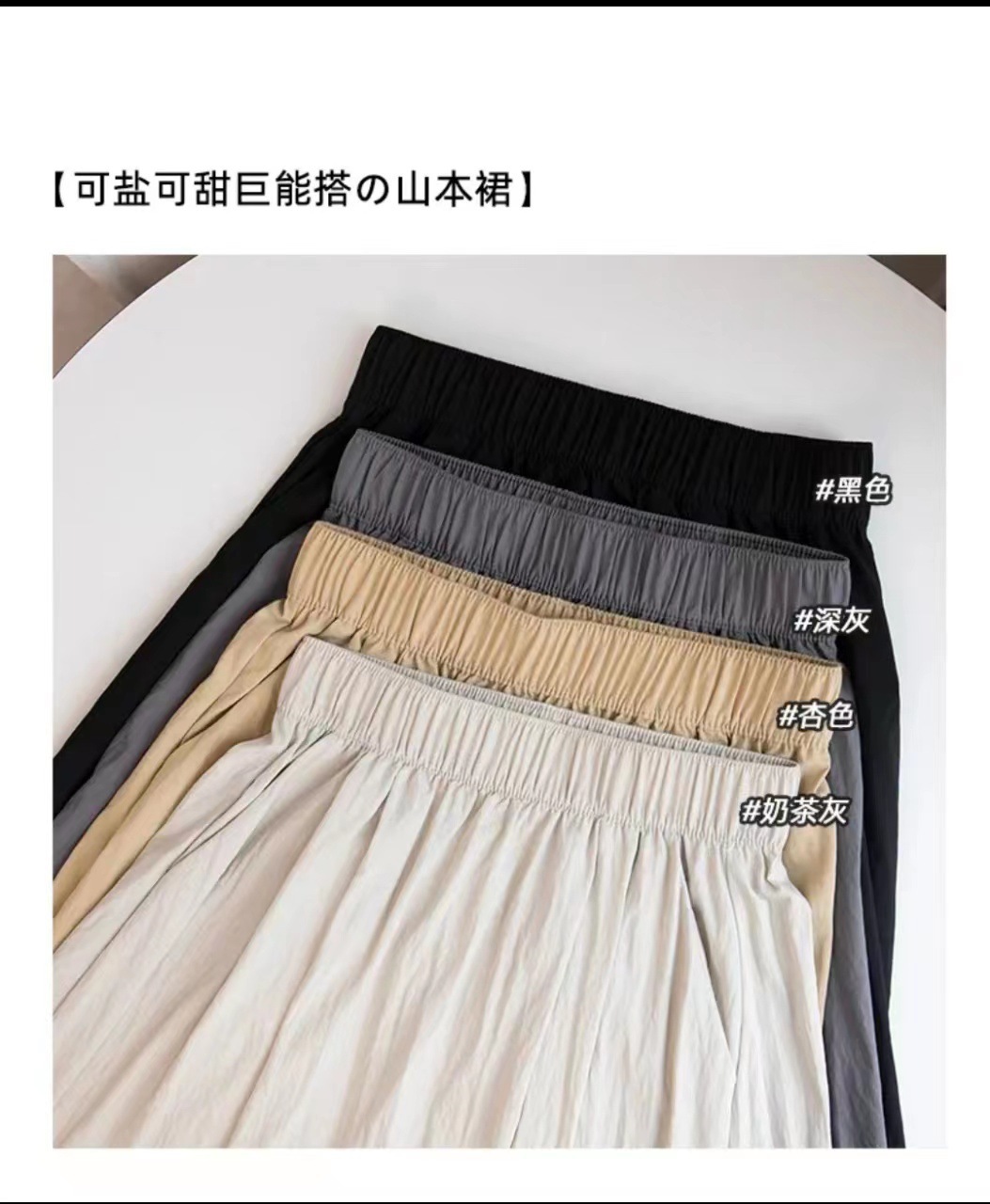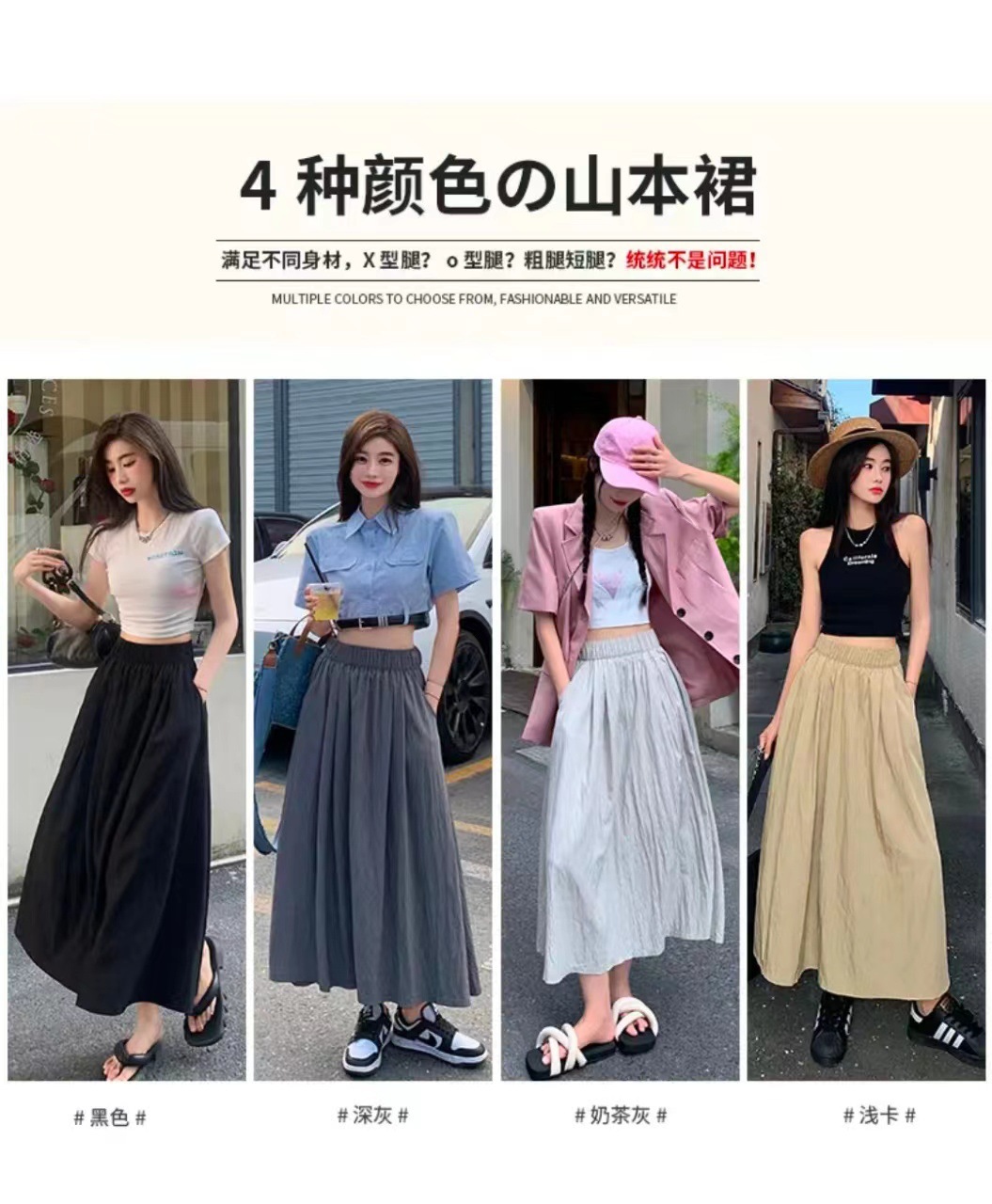 【夏日显瘦,时尚优雅】山本半身裙女中长款 夏季过膝显瘦长裙 复古A型褶皱慵懒风裙子 淑女范十足!