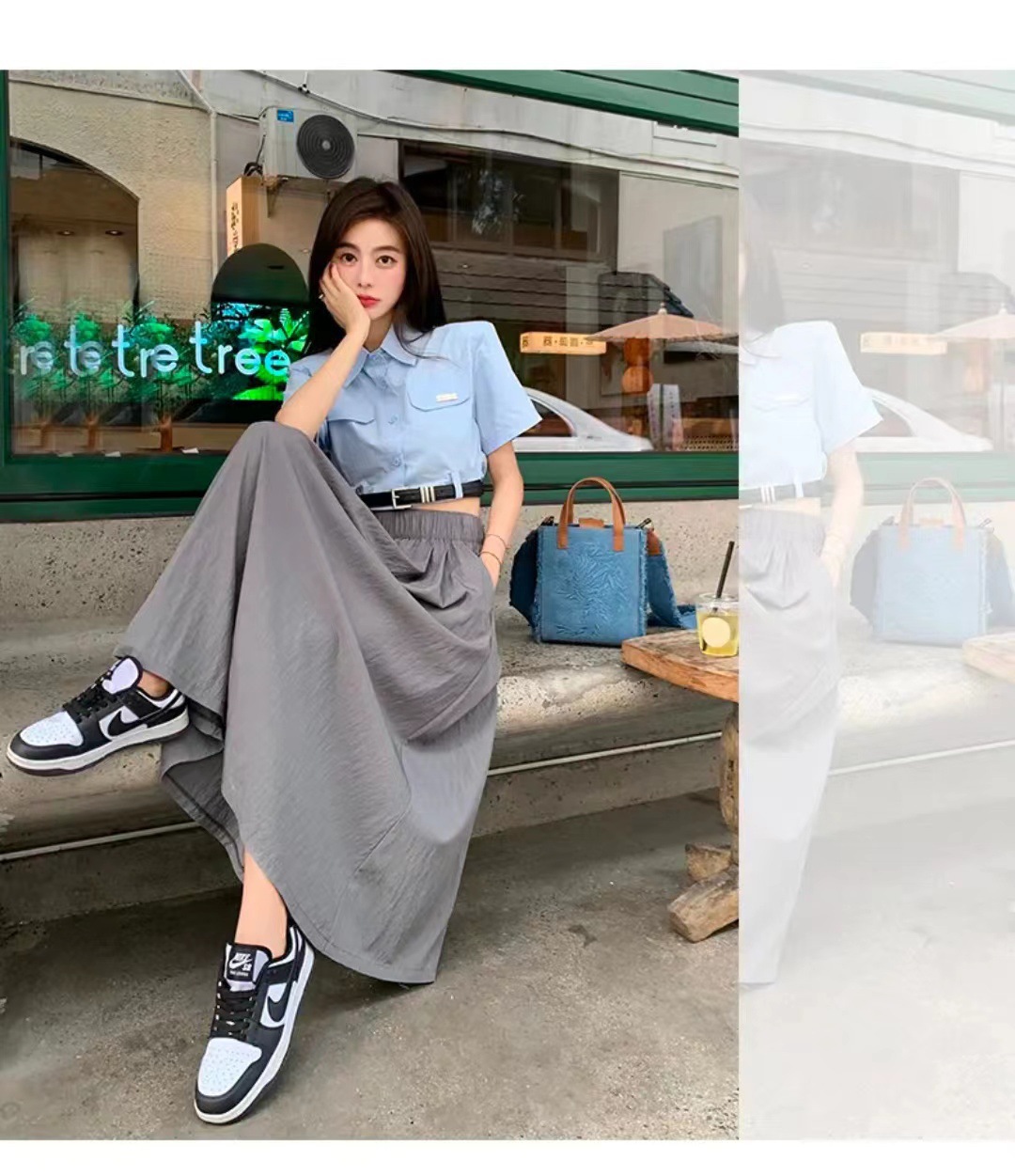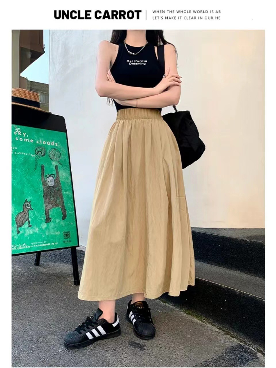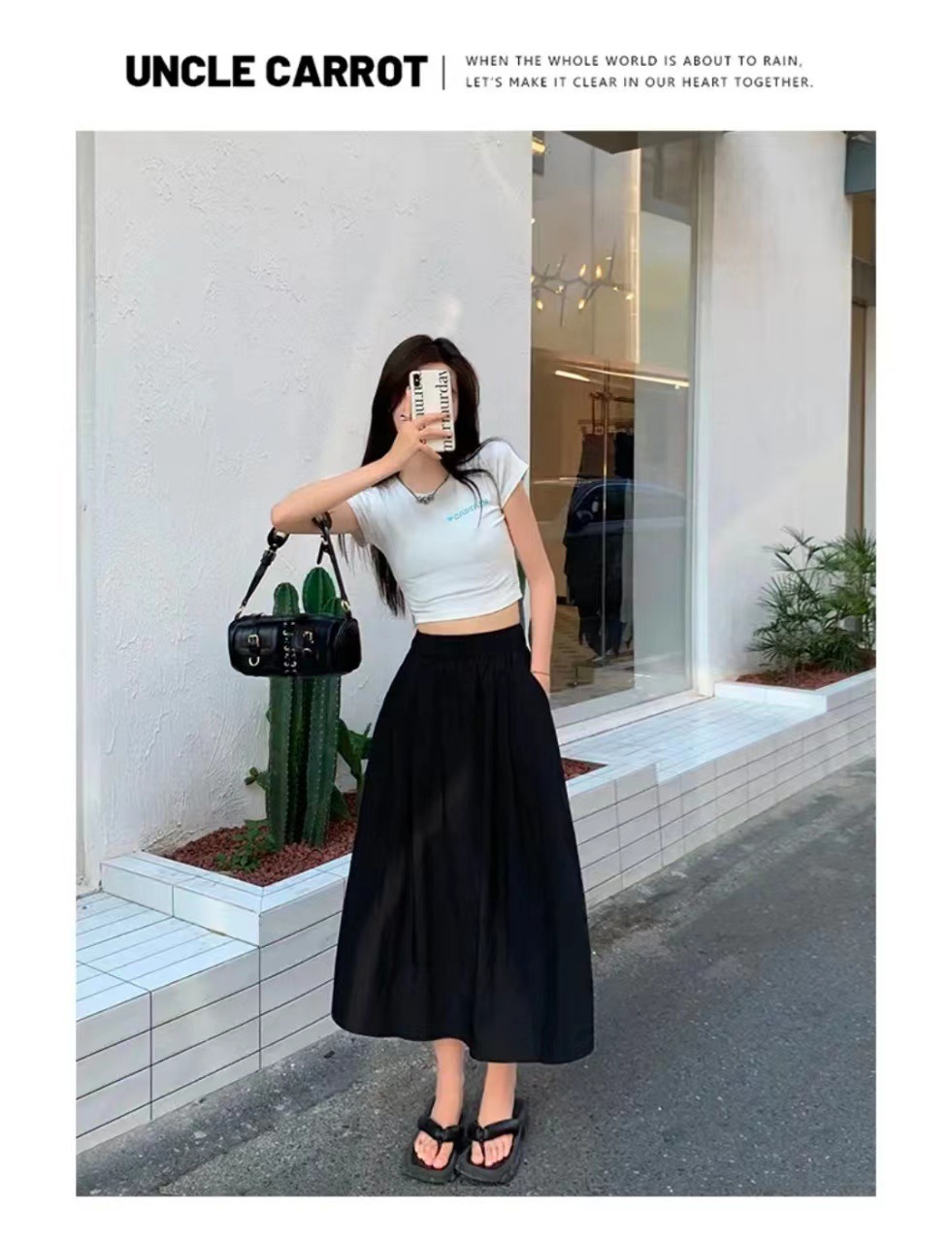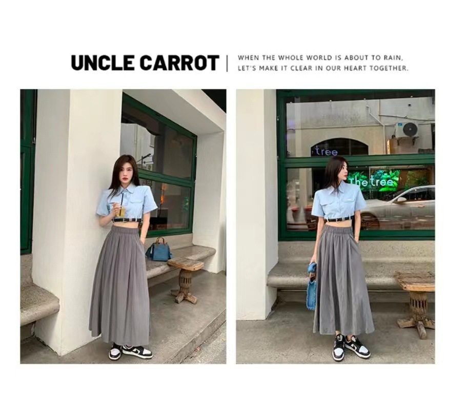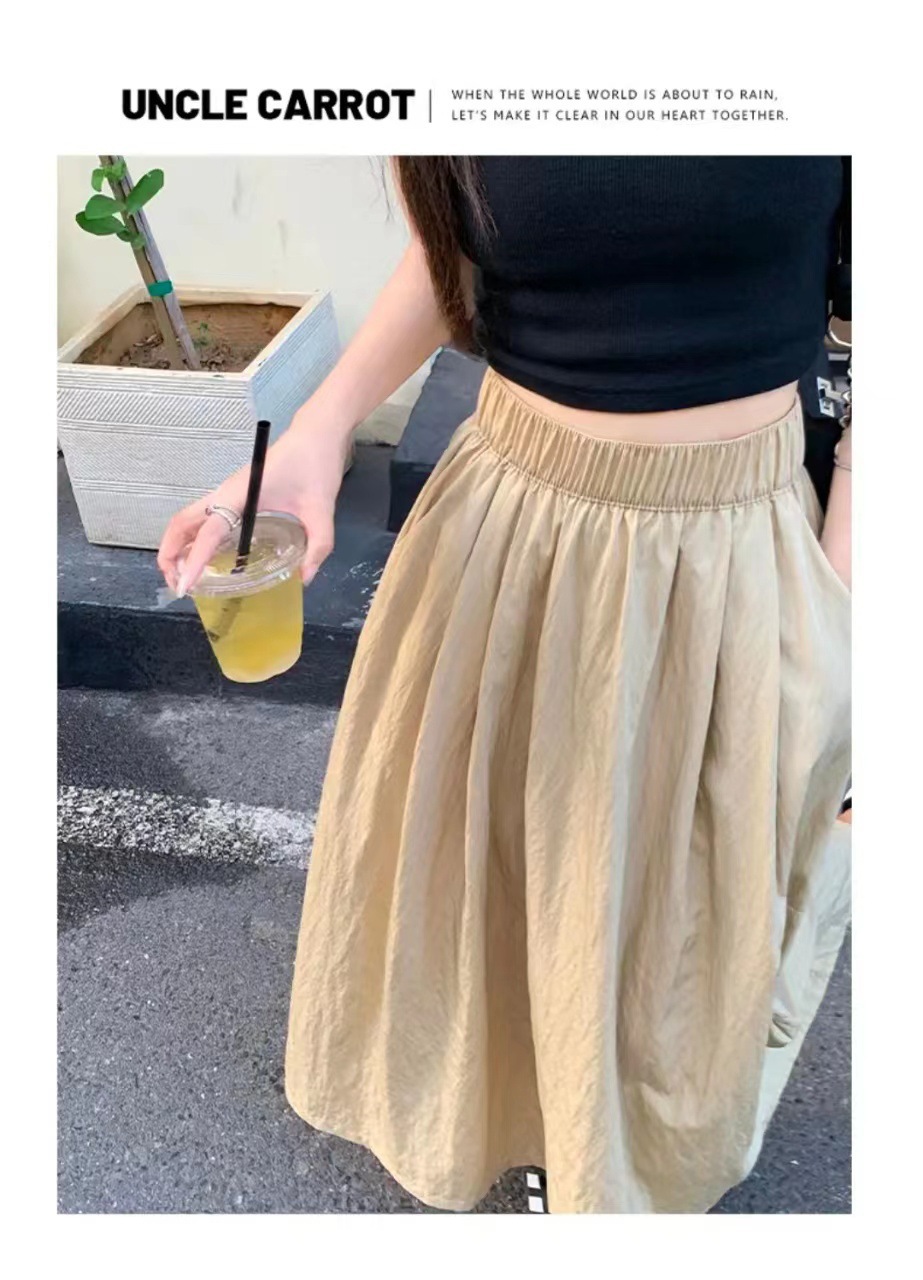 【夏日显瘦,时尚优雅】山本半身裙女中长款 夏季过膝显瘦长裙 复古A型褶皱慵懒风裙子 淑女范十足!