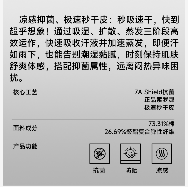 罗宾汉-7A抗菌吸湿速干凉感防晒遮热索罗娜 时尚版短袖T恤