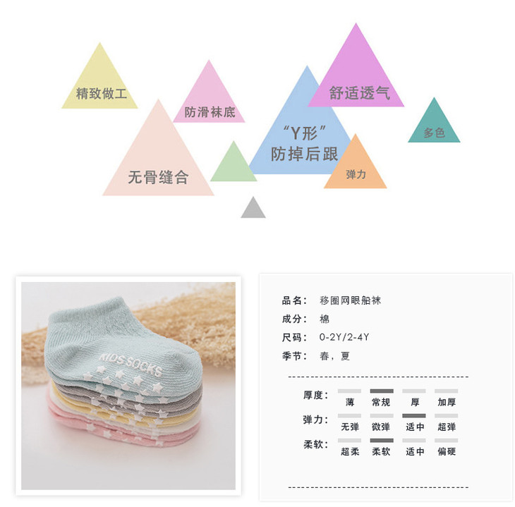 【19元6双】0-1-3岁丨春夏移圈镂空薄棉大网眼儿童船袜宝宝低帮地板袜子【913211】