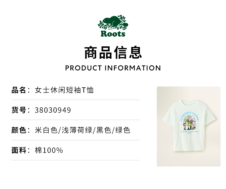 【2件9折】【ROOTS】女式休闲海狸短袖T恤