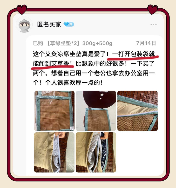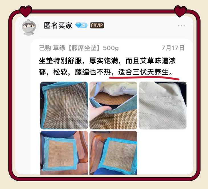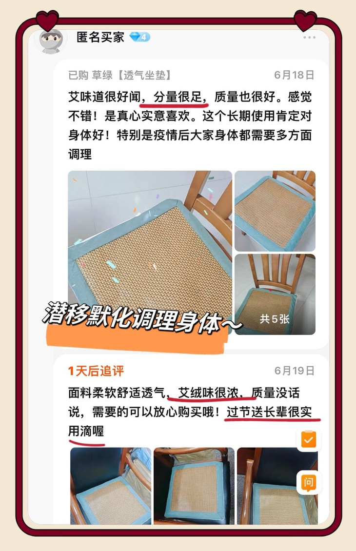 推荐🔥49.8💰到手2个 【景涵宛艾 艾绒藤席坐垫】远离夏天空调综合症,体寒、湿气、久坐人群必入❗️❗️