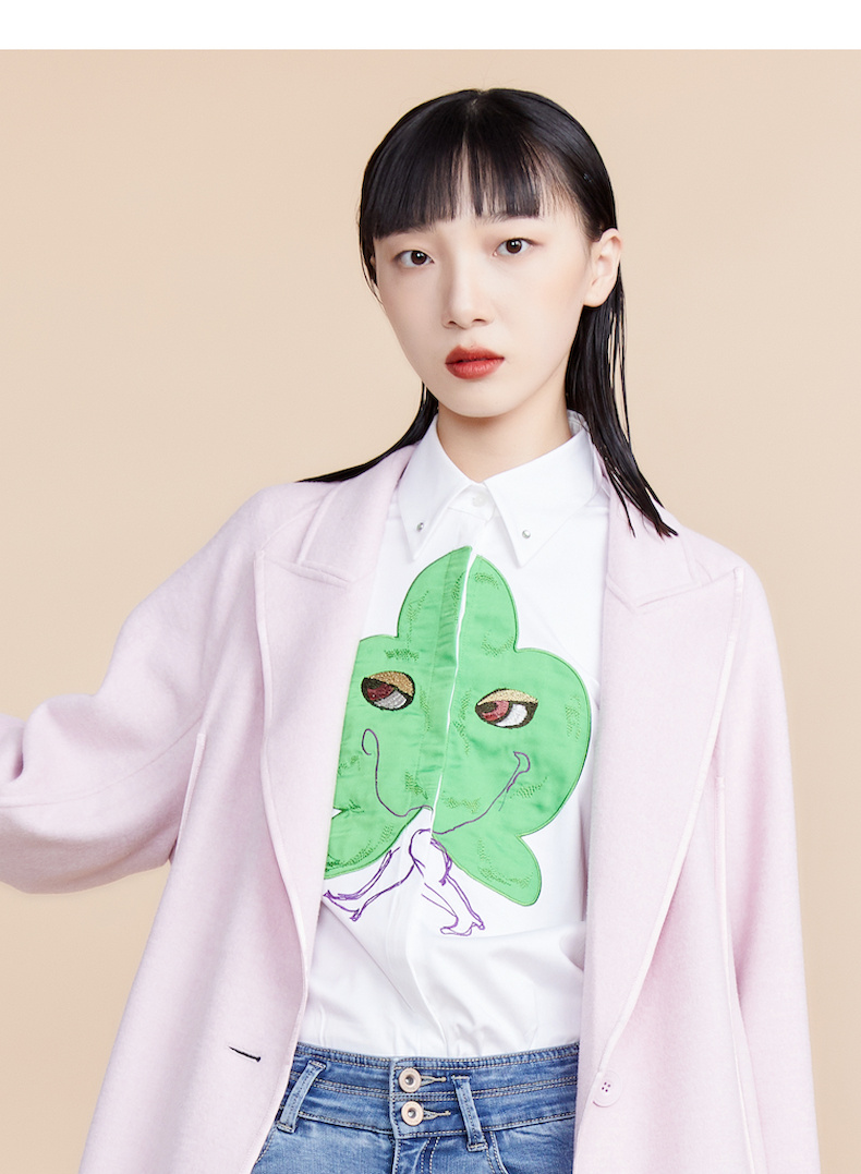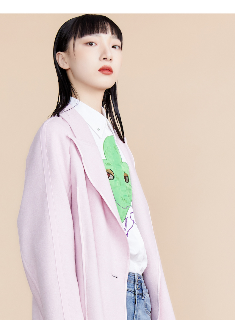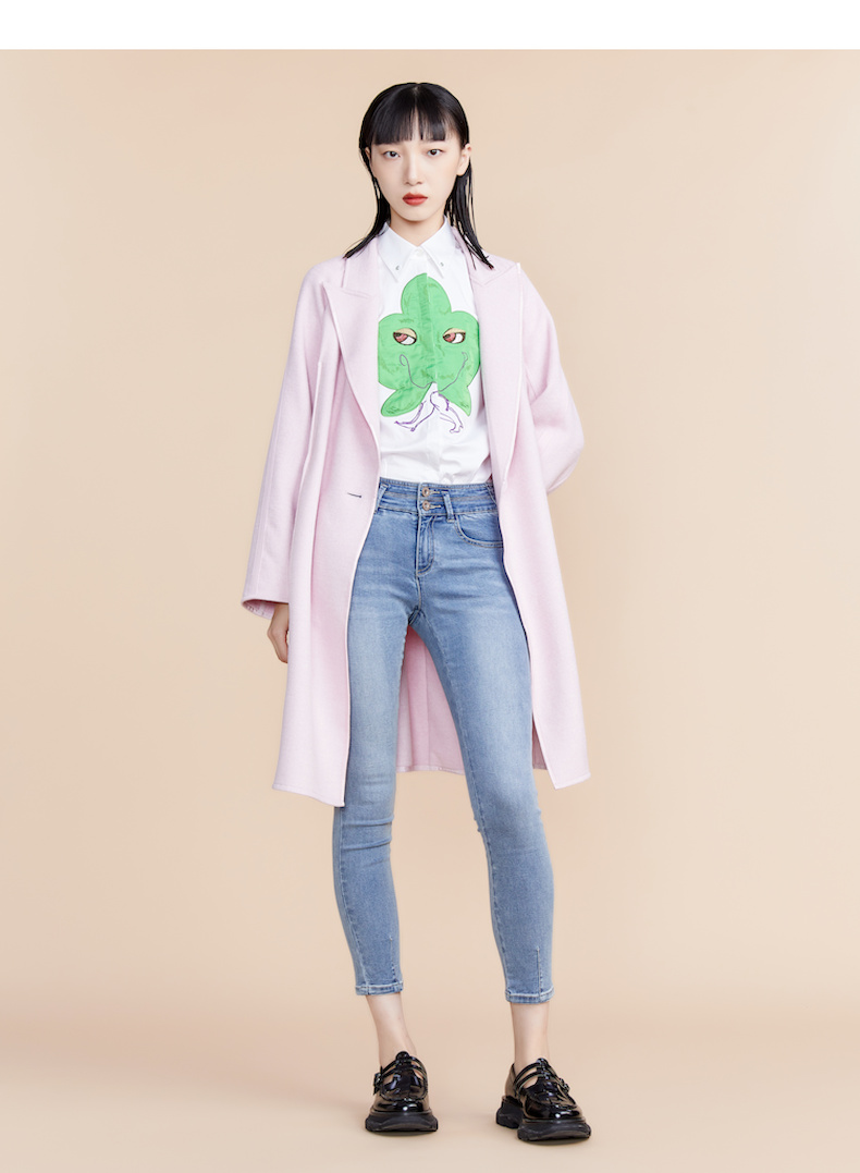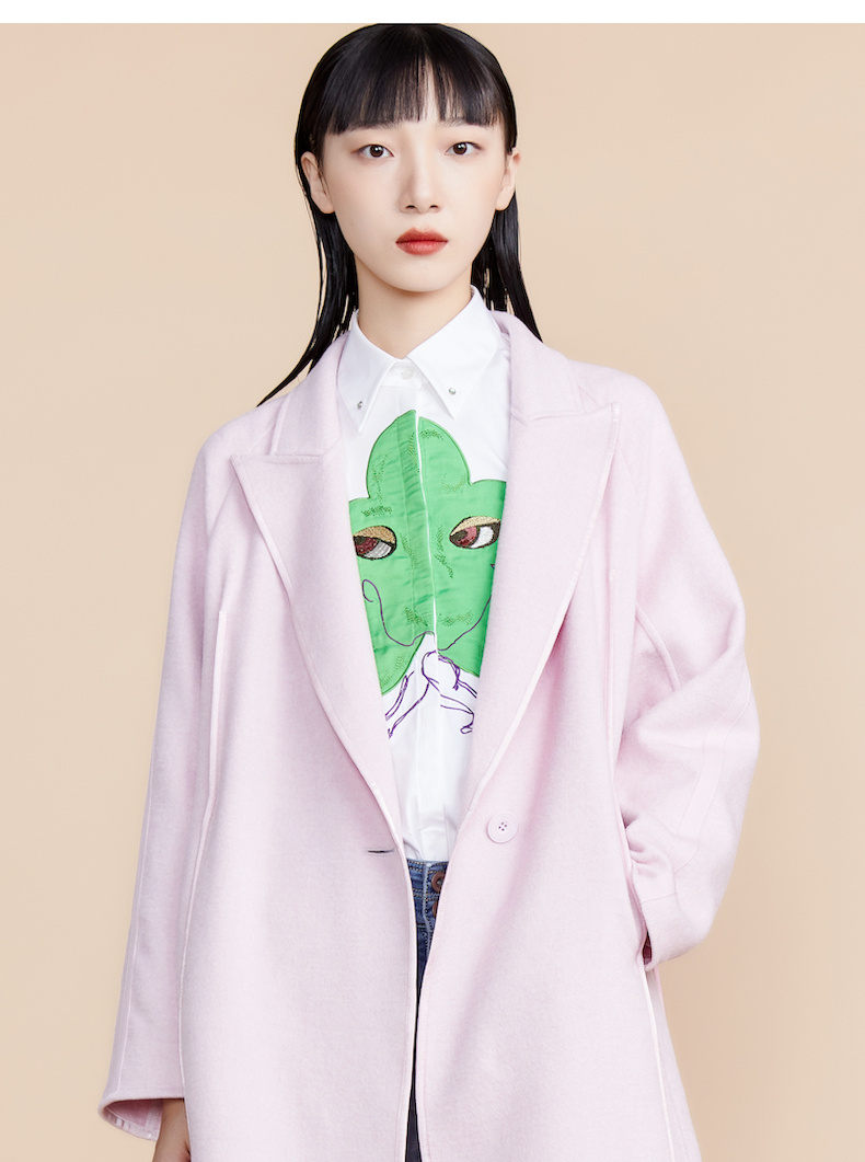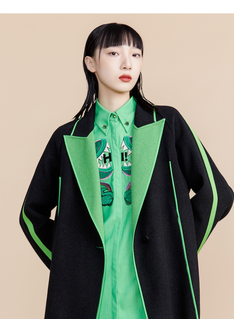 MIIDII谜底2022春新款双色双面呢中长款绵羊毛呢大衣女221MD0024