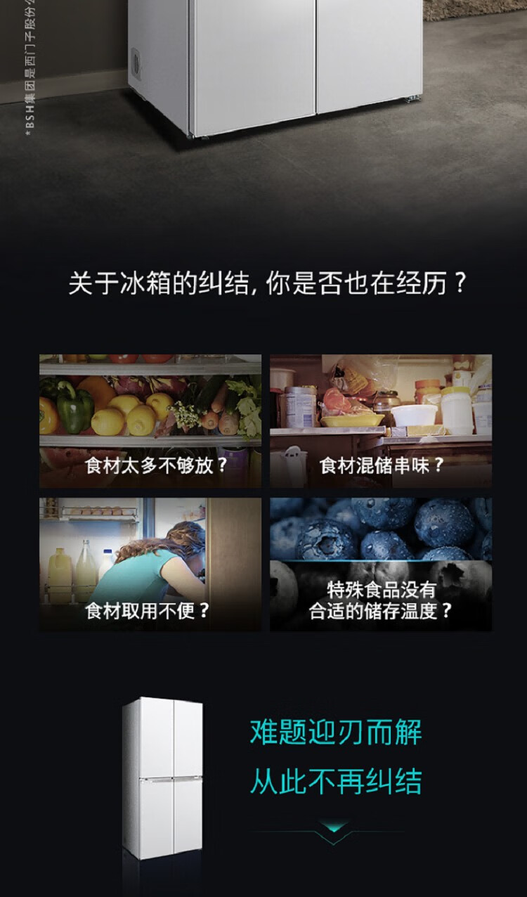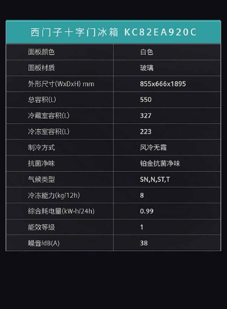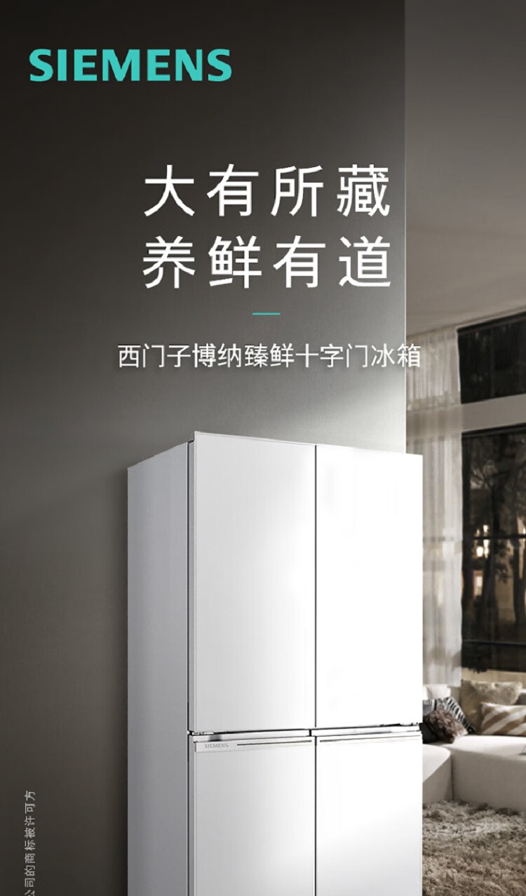 西门子(SIEMENS)550升十字门博纳臻鲜冰箱超大容量 铂金除菌净味 分区精储 精准保鲜(KC82EA920C)白色