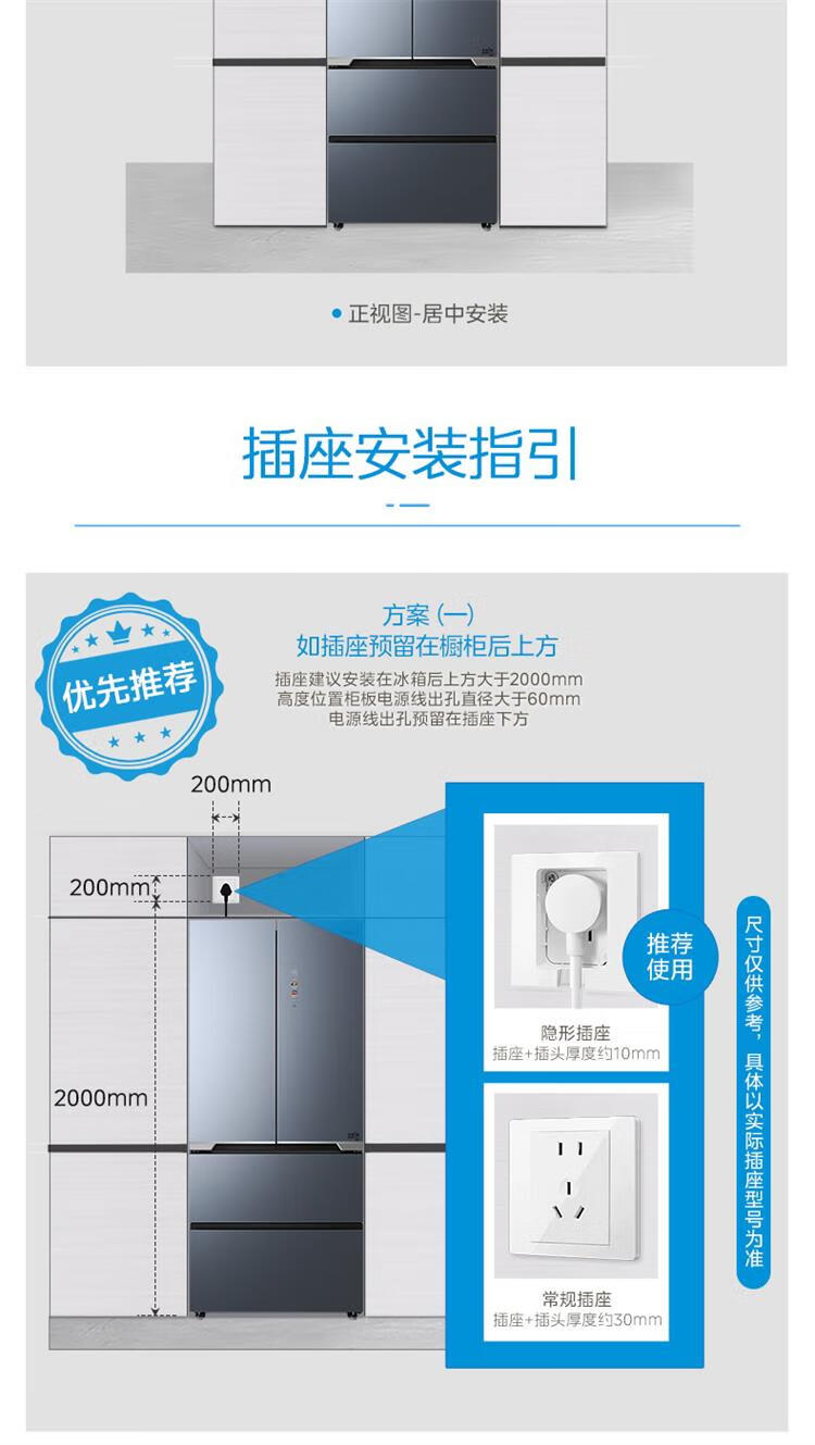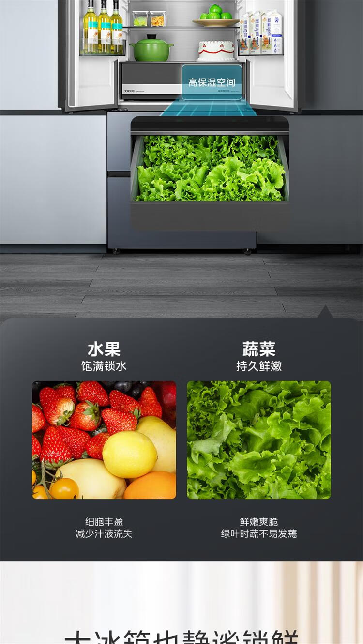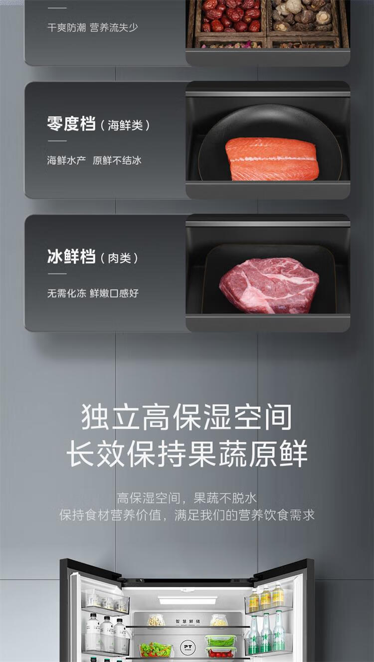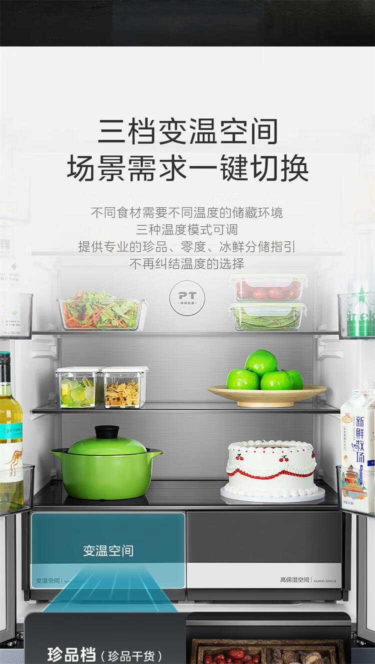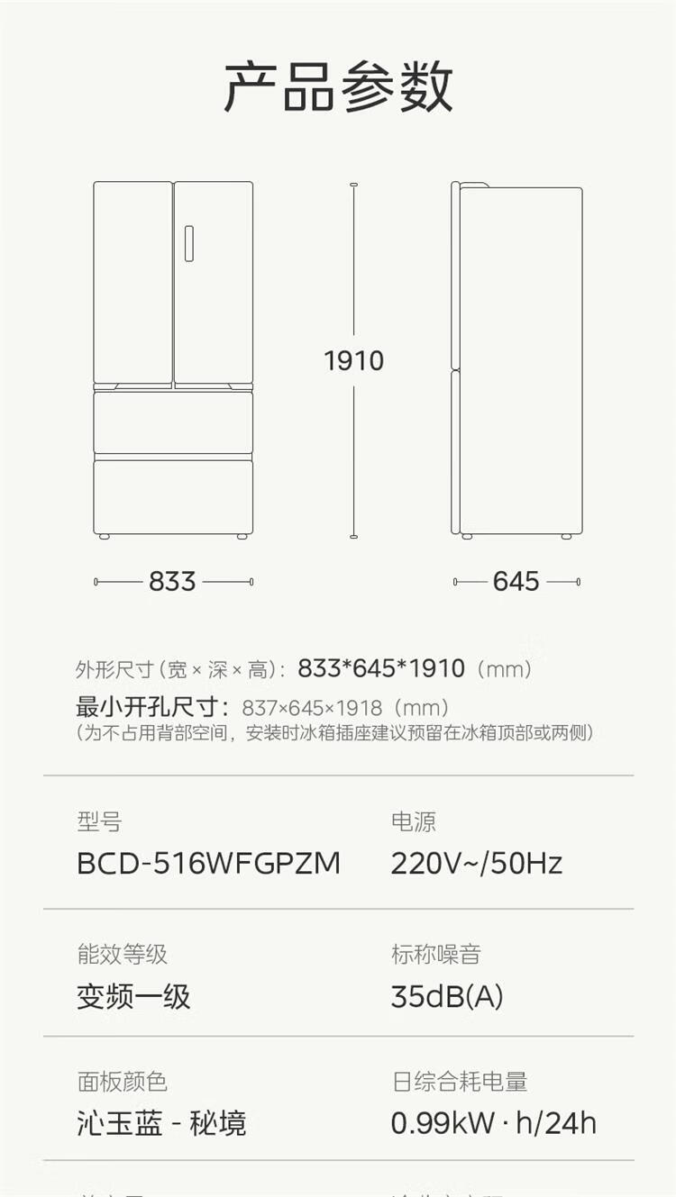 美的(Midea)516升法式四门超薄净味除菌一级能效保鲜家用电冰箱BCD-516WFGPZM沁玉蓝-秘境