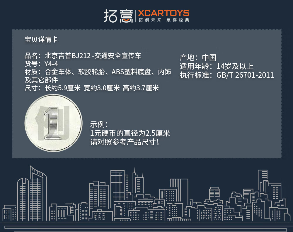 拓意合金车Y4-04北京吉普BJ212交通安全宣传车