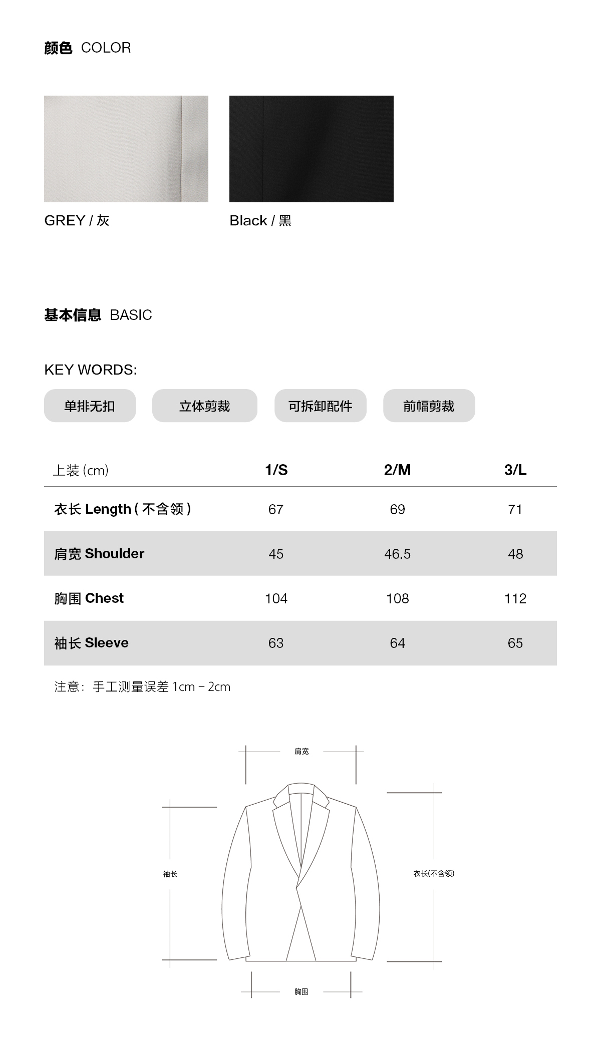 | 图案: 纯色 | 衣门襟: 一粒单排扣 |