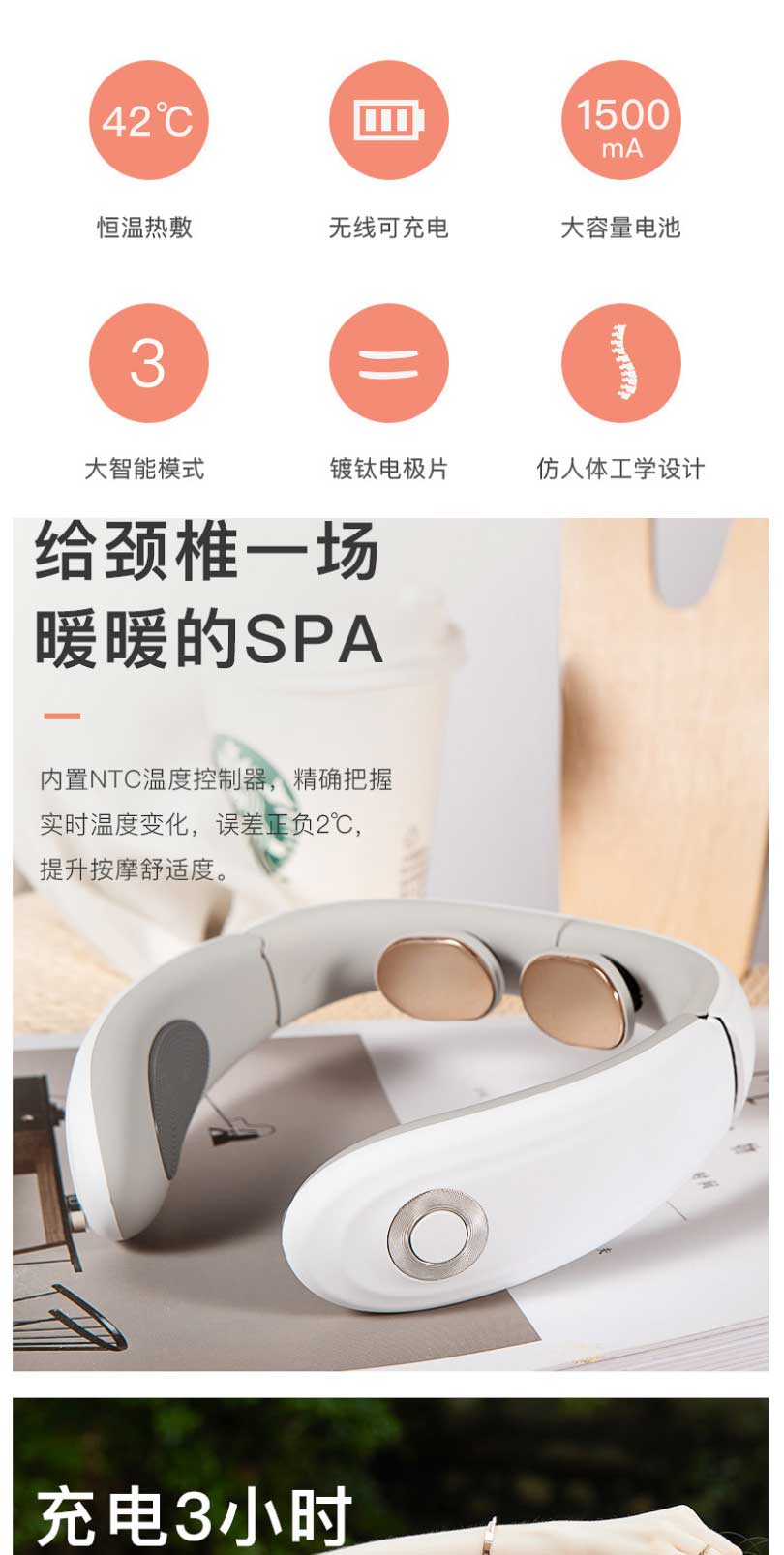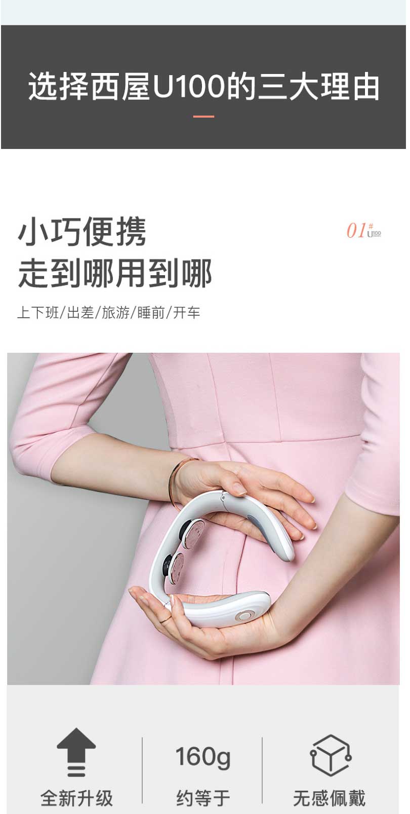 西屋WCM-U100 颈椎按摩器热敷护颈仪充电便携富贵脖子