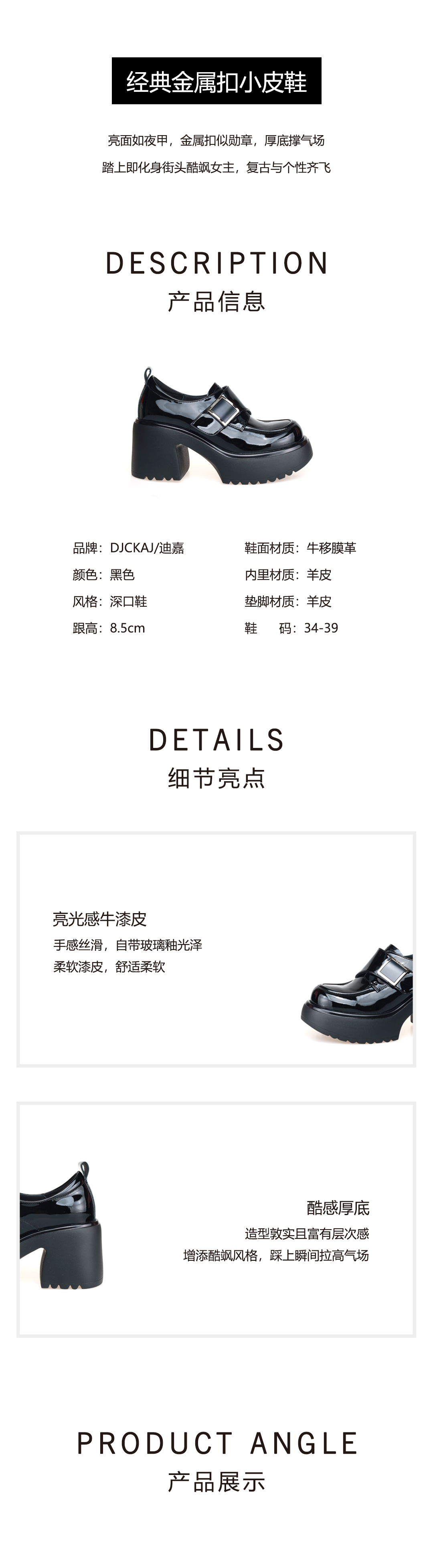 豪麟名鞋迪嘉女鞋乐福鞋牛移膜革DJYRA52WS010黑色