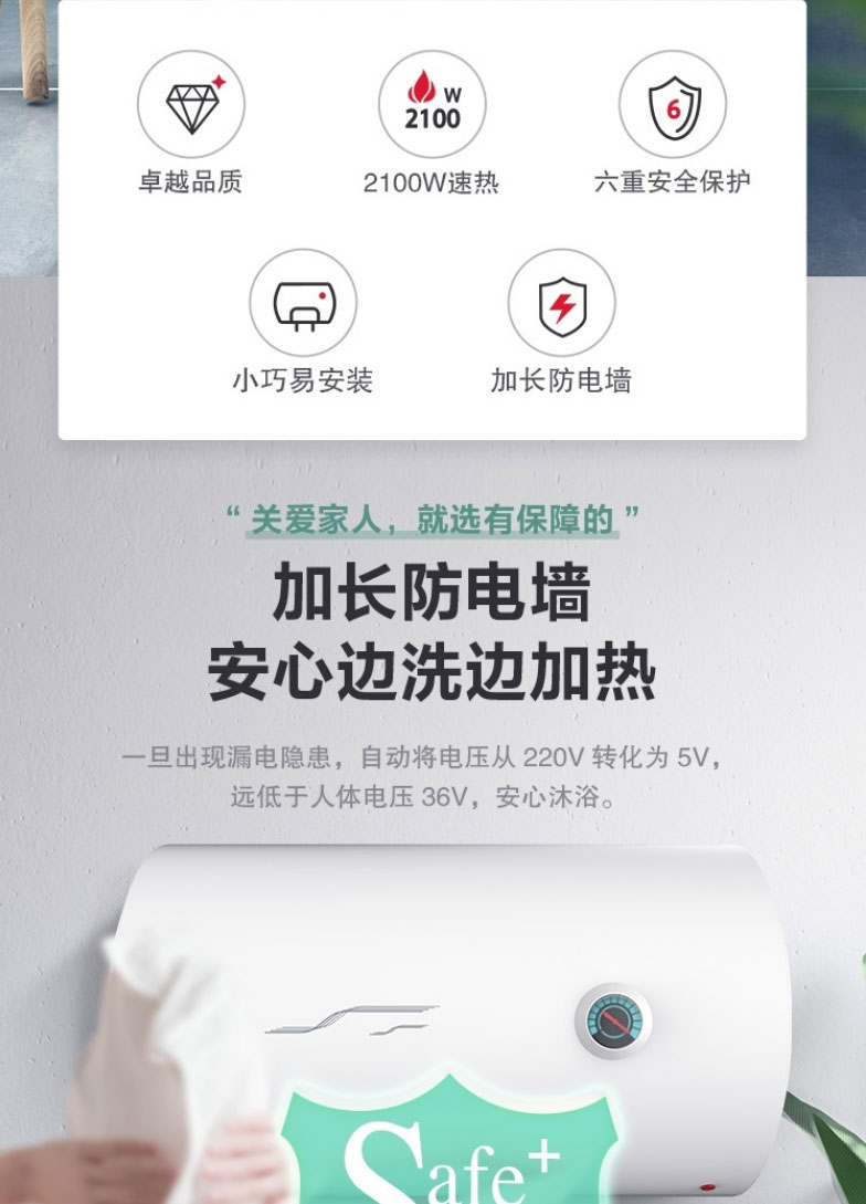 A.O.史密斯双擎速热薄型速热金圭内胆电热水器EWH-60HGC
