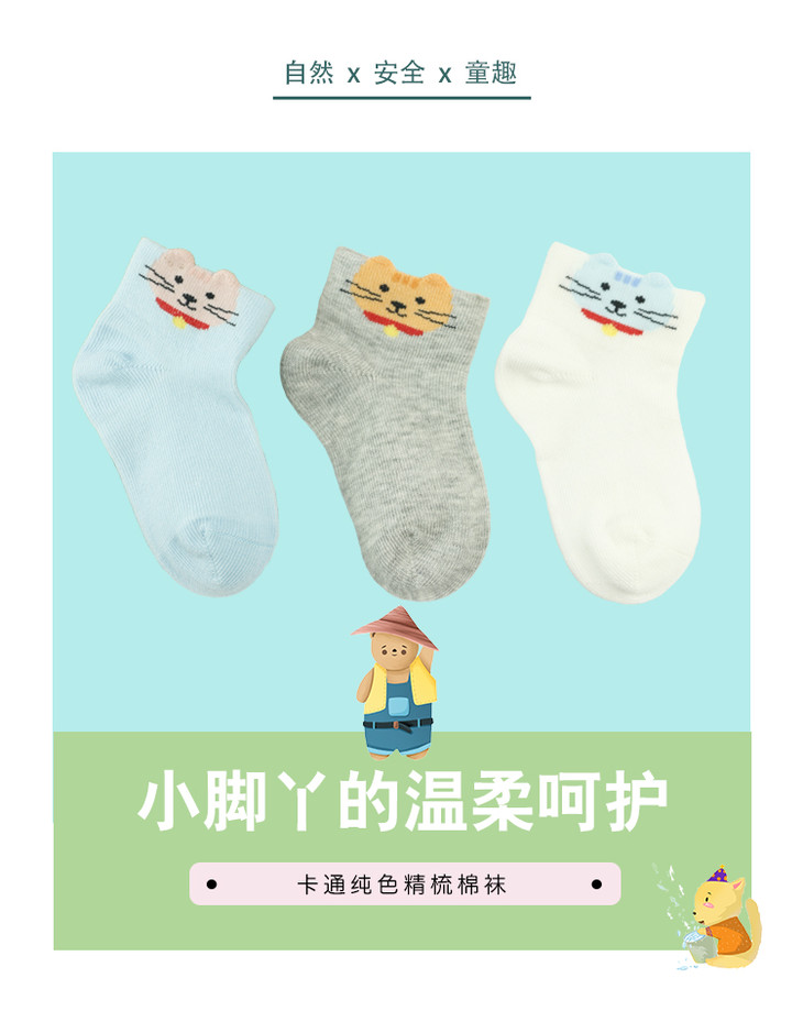 【19元6双】【1-3岁】小童立体卡通精梳棉短袜 【813201】