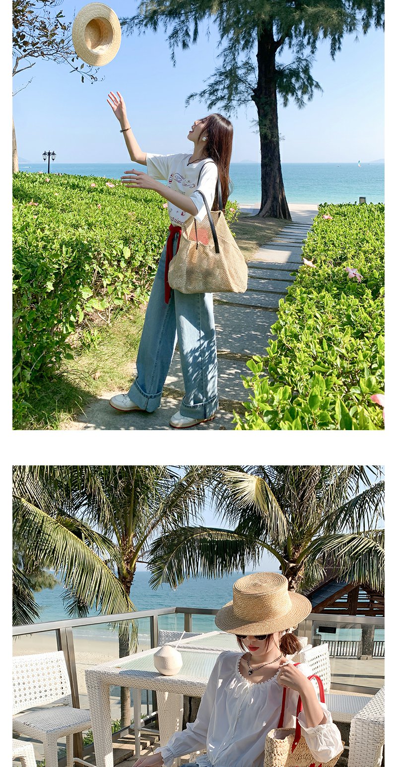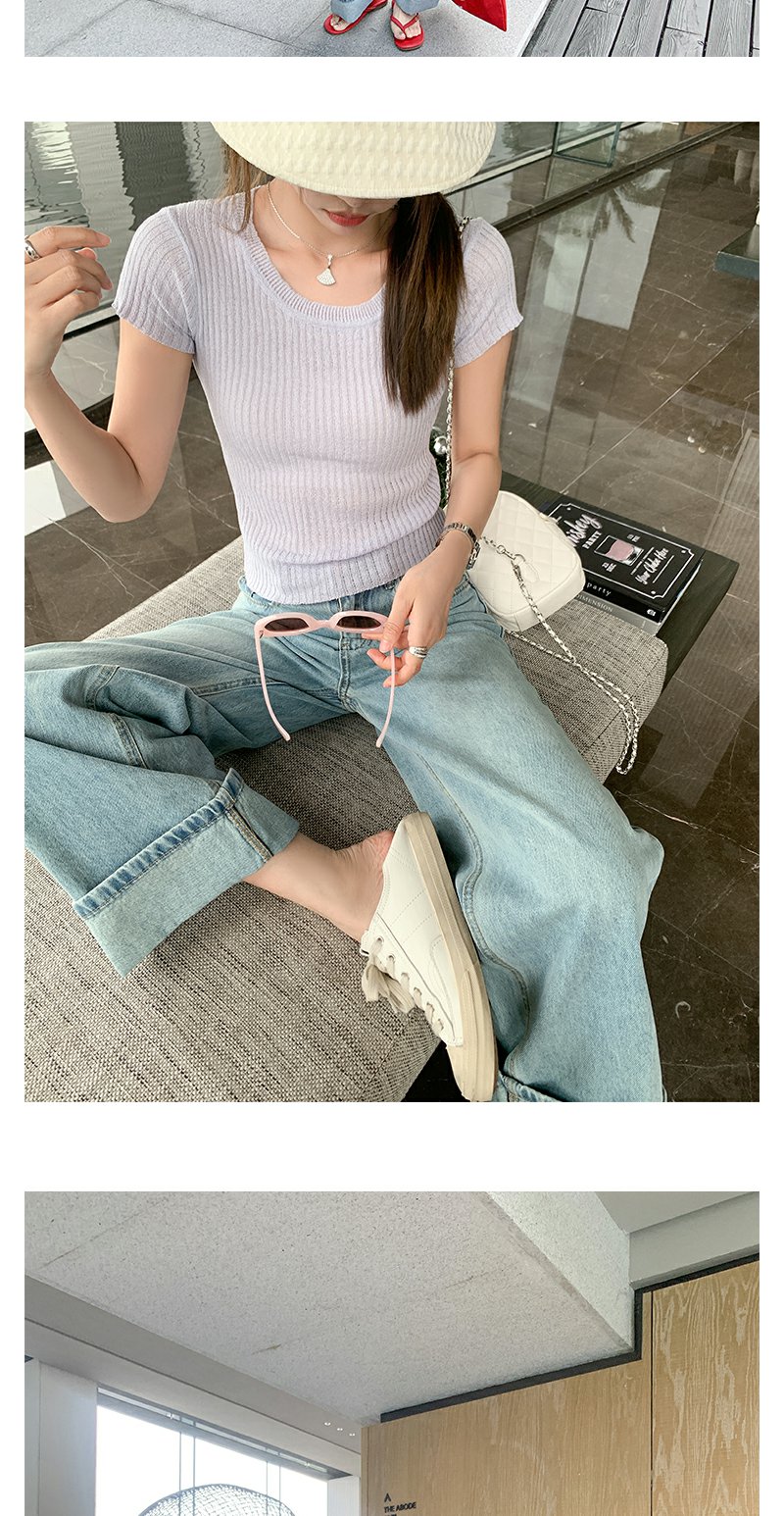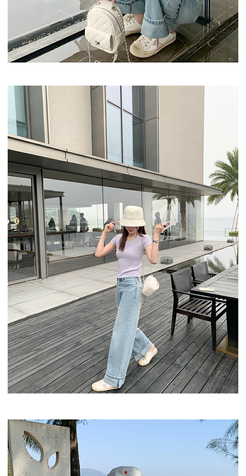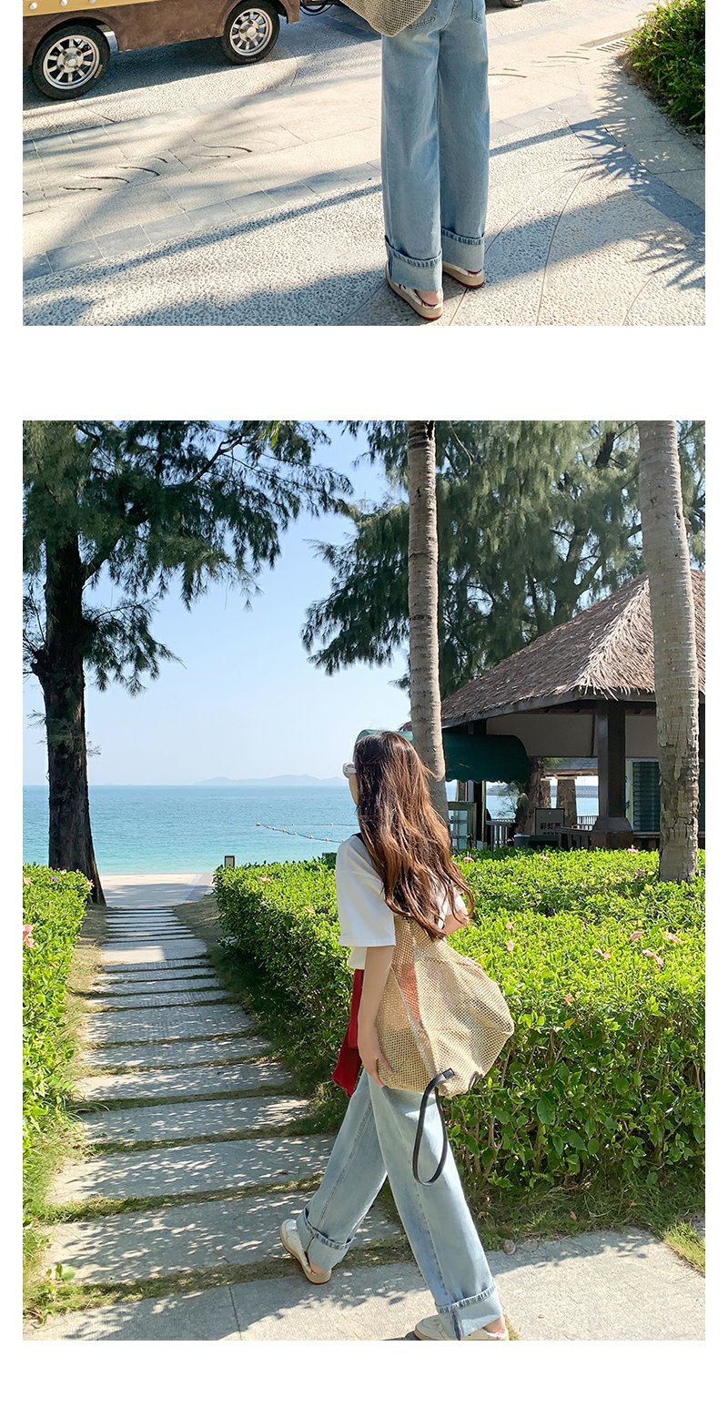 <曾小咸推荐>慵懒显瘦兰裤脚翻边高腰牛仔裤