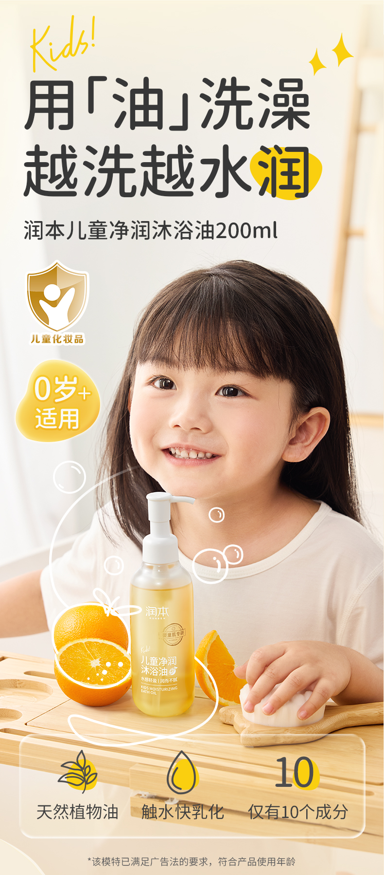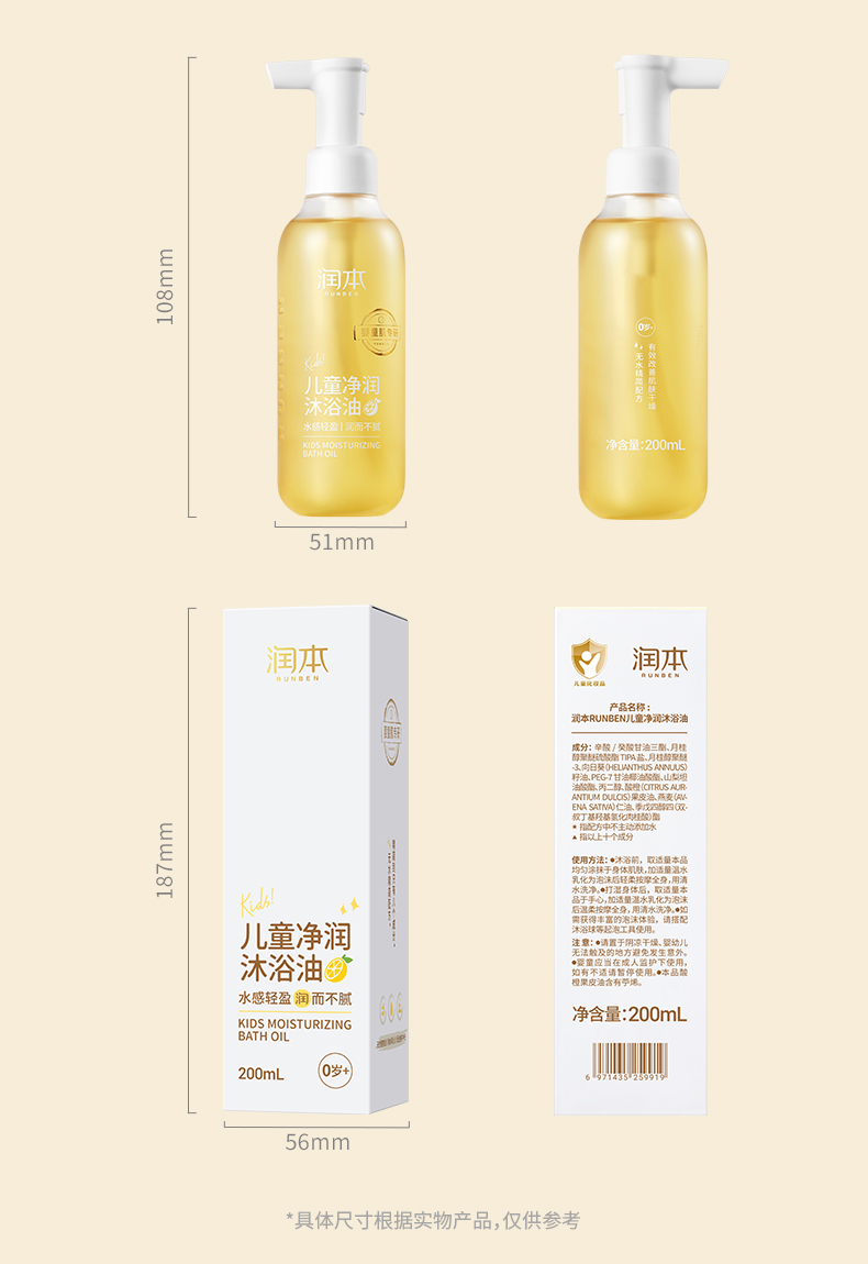 润本儿童沐浴油 婴儿宝宝洗护沐浴露秋冬季专用滋润保湿沐浴乳 200ml