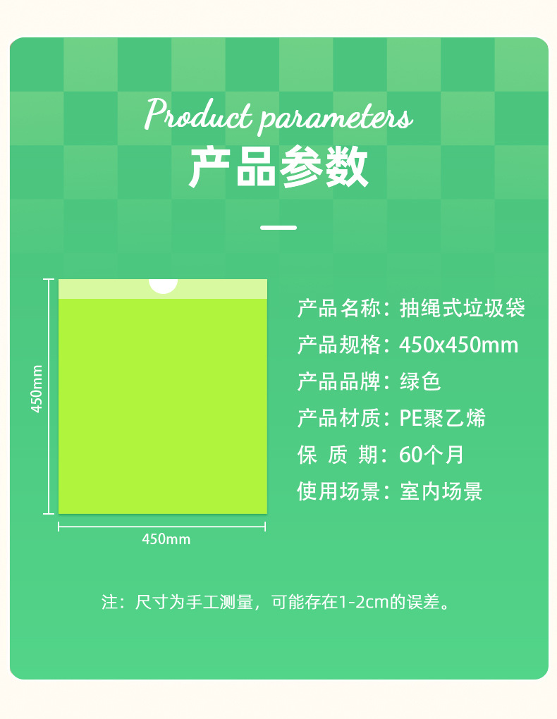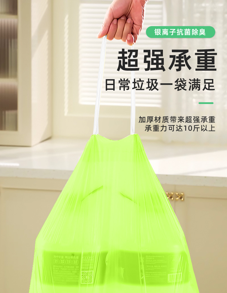 「100只大卷装!艾草驱蚊」垃圾袋居家日用手提式抽绳袋子 厨房用品加厚中大号免撕特厚清洁工具袋
