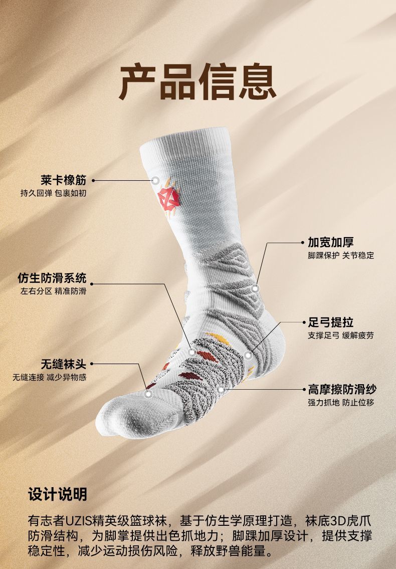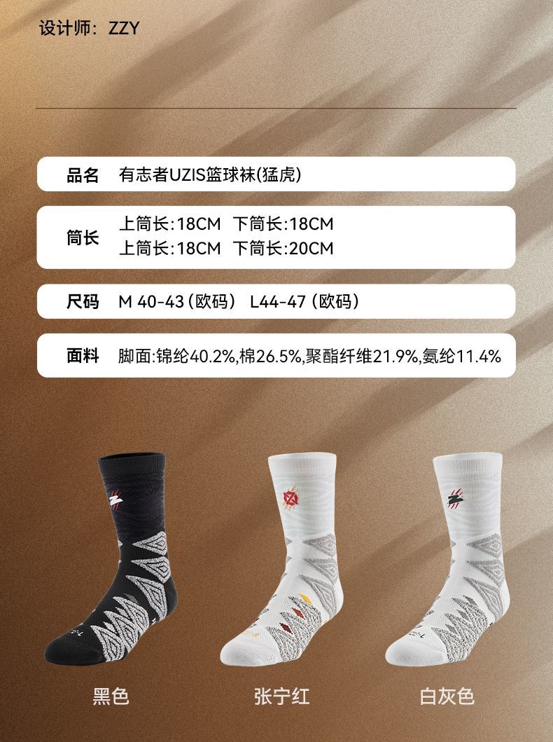 有志者UZIS 运动篮球袜实战专业美式长筒精英级3D仿生防滑袜猛虎