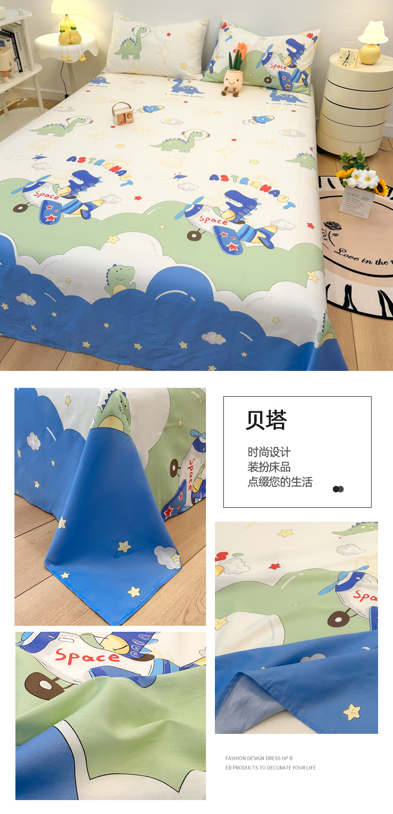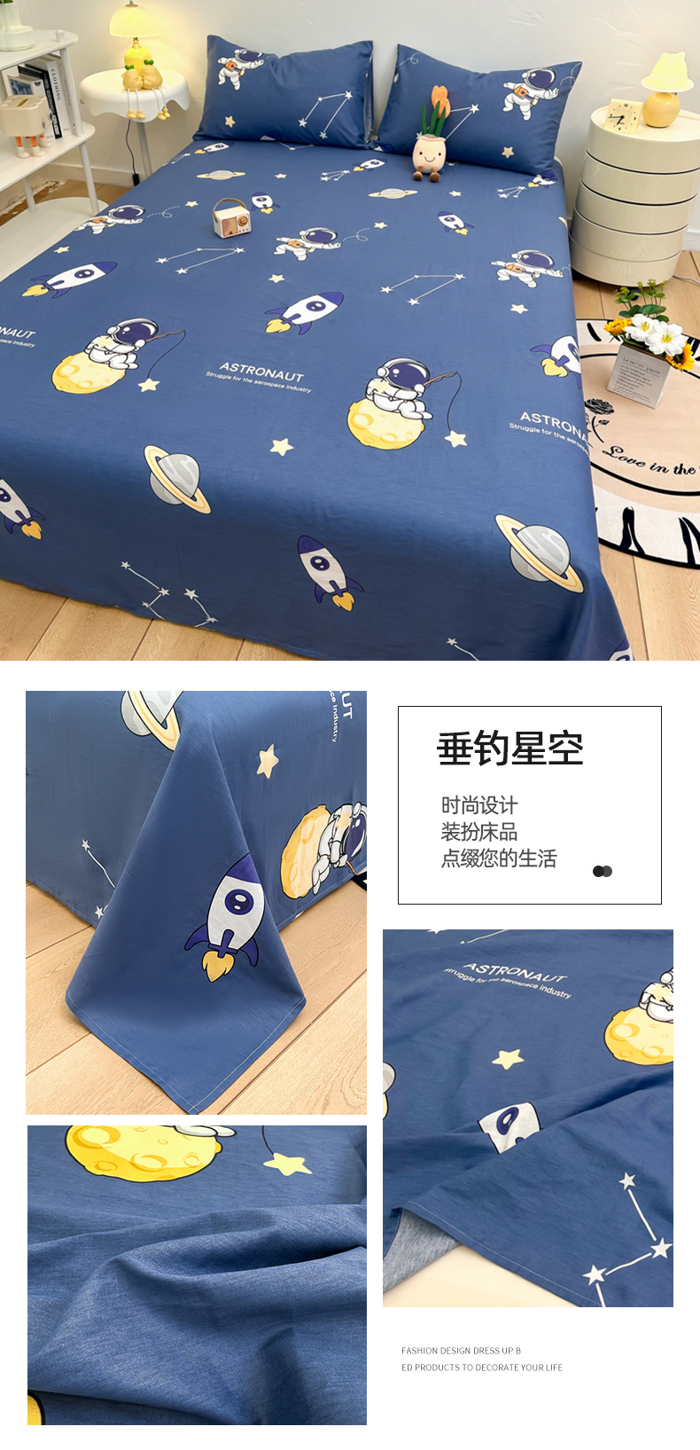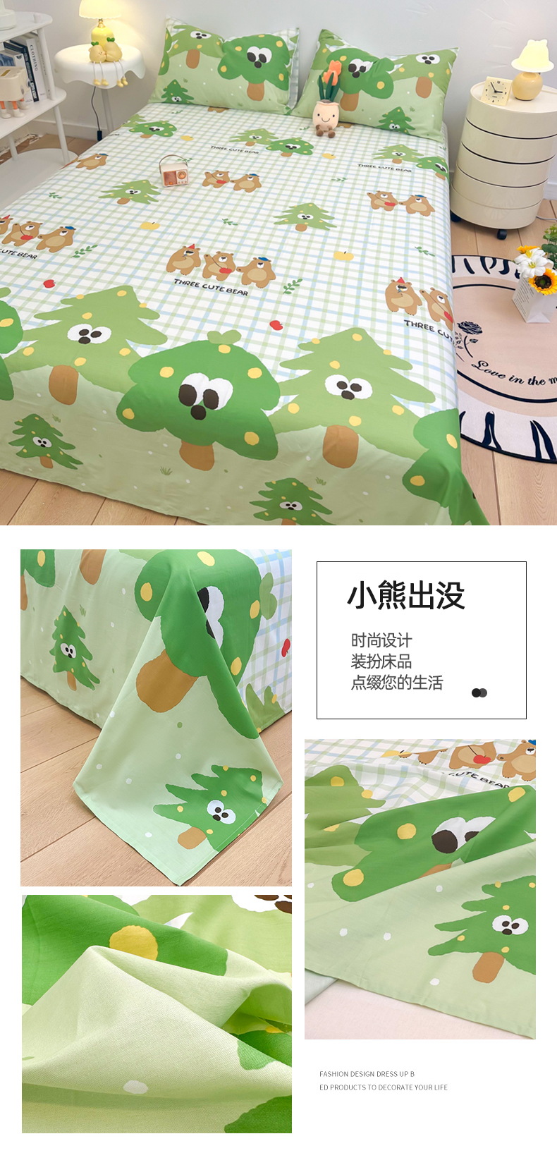 自然醒40支全棉床单单件100纯棉被单人1米2学生宿舍儿童1.5米枕套三件套JY