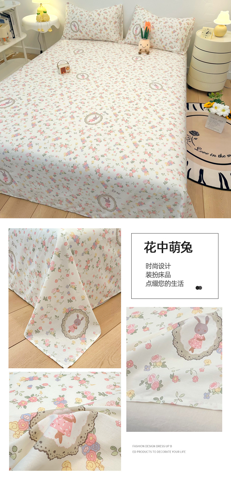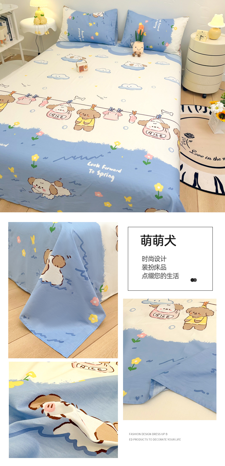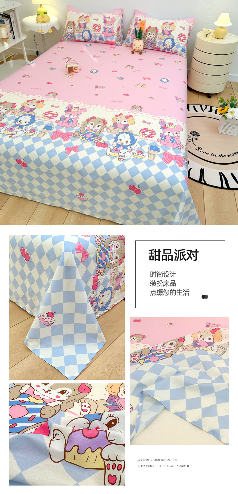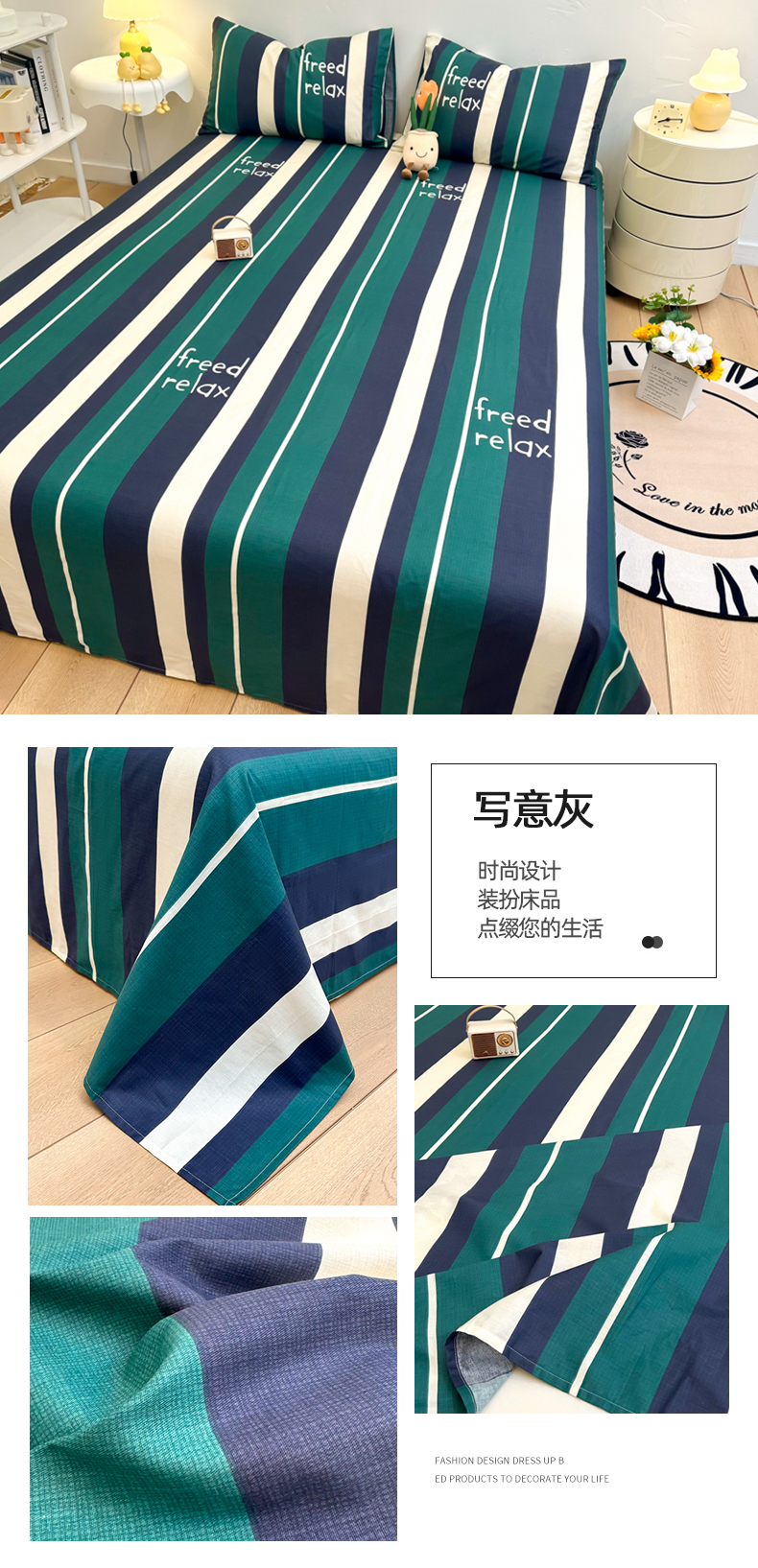 自然醒40支全棉床单单件100纯棉被单人1米2学生宿舍儿童1.5米枕套三件套JY