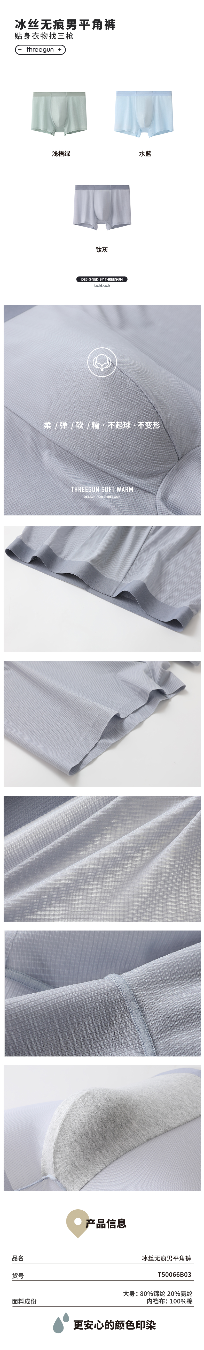 Threegun三枪 冰丝无痕男平角裤-T50066B03