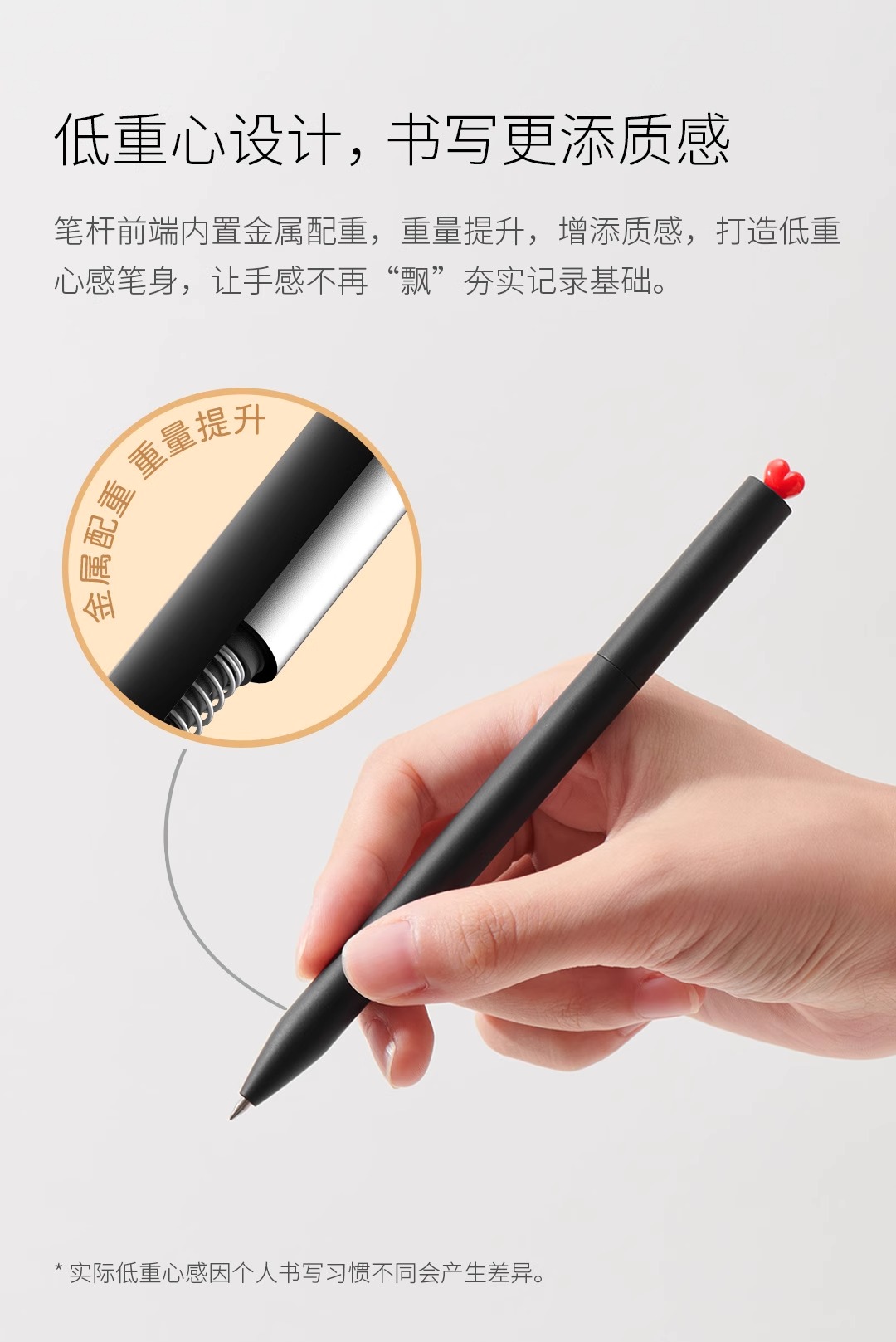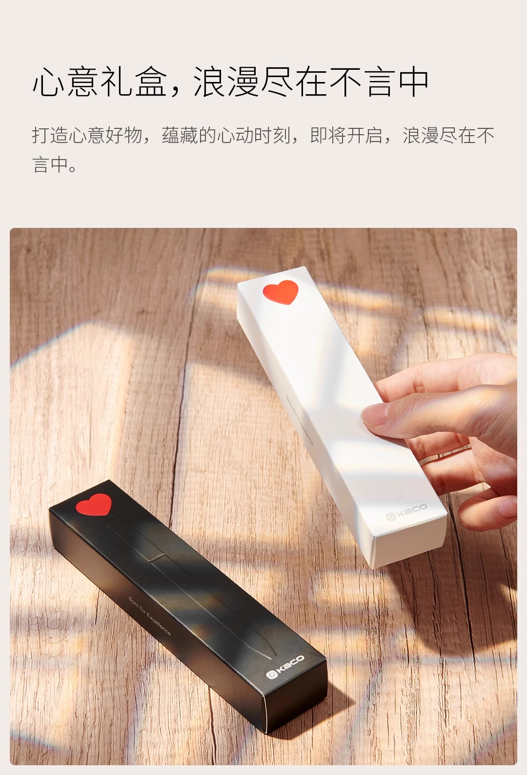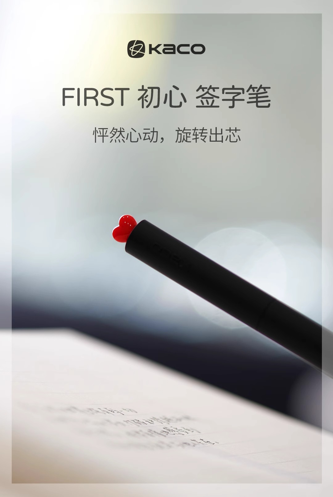 KACO初心中性笔0.5黑色旋转出芯 双珠速干爱心签字笔创意少女心长度学黑杆白杆