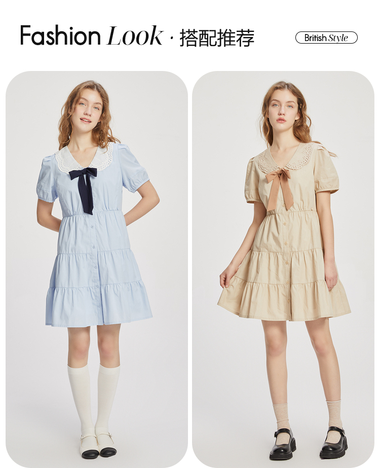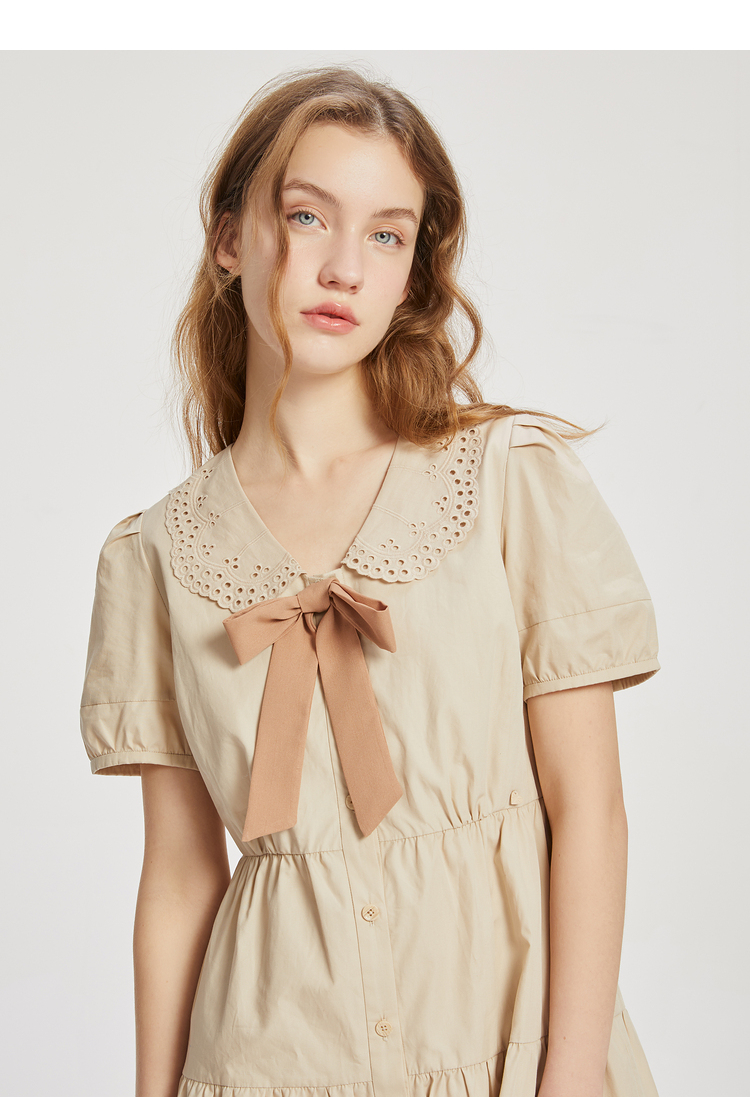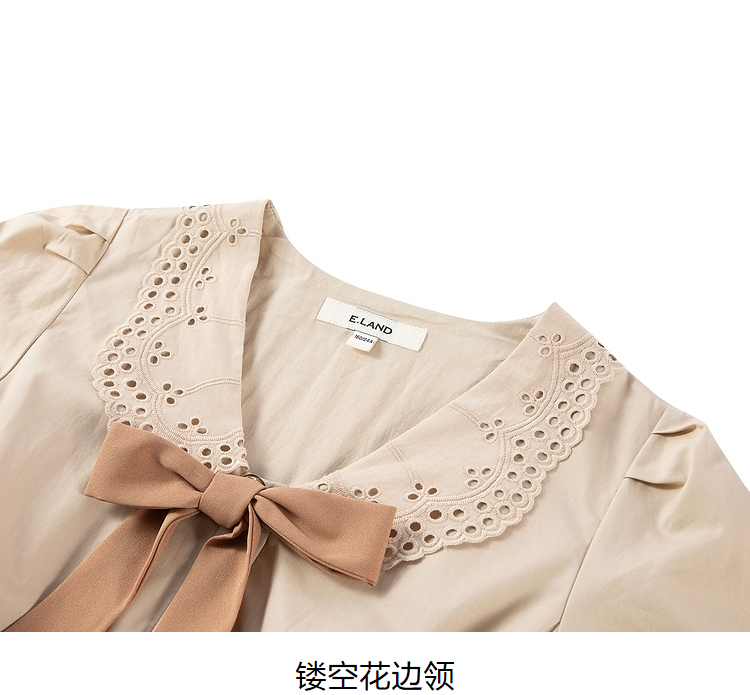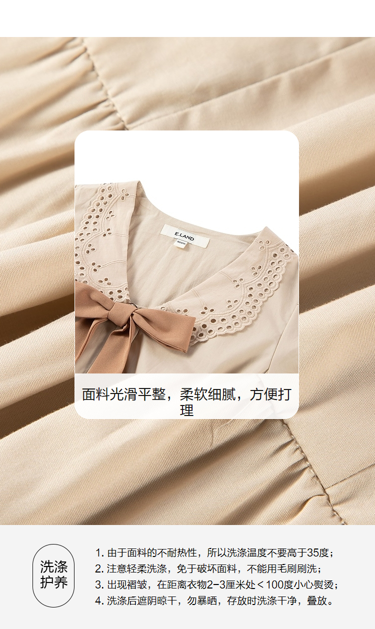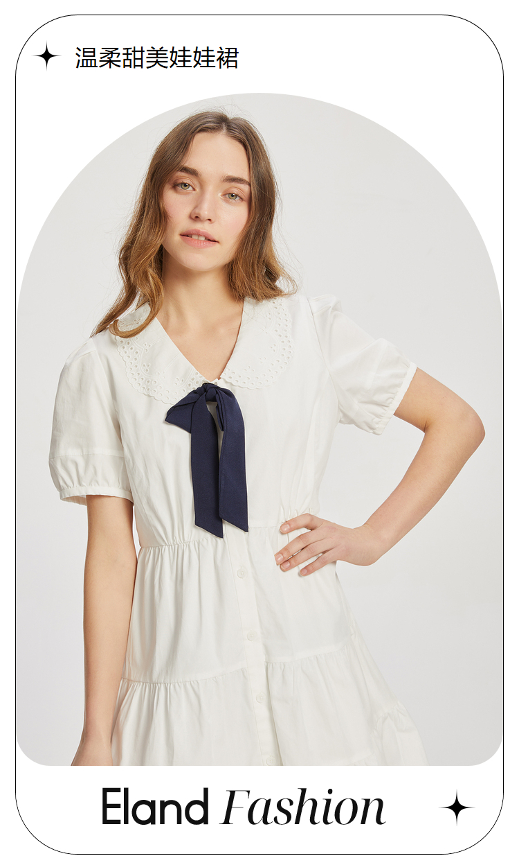 ELAND衣恋复古温柔花边娃娃领少女感连衣裙女EEOWC24H3C