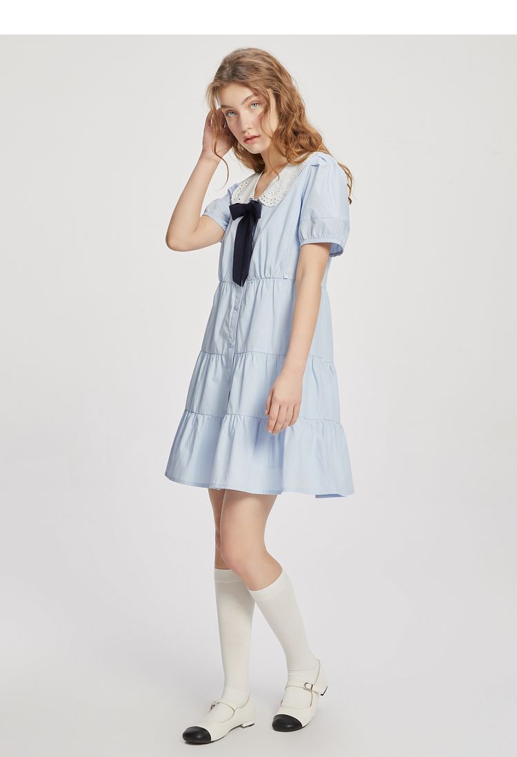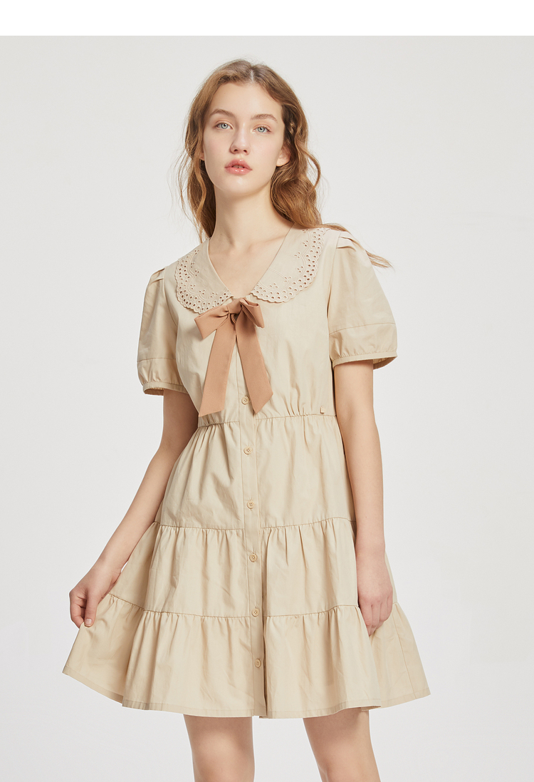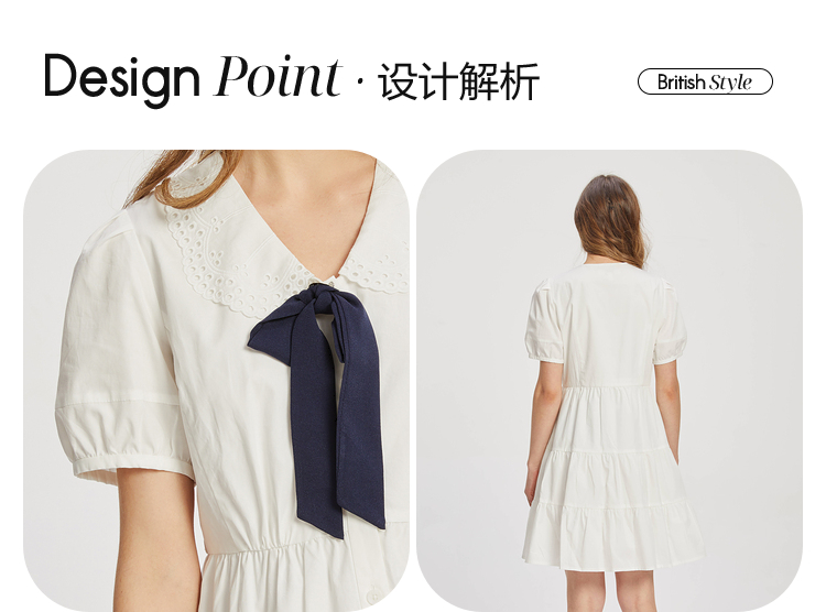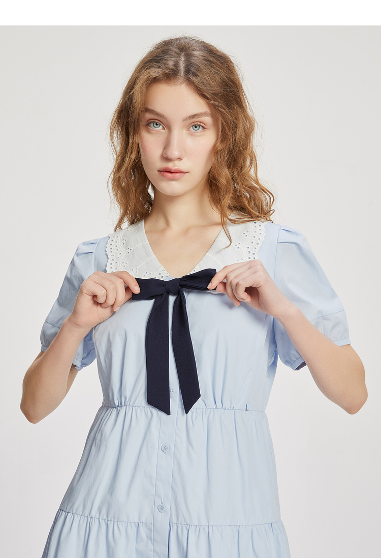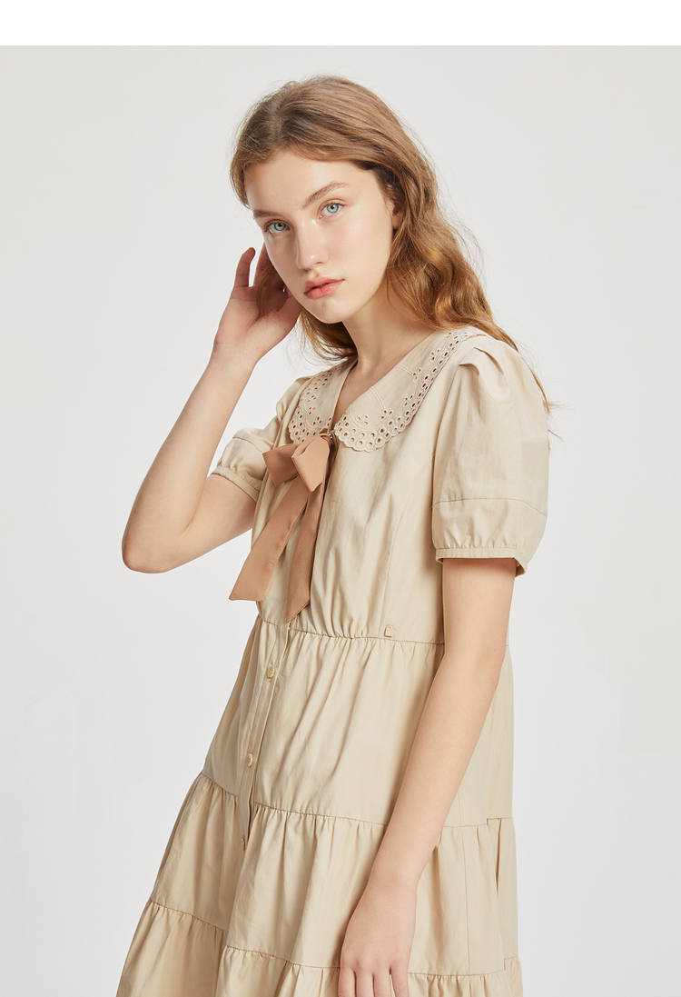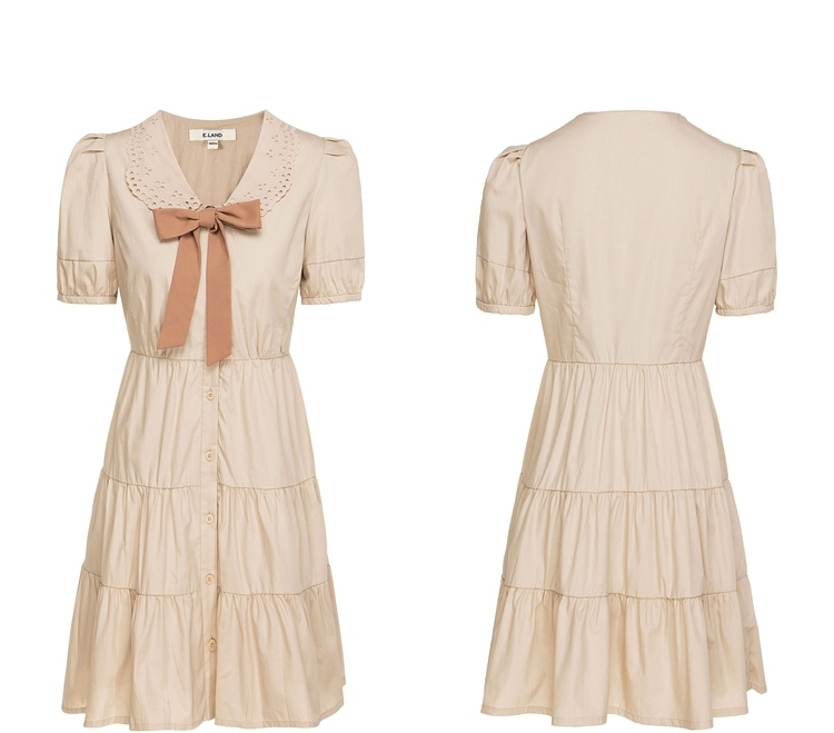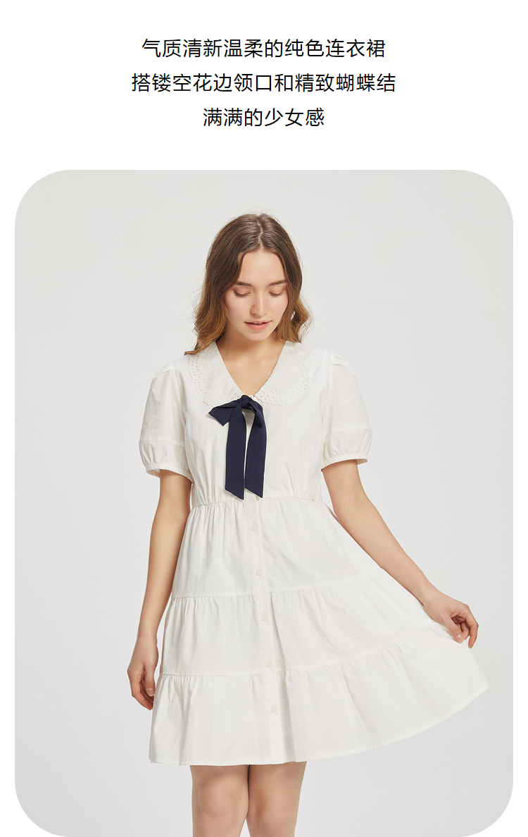 ELAND衣恋复古温柔花边娃娃领少女感连衣裙女EEOWC24H3C