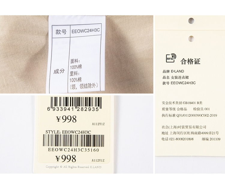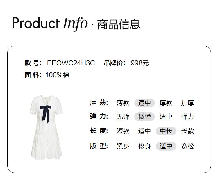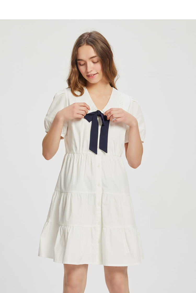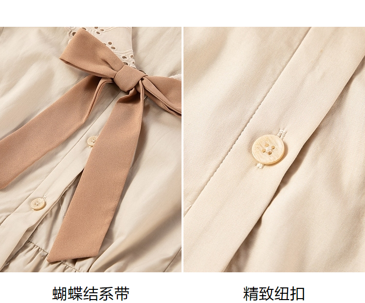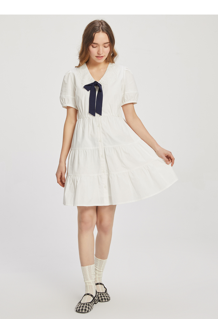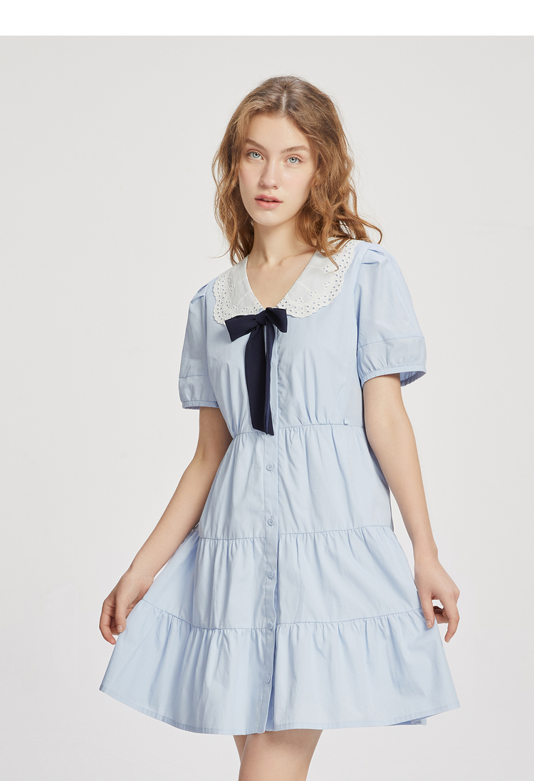ELAND衣恋复古温柔花边娃娃领少女感连衣裙女EEOWC24H3C