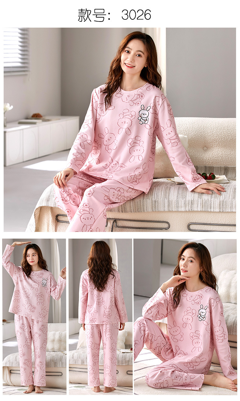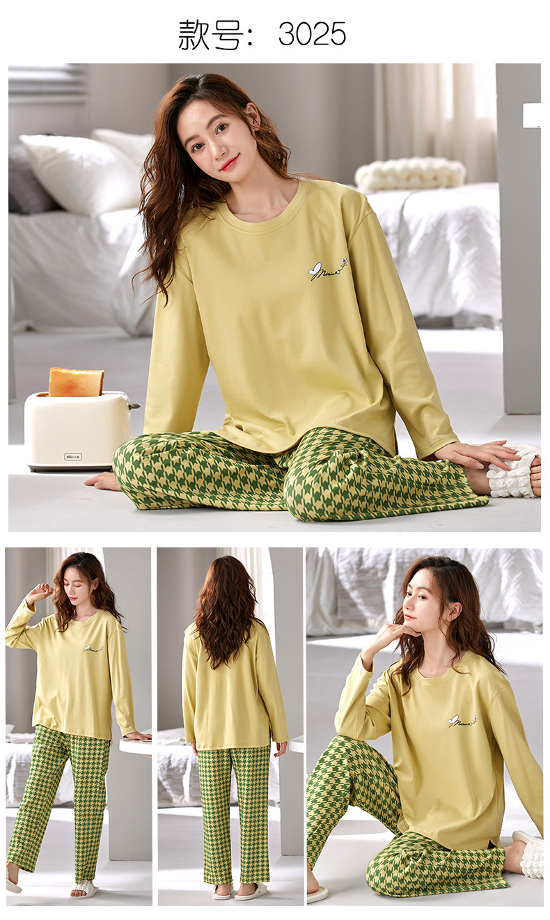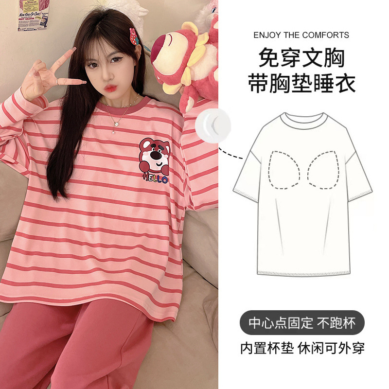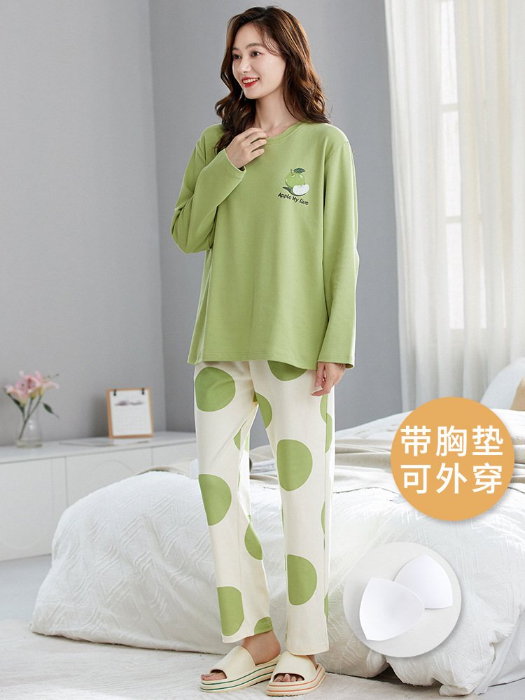家居服新款长袖睡衣女士春秋款带胸垫防凸点家居服女宽松大码2025年秋季新款
