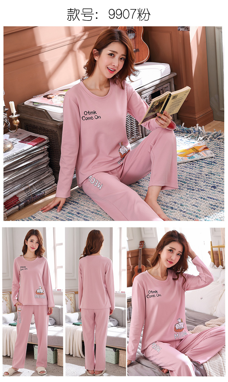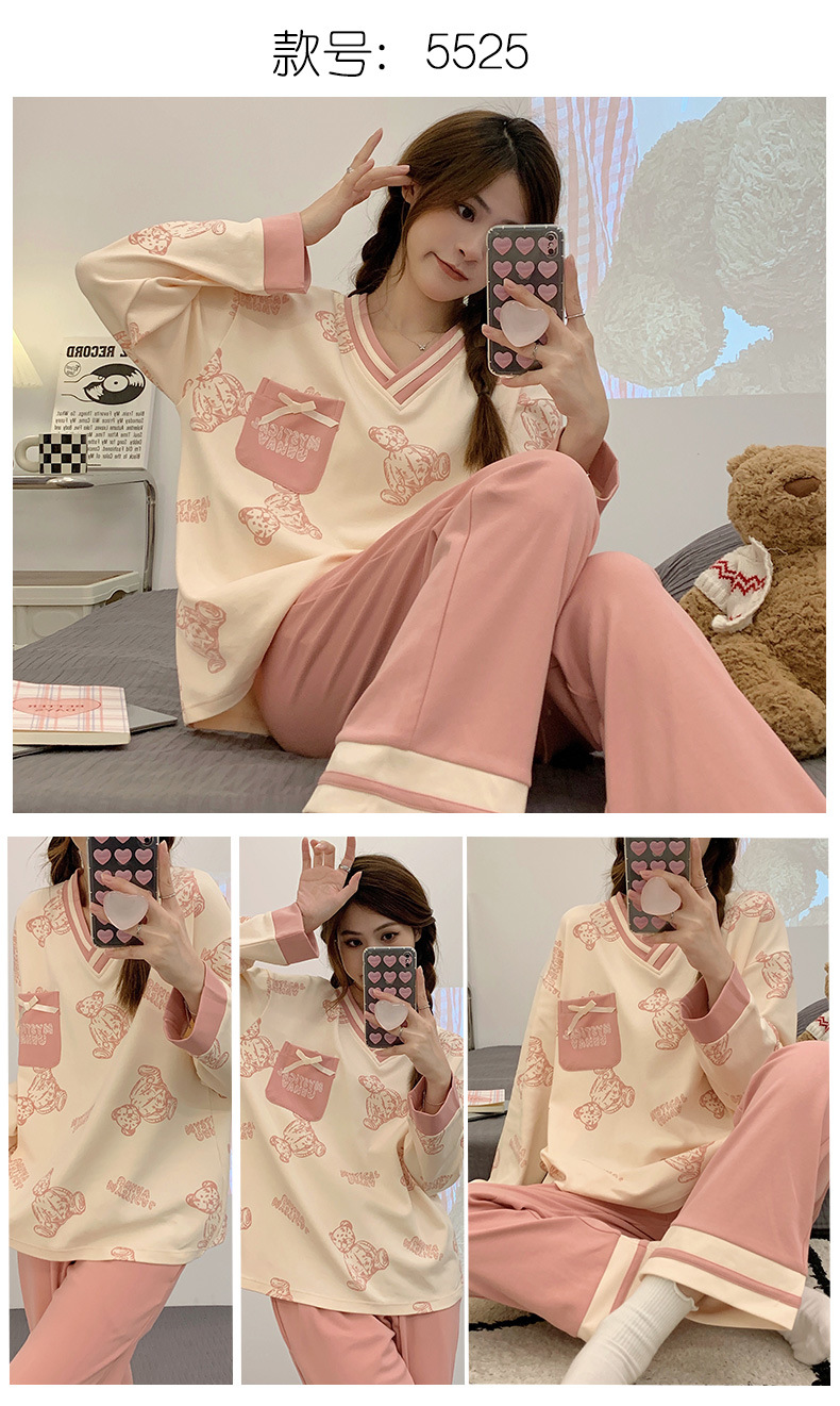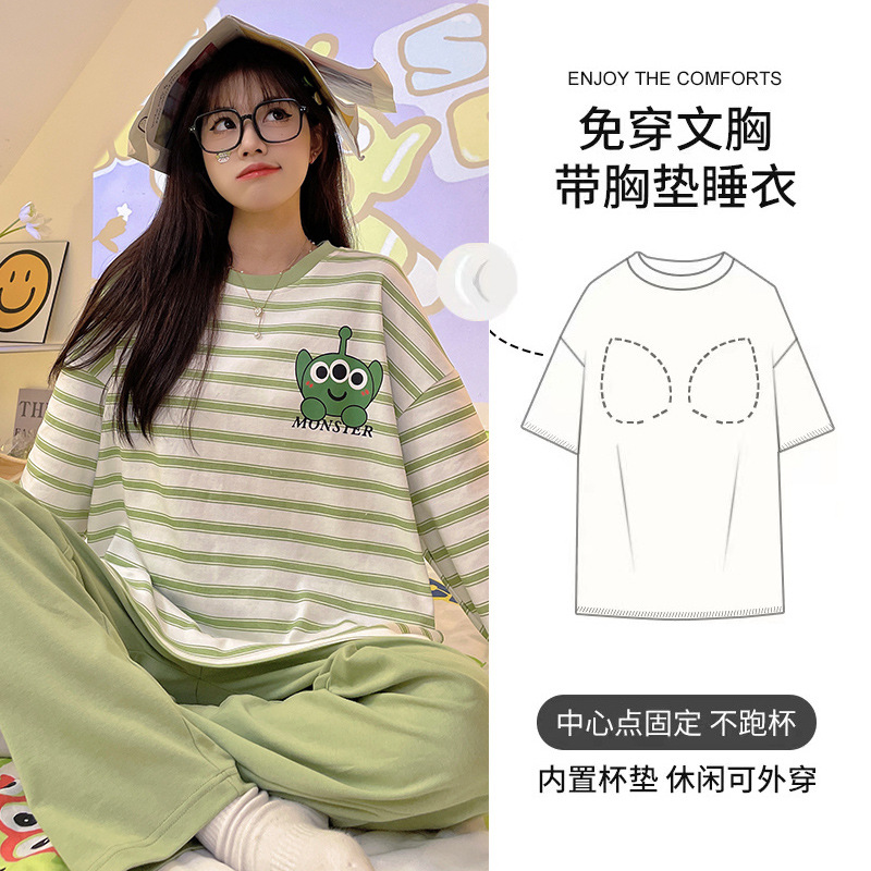 家居服新款长袖睡衣女士春秋款带胸垫防凸点家居服女宽松大码2025年秋季新款