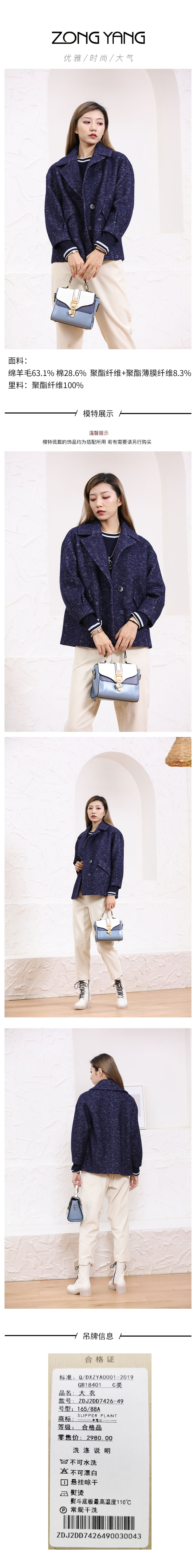 宗洋&卓蔻兰女士短款休闲时尚款大衣ZDJ2DD7426-49