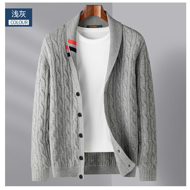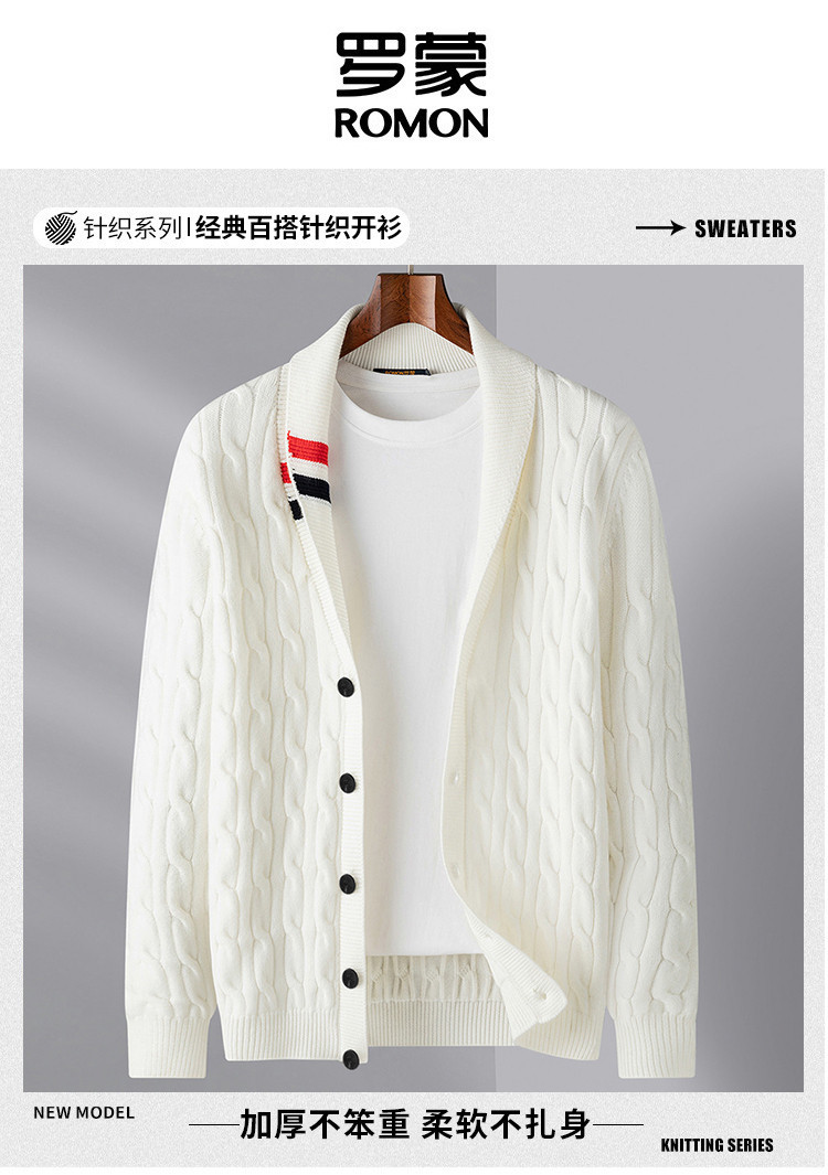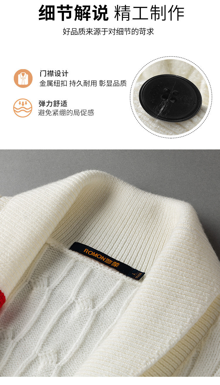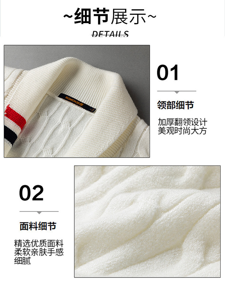罗蒙男士秋冬加厚开衫男时尚百搭休闲针织衫撞色翻领外套男士毛衣男
