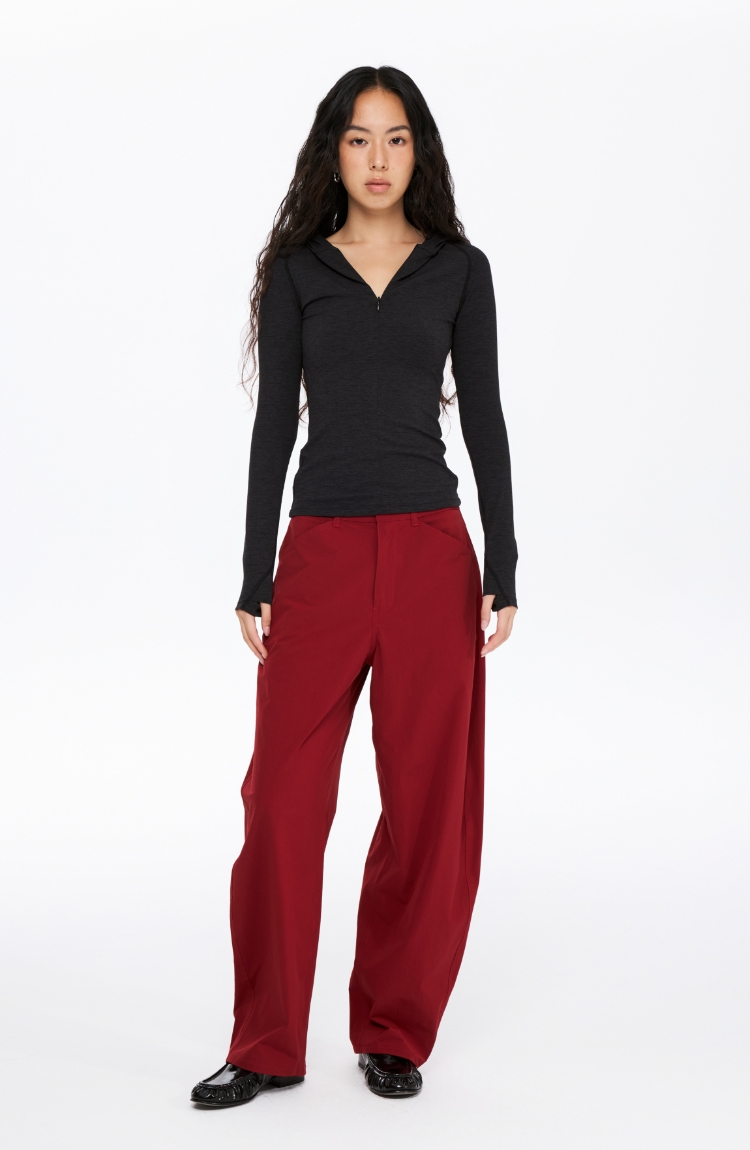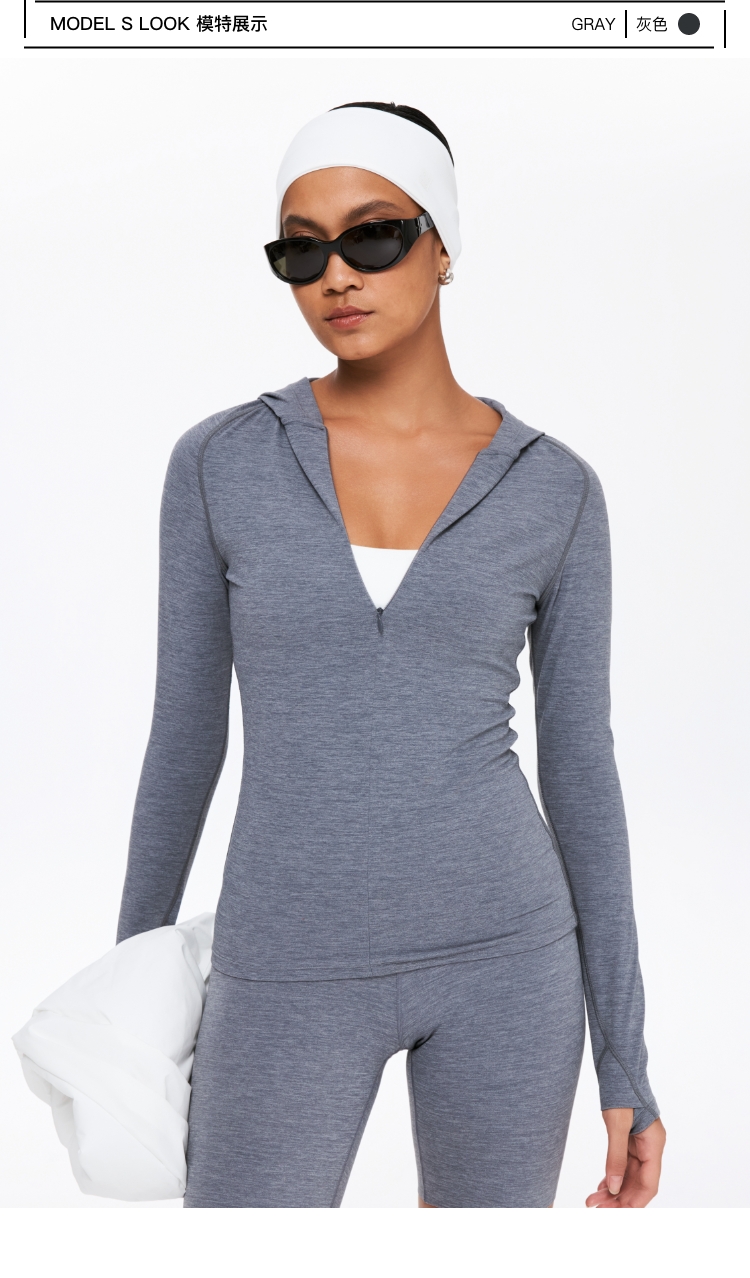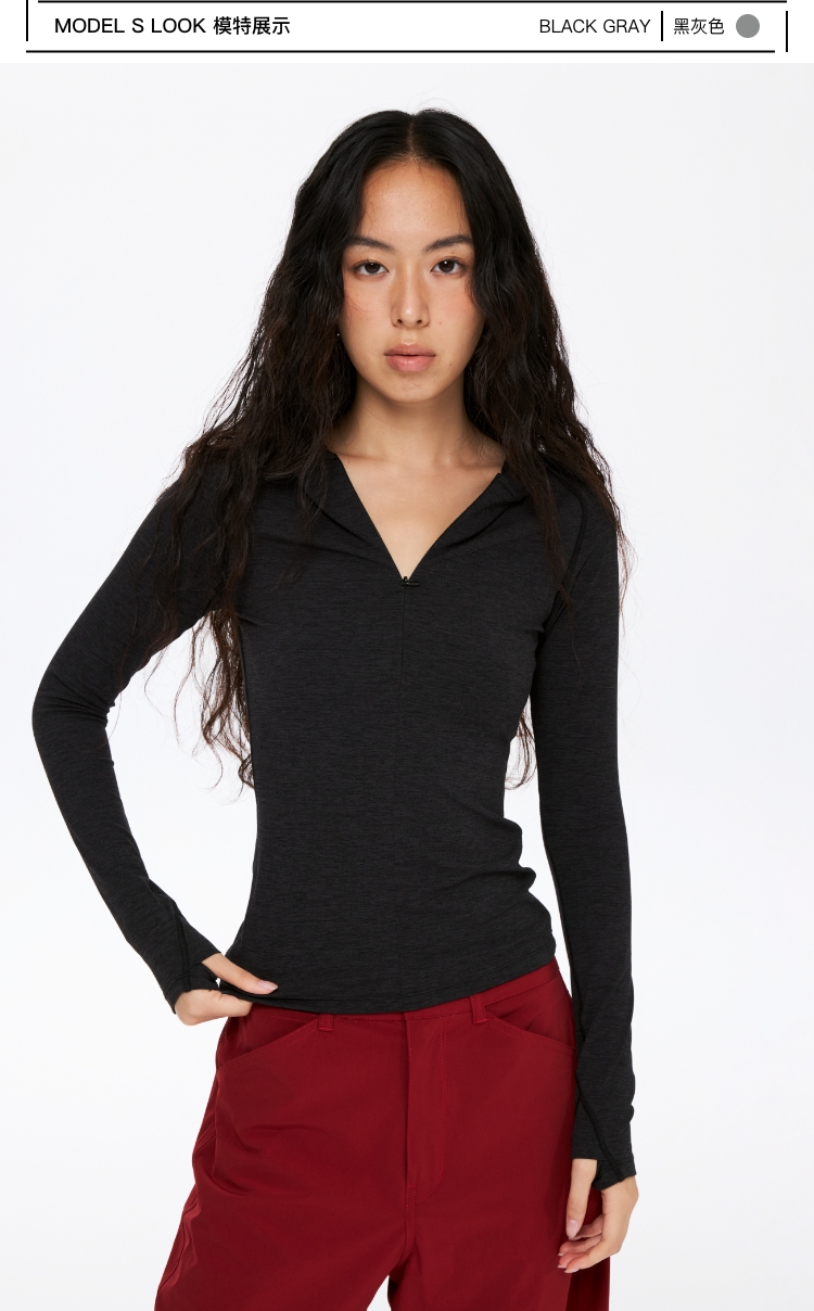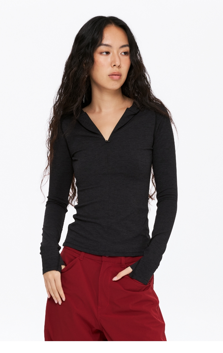 oneup半拉链连帽修身运动长袖