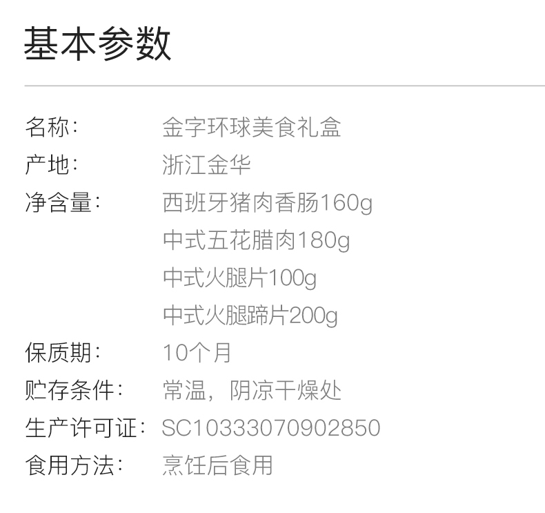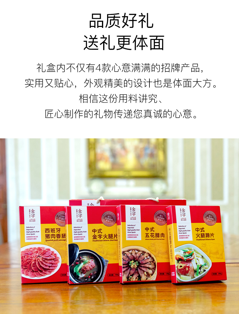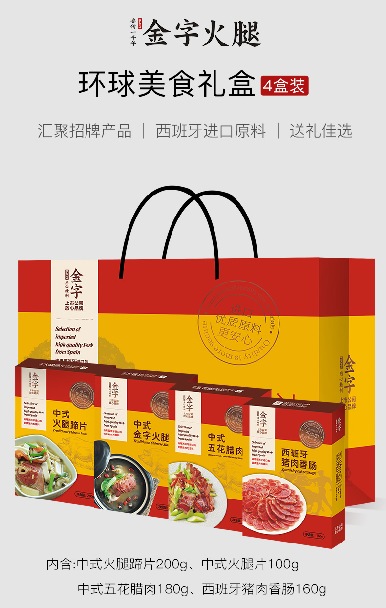 西班牙进口原料 | 金字 金华火腿环球美食4盒腊味伴手礼640g [福利品]