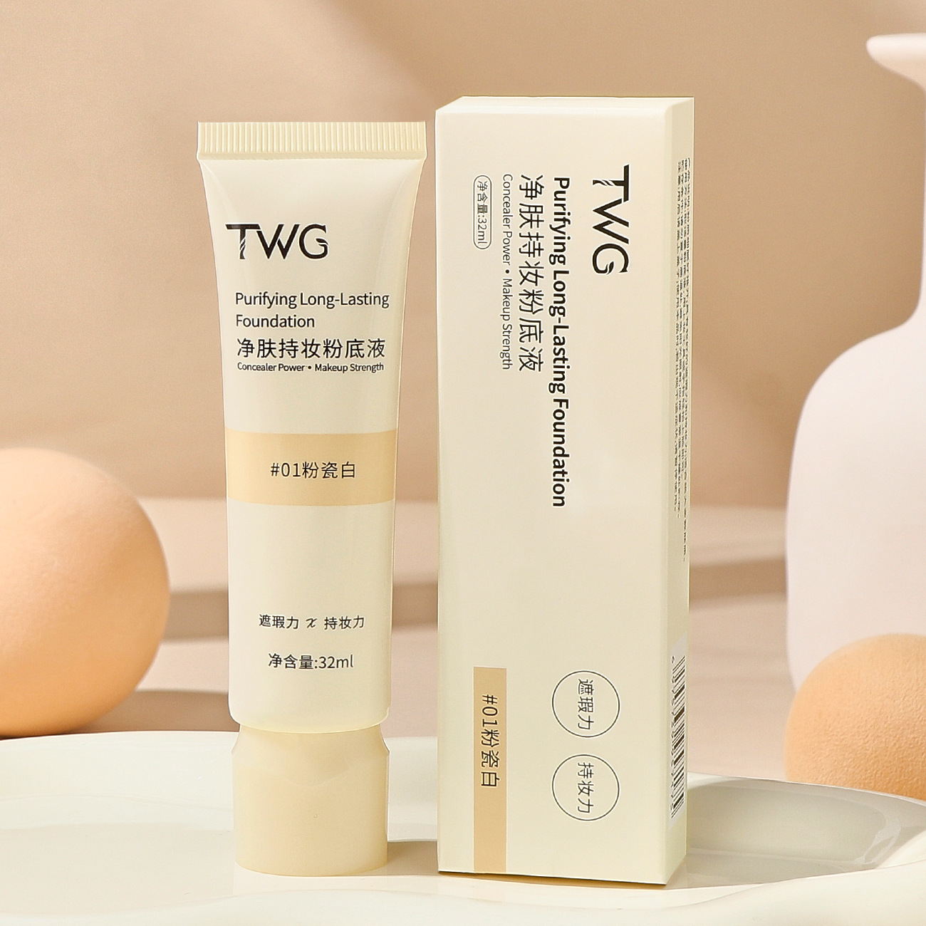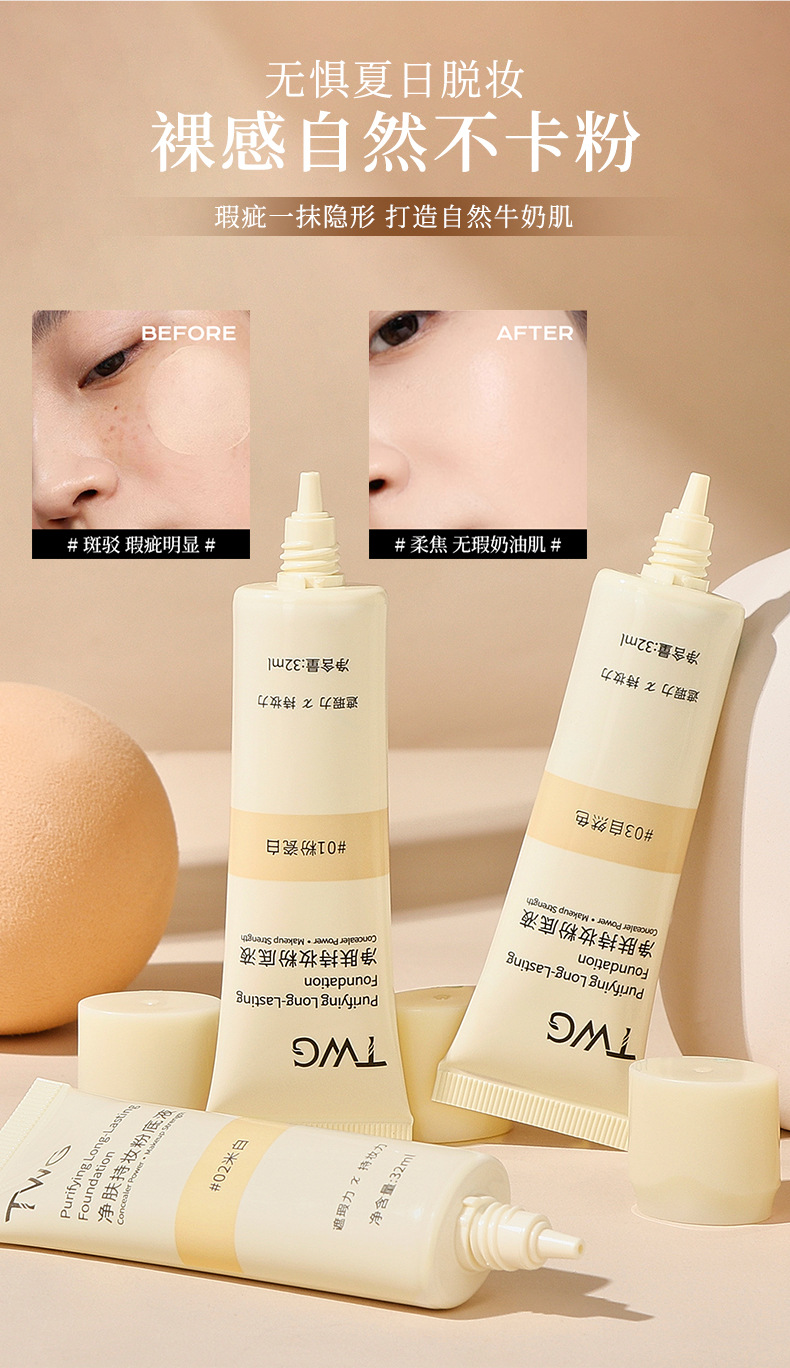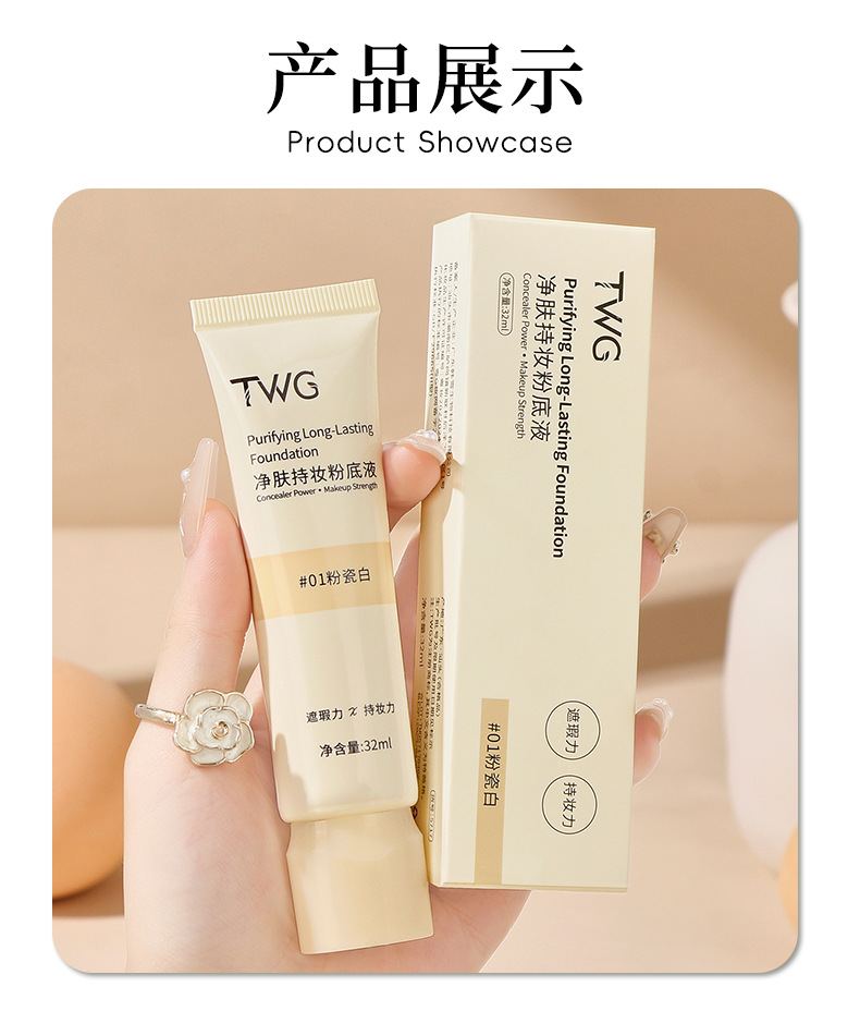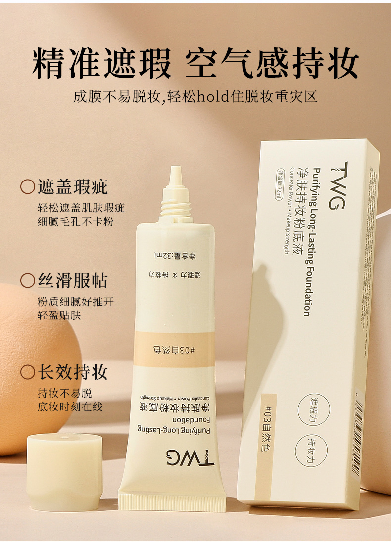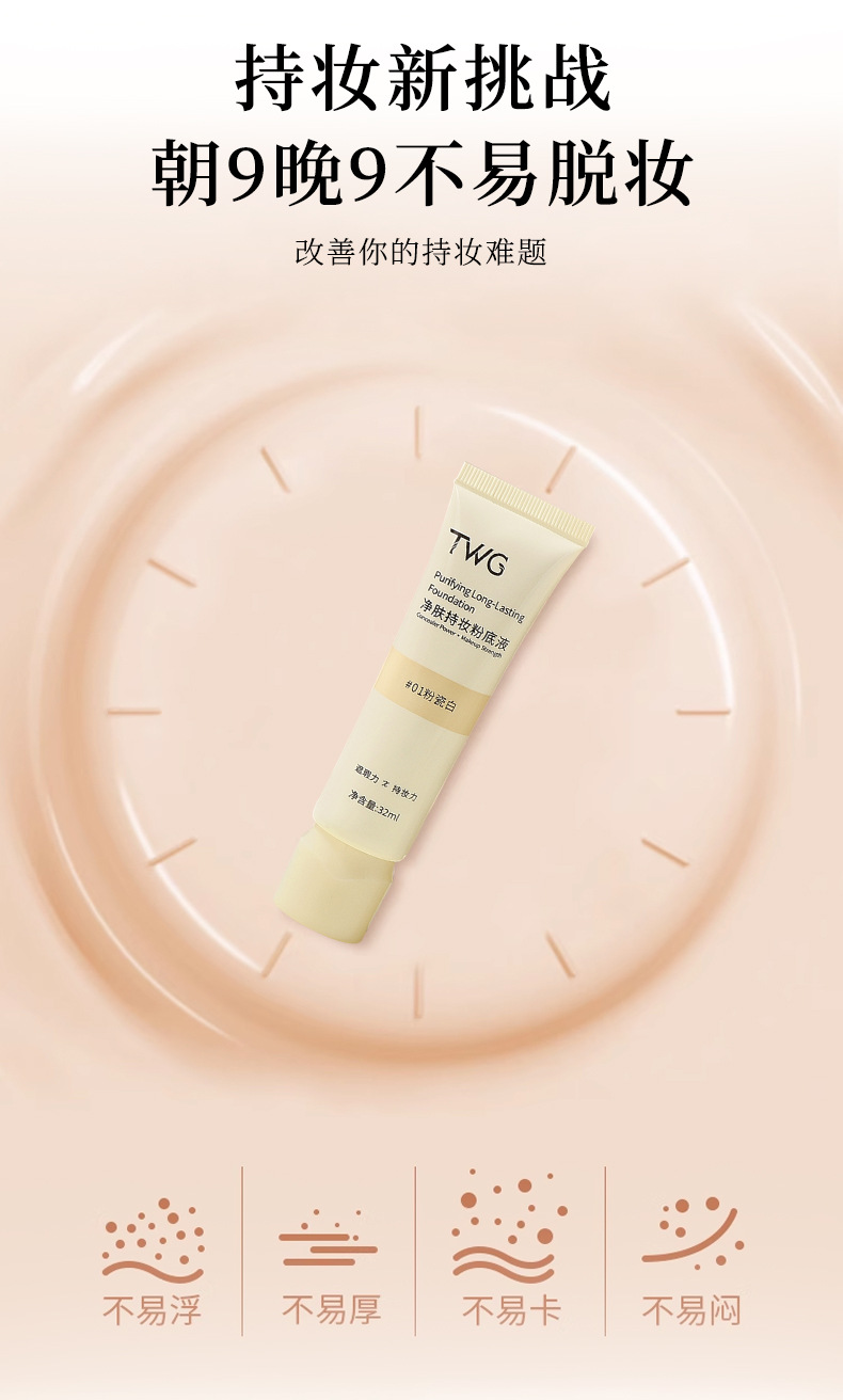 爆!【一次抢3支!持妆界天花板✨】TWG净肤粉底液,奶油肌秒get!遮瑕+持久双管齐下,不卡粉不脱妆🔥