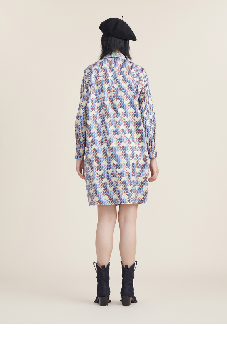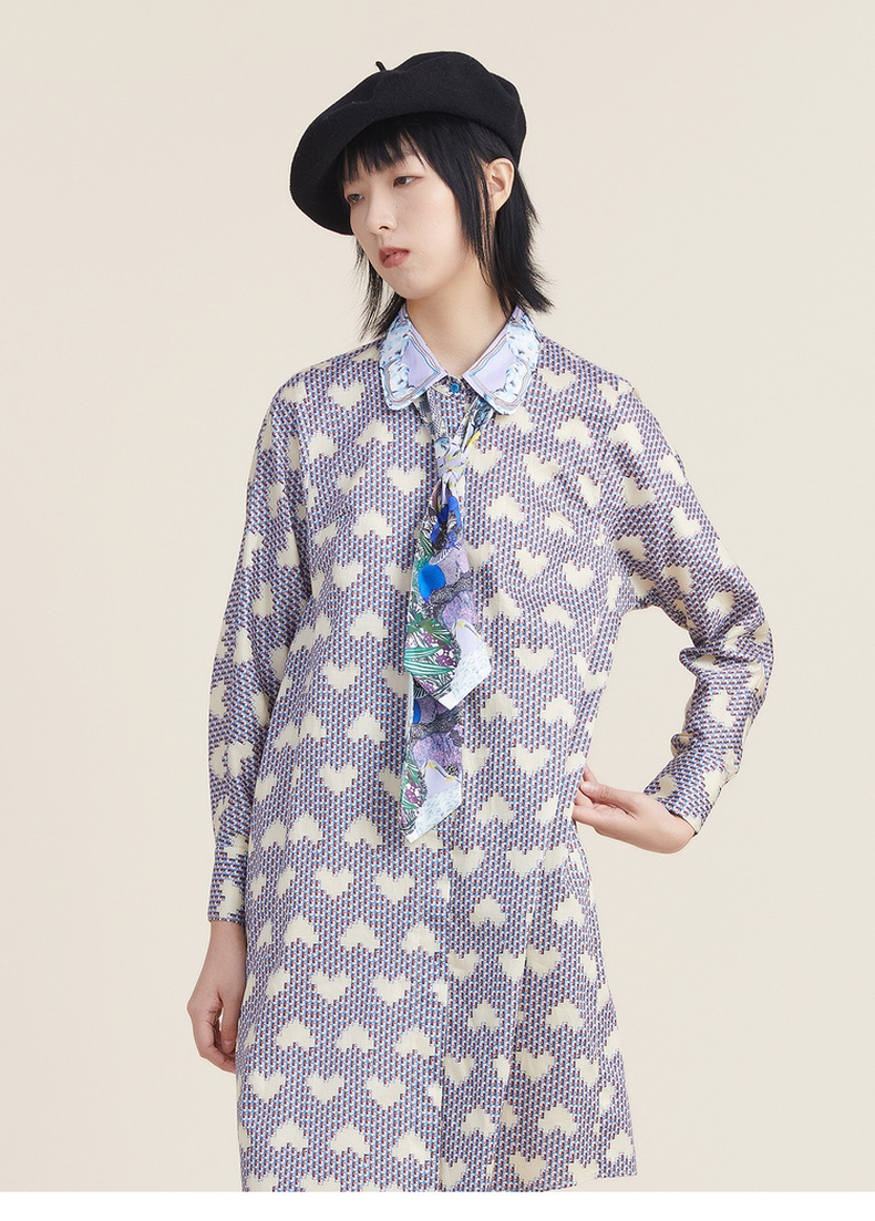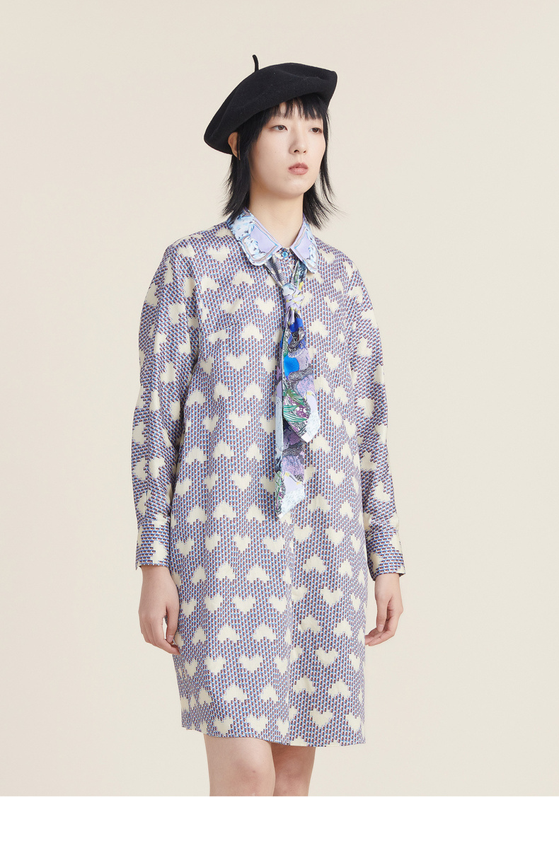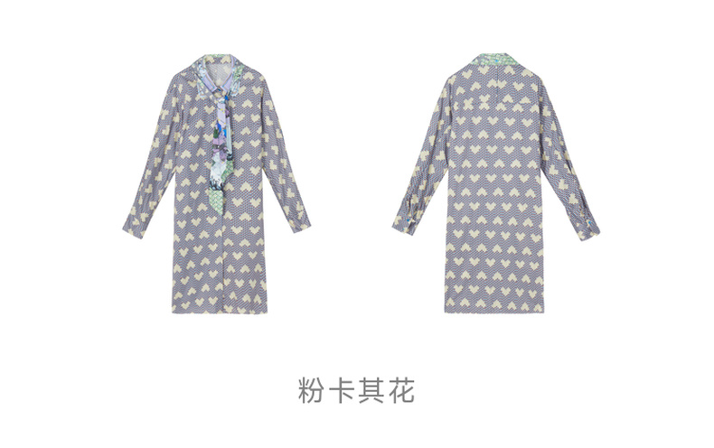 谜底纯棉衬衫连衣裙2022秋款领带设计爱心印花H型中长裙223ML1112