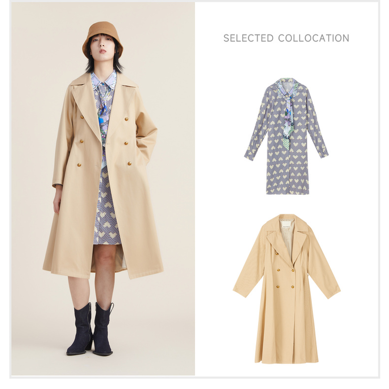 谜底22秋新品简约经典双排扣绑带中长风衣外套女228ME6156