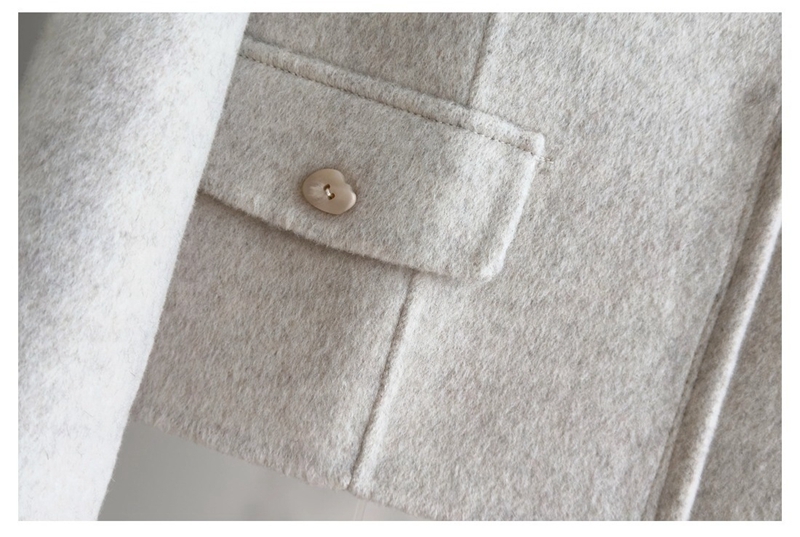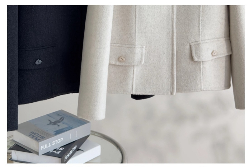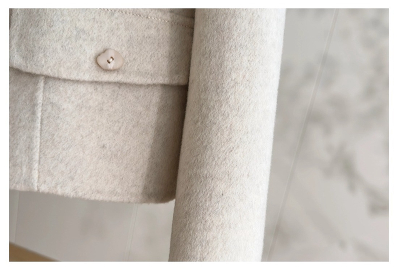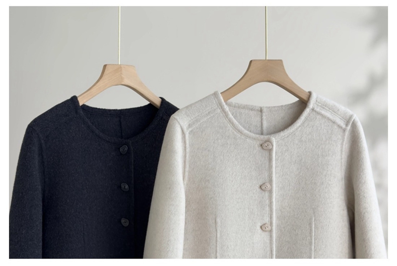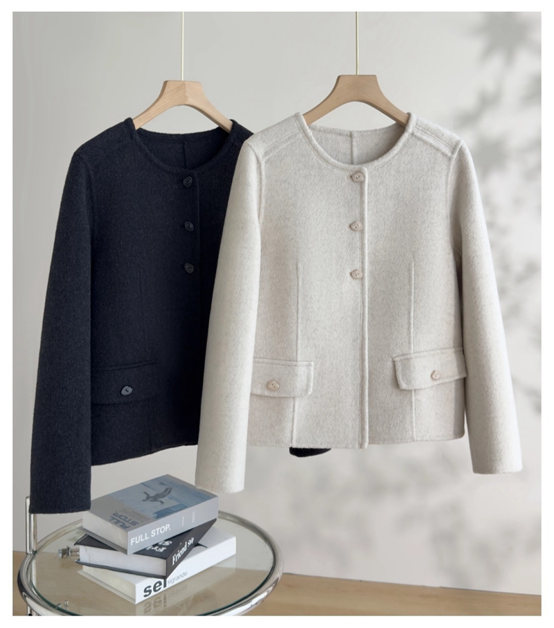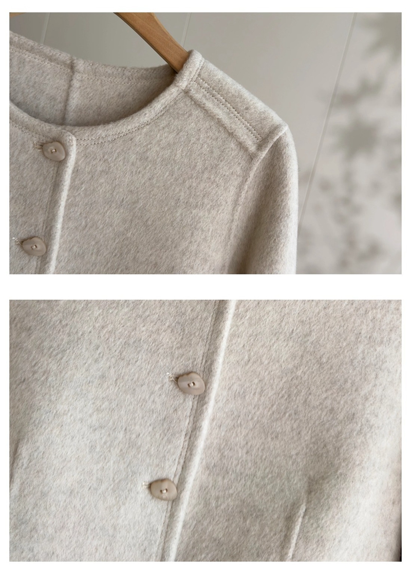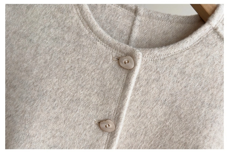 双面羊绒圆领长袖单排扣毛呢外套