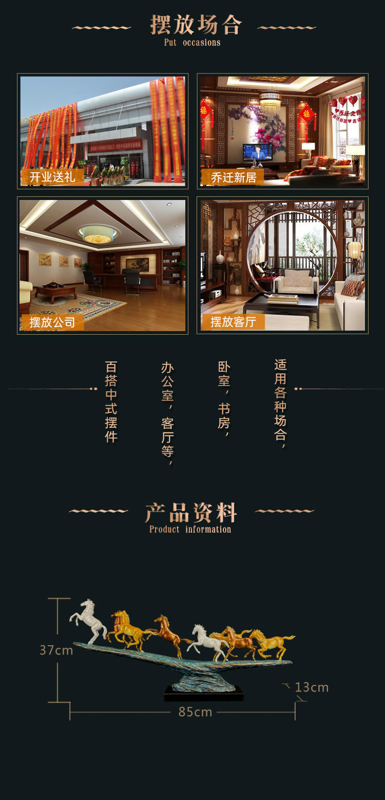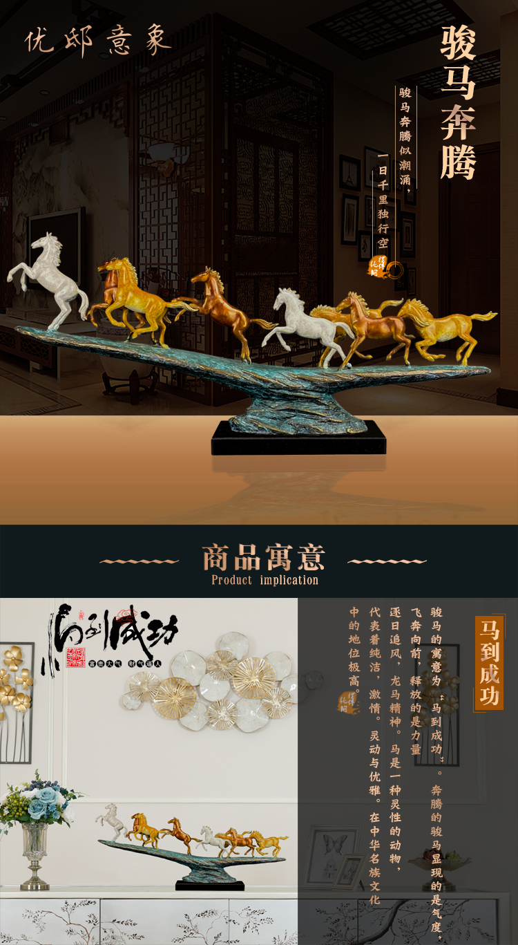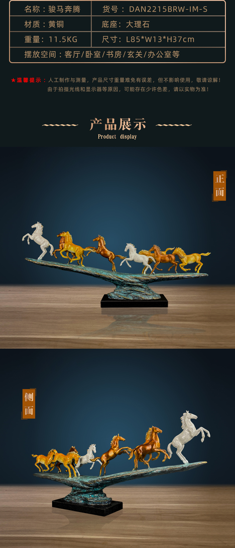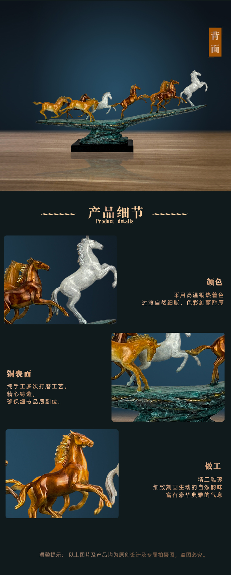 优邸骏马奔腾铜摆件新中式原创工艺品家具装饰店铺办公室开业礼品八马 骏马奔腾(小) 优邸纯铜热着色