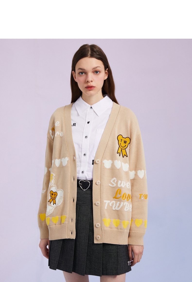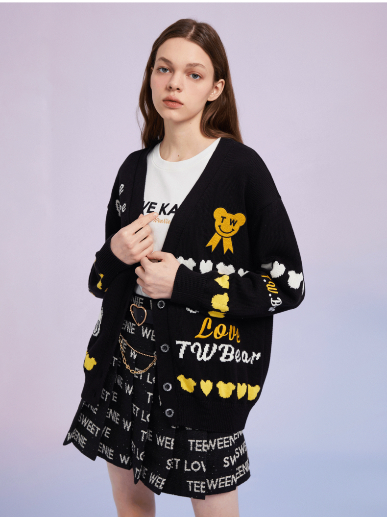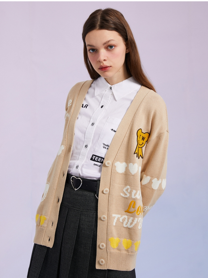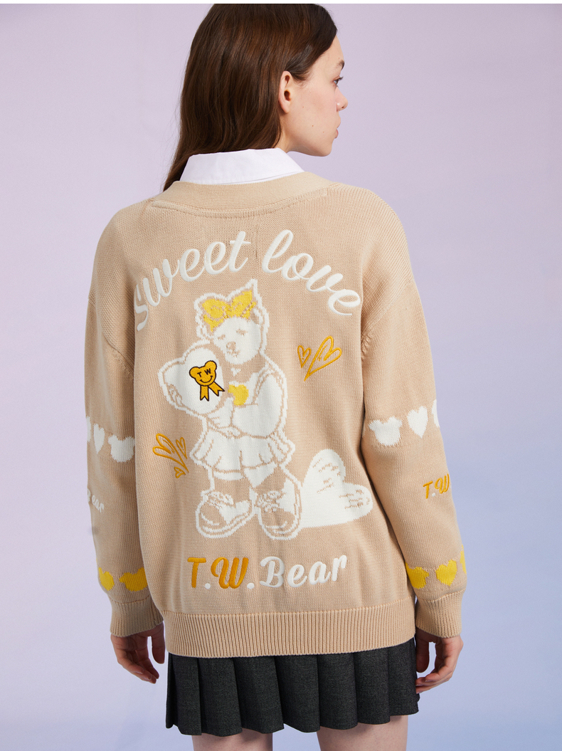 TeenieWeenie小熊女装2022春季新款V领针织衫开衫外套TTCK221201T