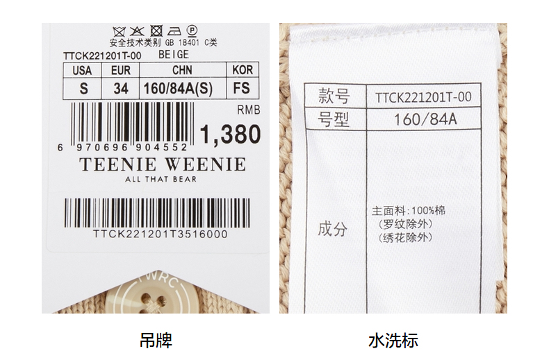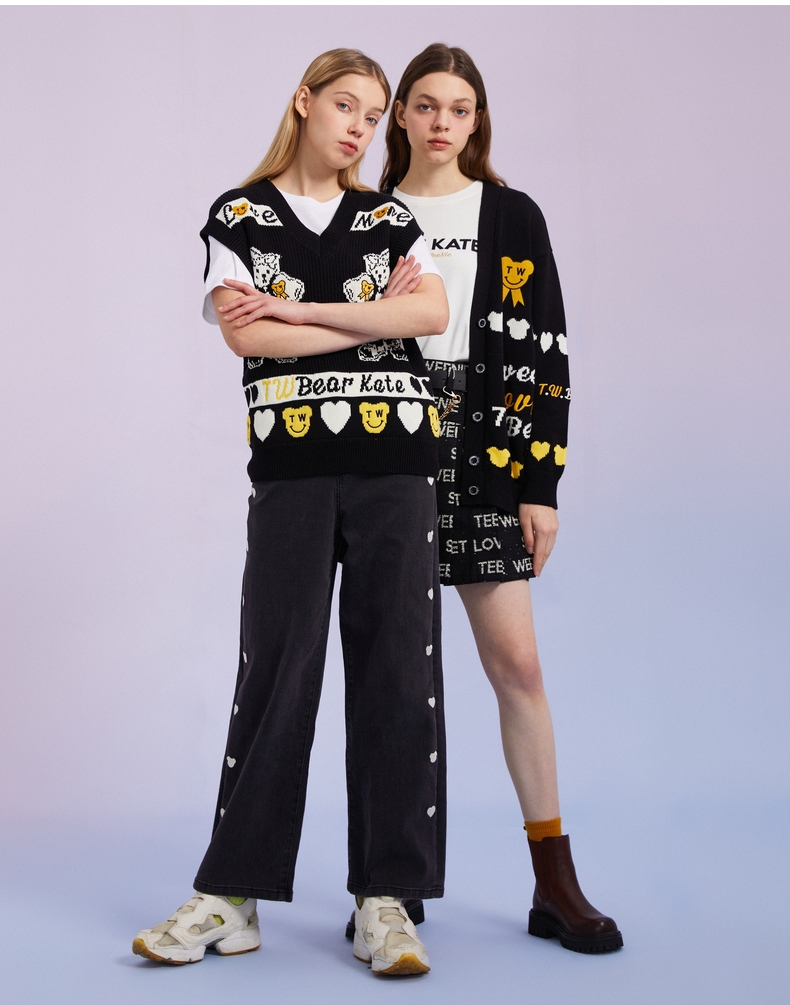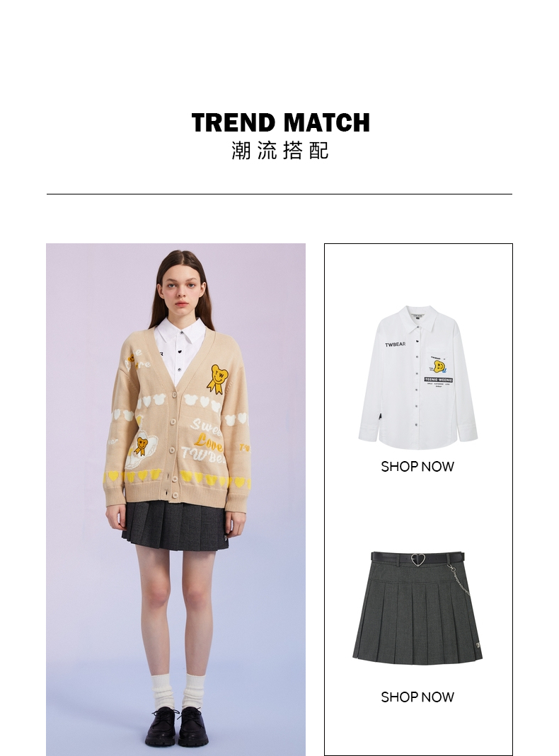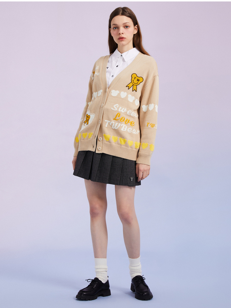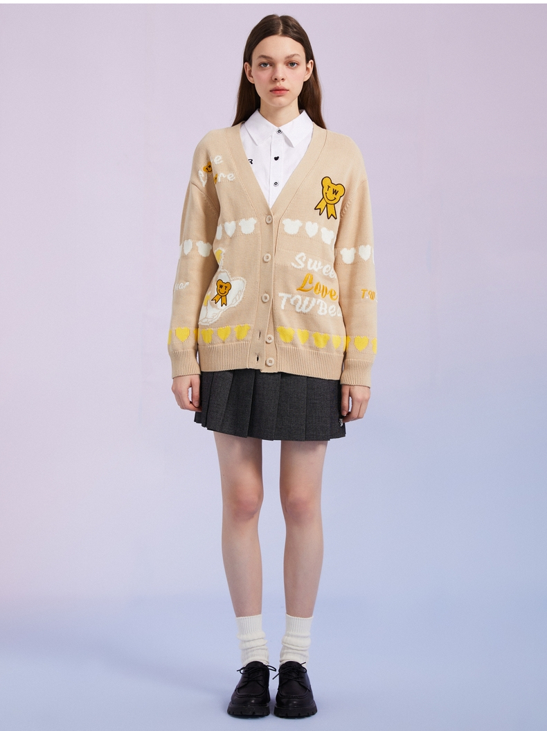 TeenieWeenie小熊女装2022春季新款V领针织衫开衫外套TTCK221201T