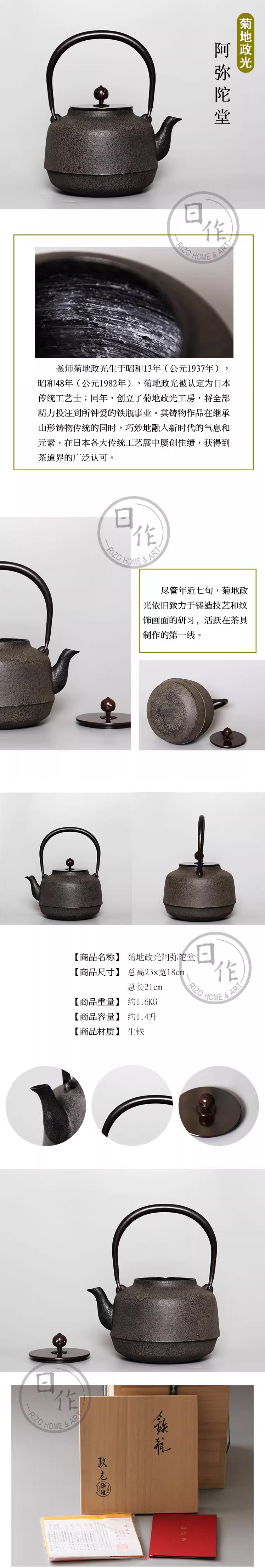 菊地政光 阿弥陀堂铁壶原装木盒 日本铁器菊地政光阿弥陀堂8号铁壶铁瓶茶壶烧水壶