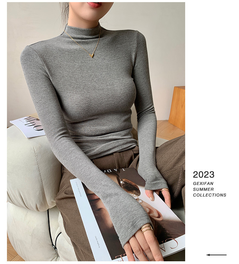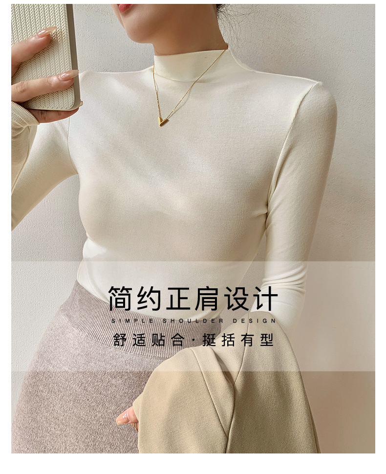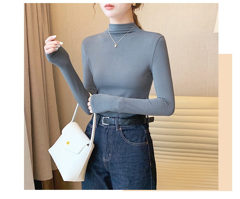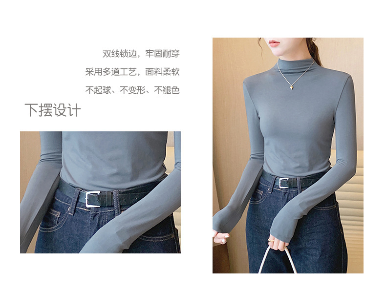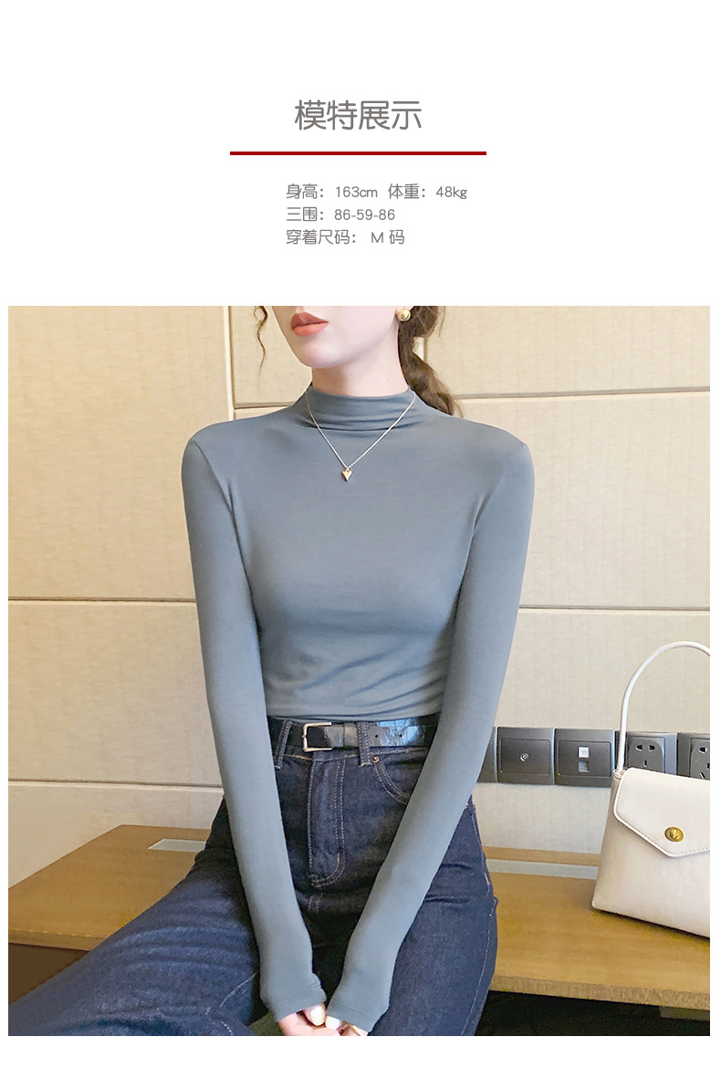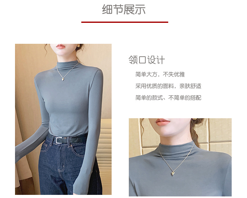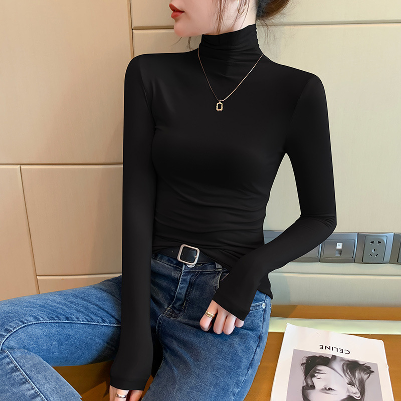 【买一送一】莫代尔黑色半高领打底衫女春秋内搭修身面膜长袖t恤中领薄款上衣