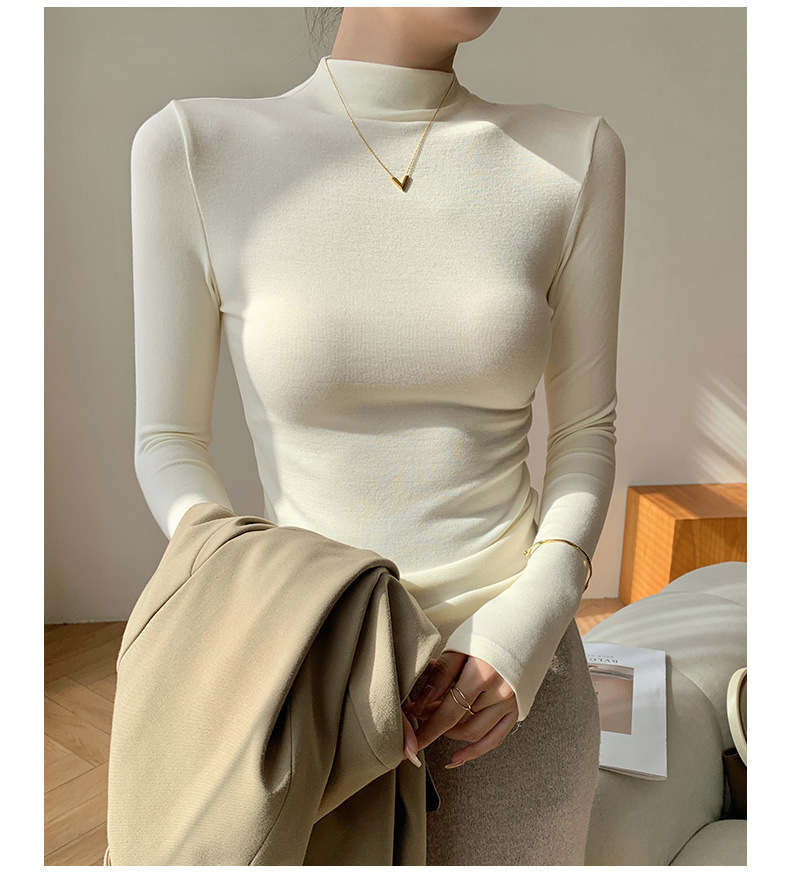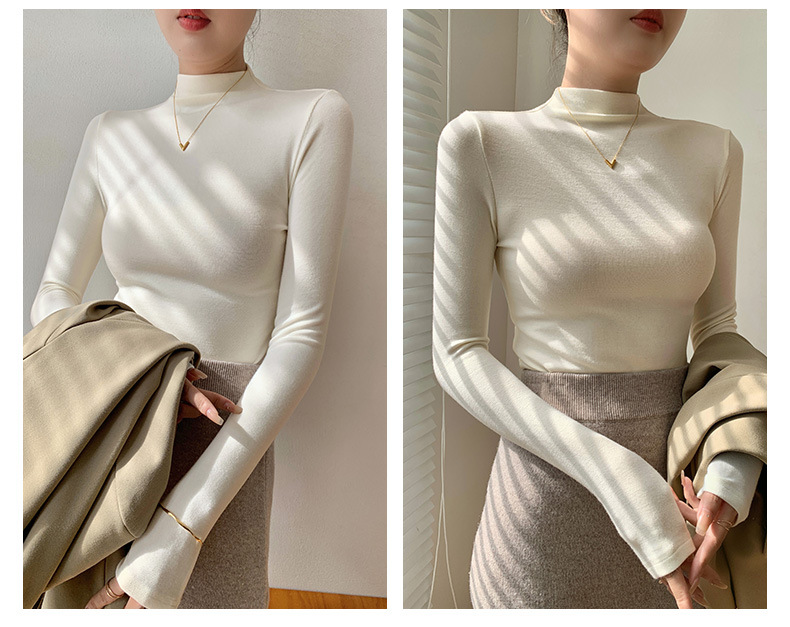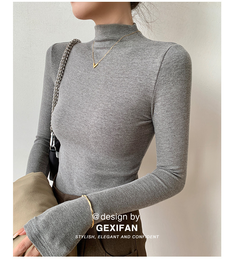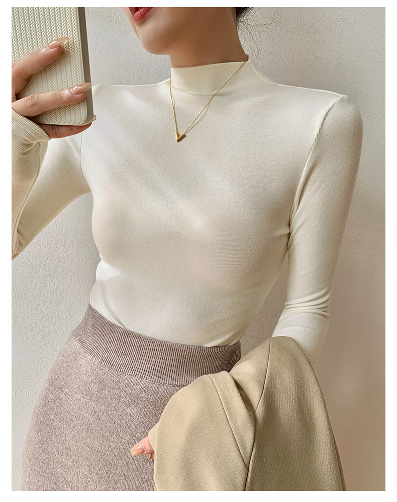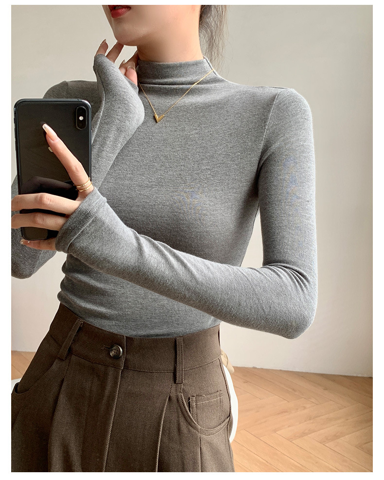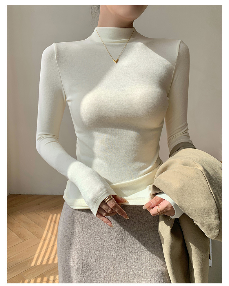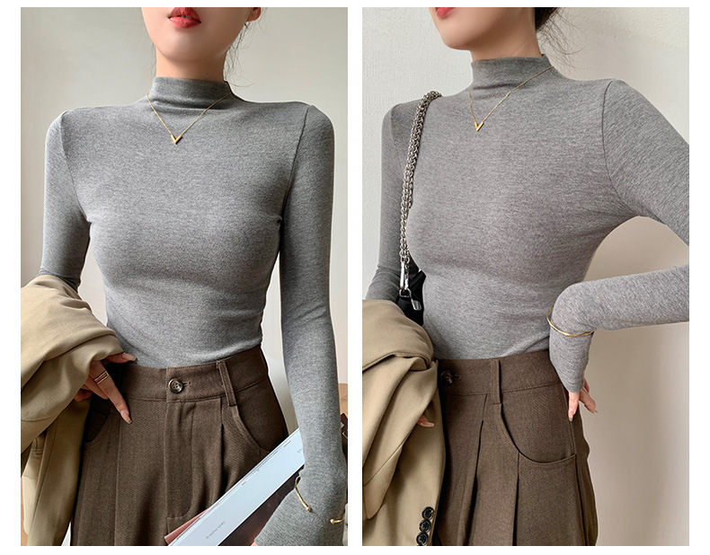 【买一送一】莫代尔黑色半高领打底衫女春秋内搭修身面膜长袖t恤中领薄款上衣