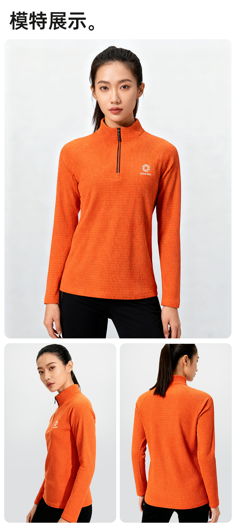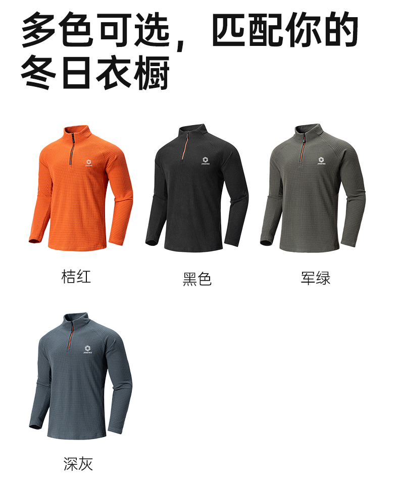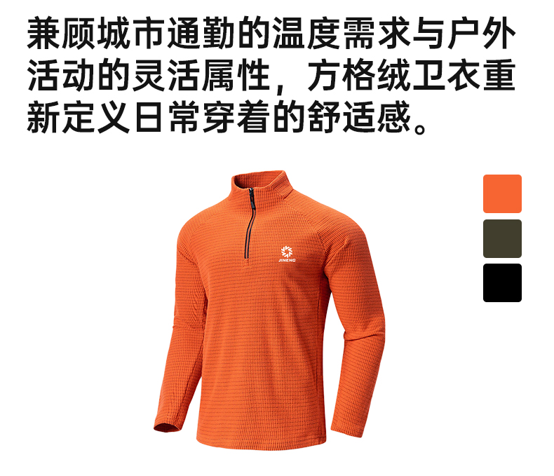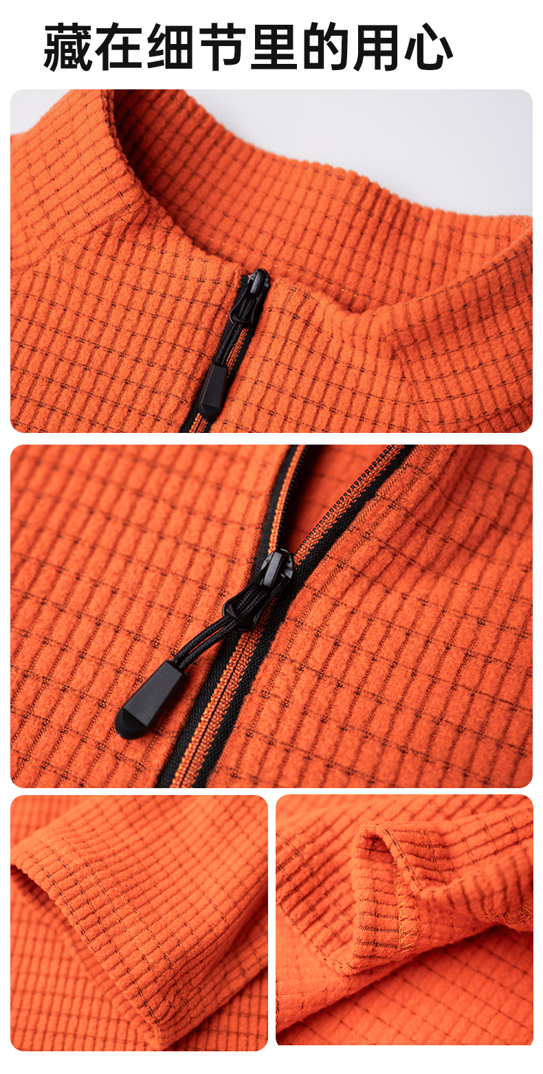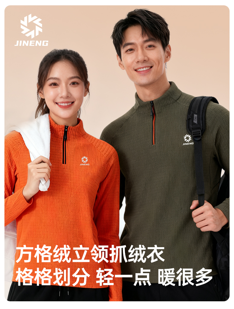 积能 运动户外方格绒卫衣男女跑步抓绒衣男拉链立领内搭外穿上衣