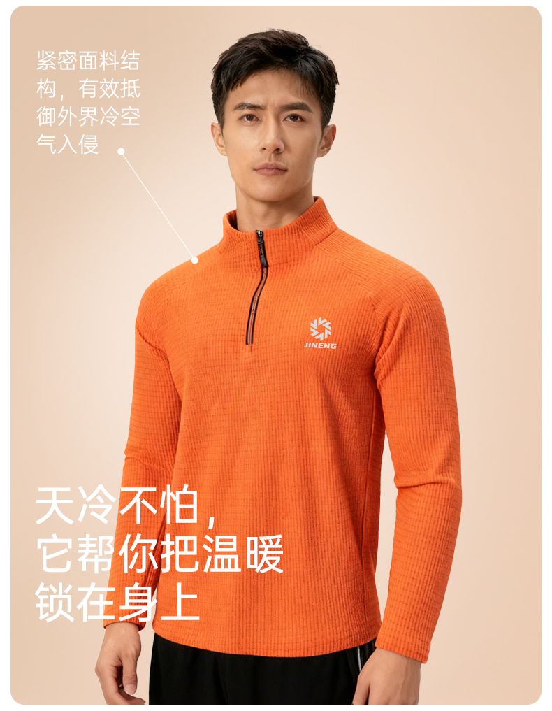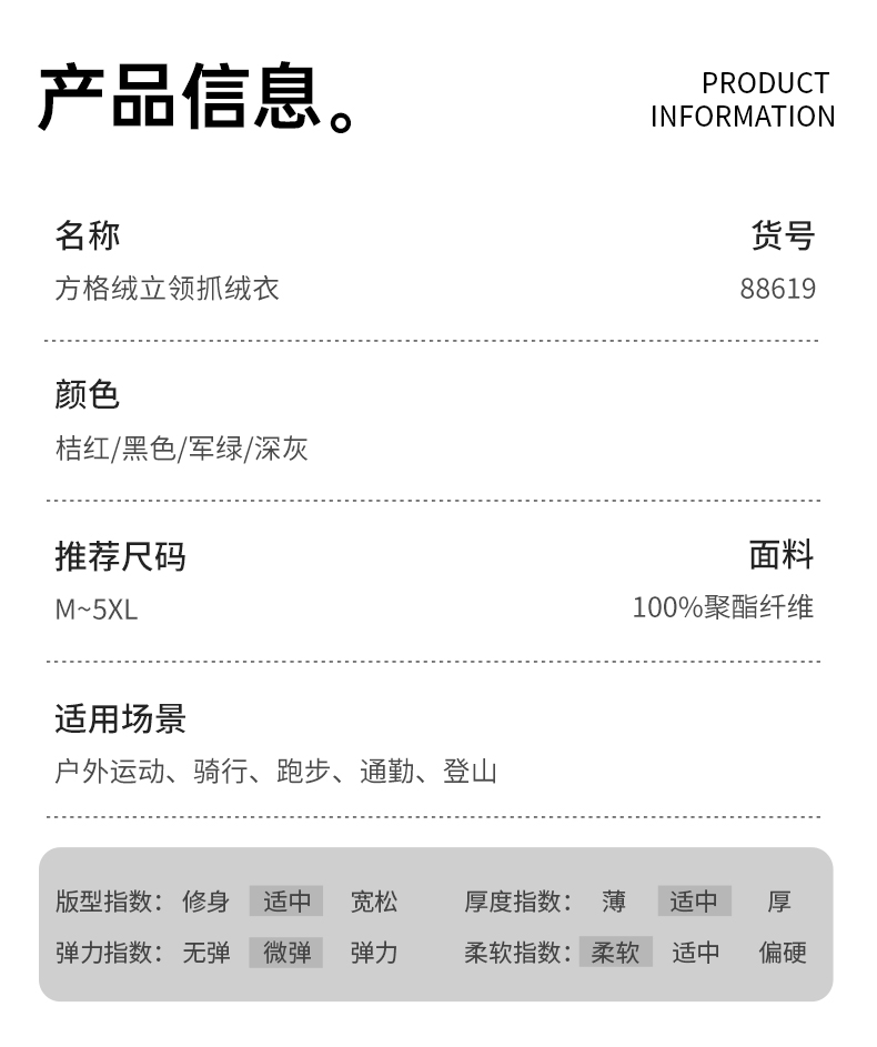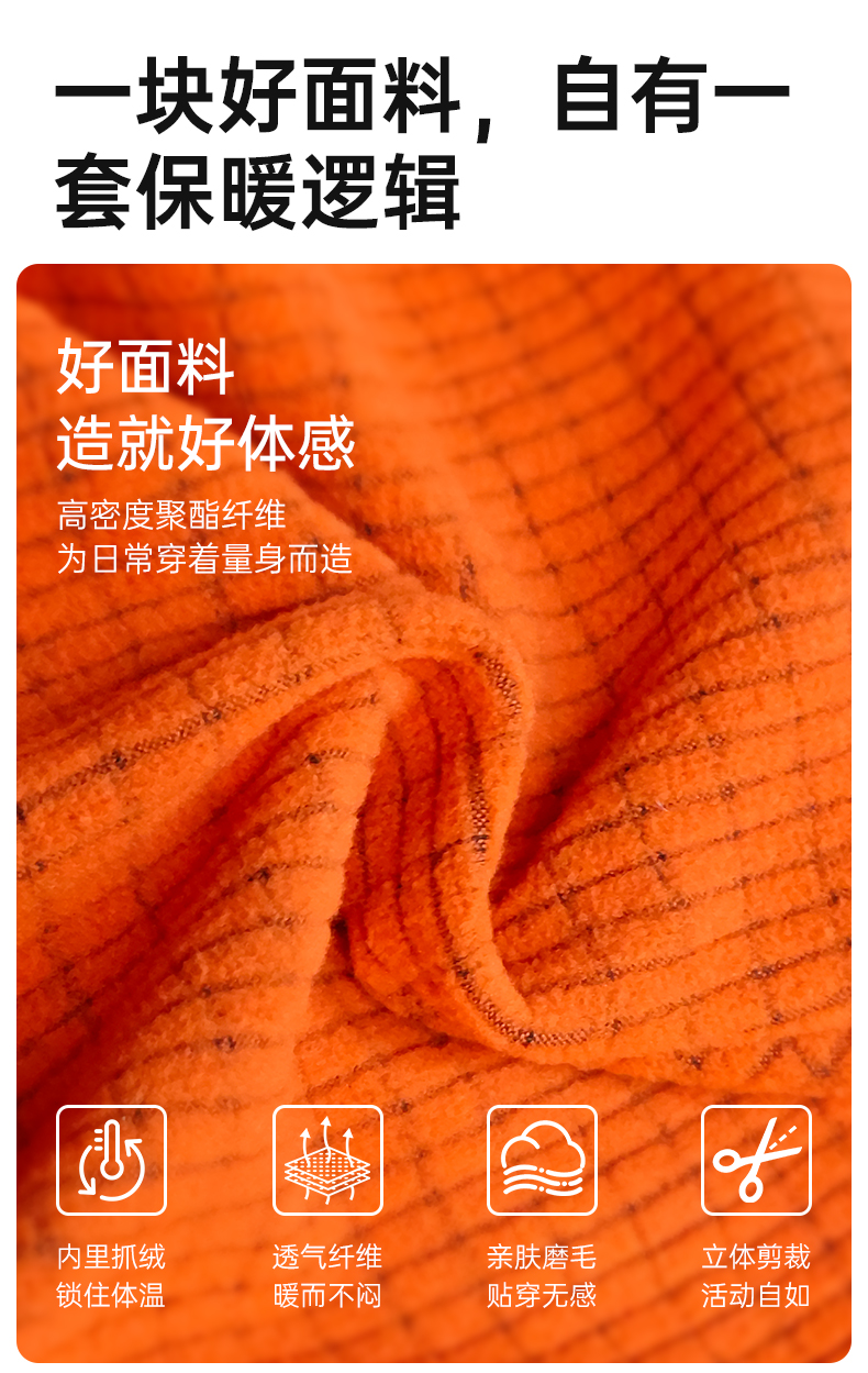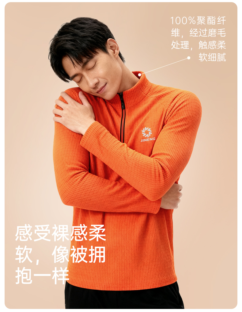 积能 运动户外方格绒卫衣男女跑步抓绒衣男拉链立领内搭外穿上衣