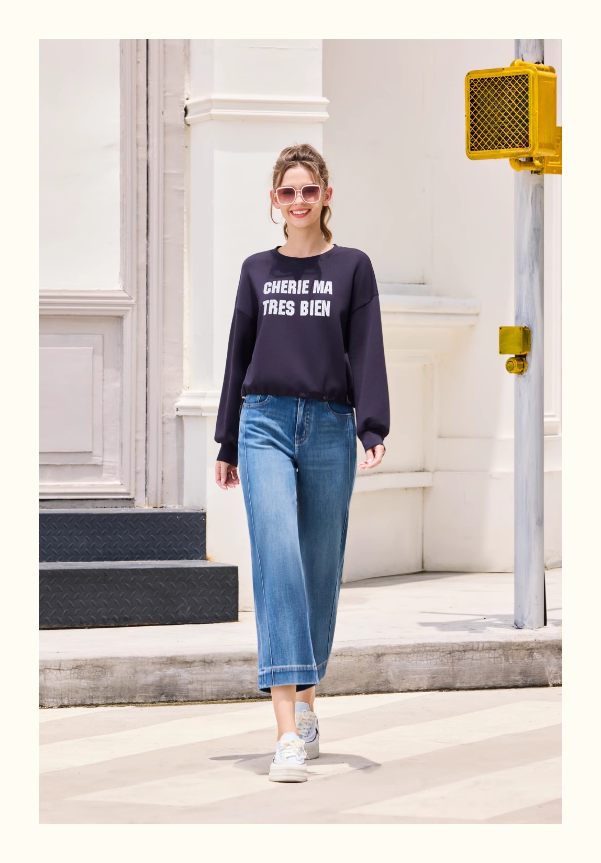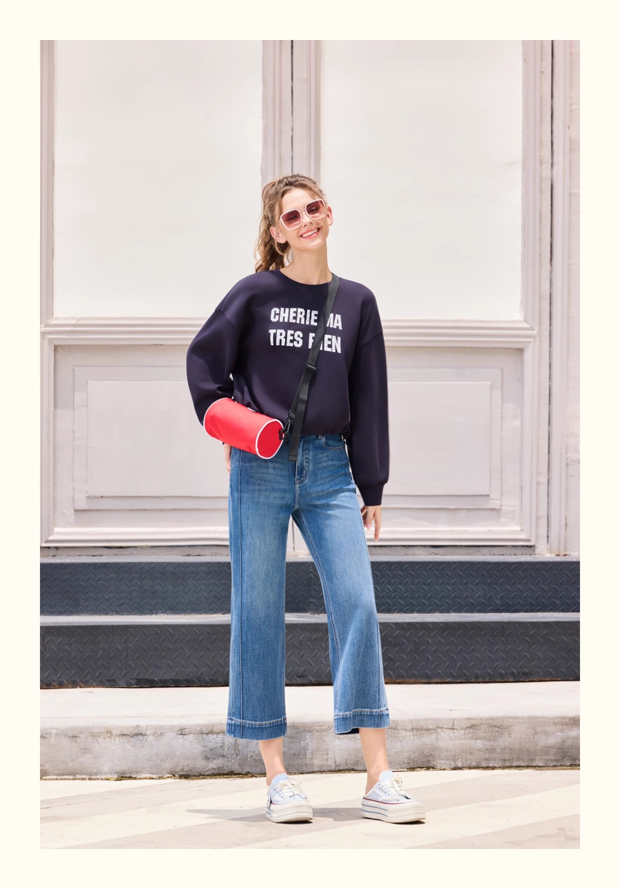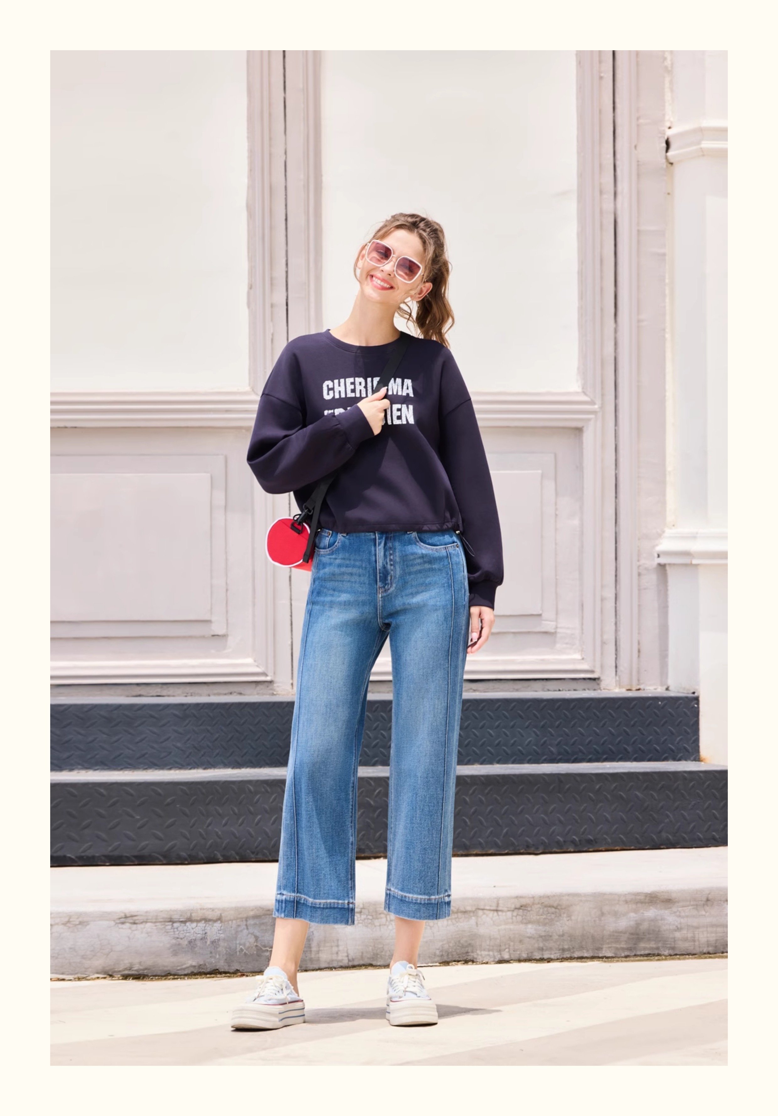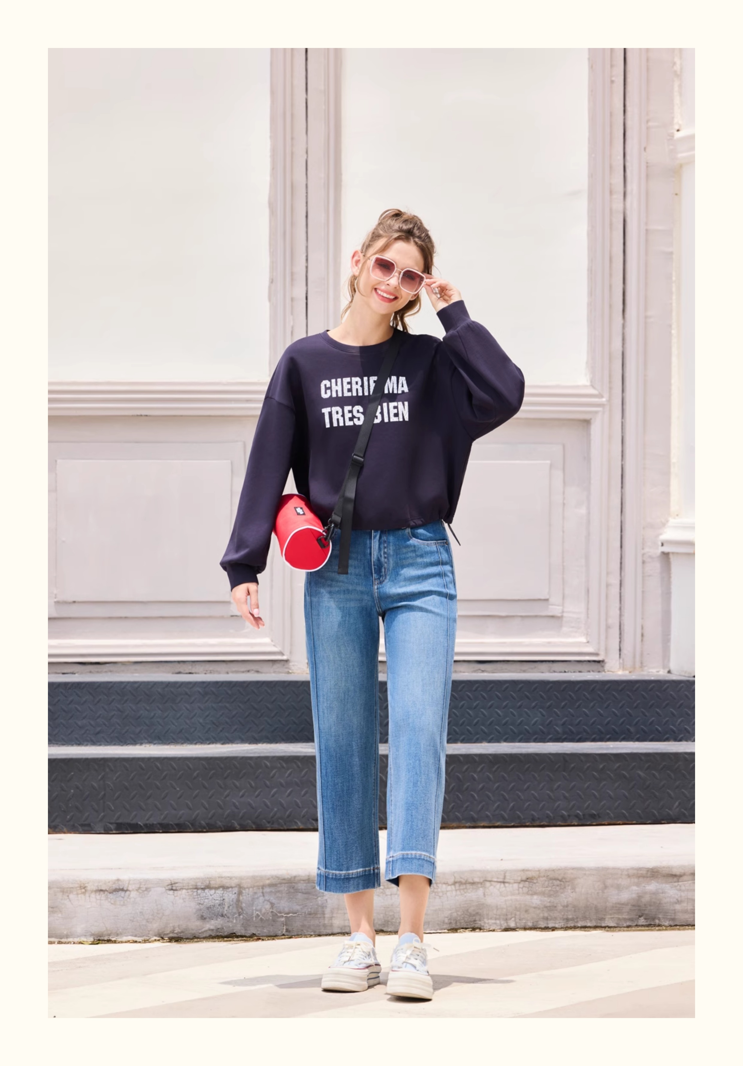 半身缘女装 秋季圆领经典百搭透气宽松舒适卫衣253113U04540025