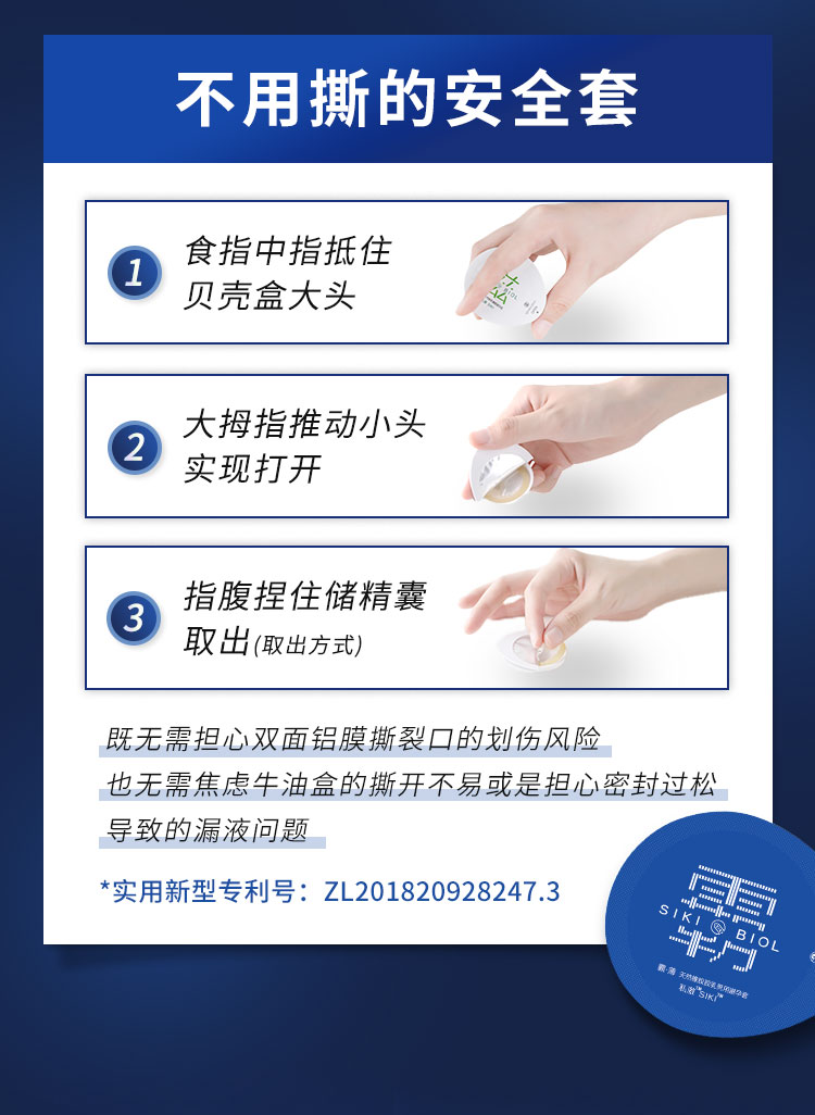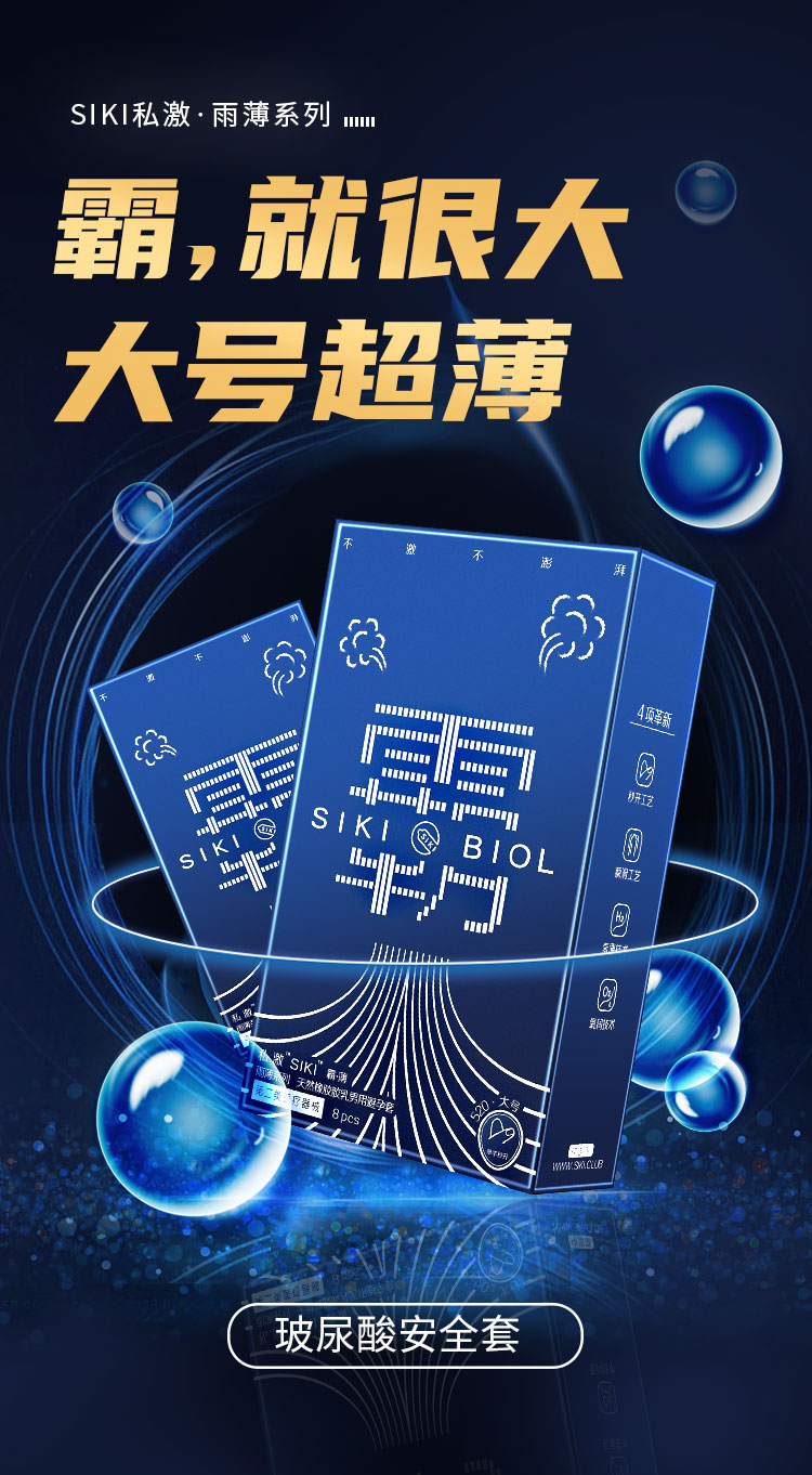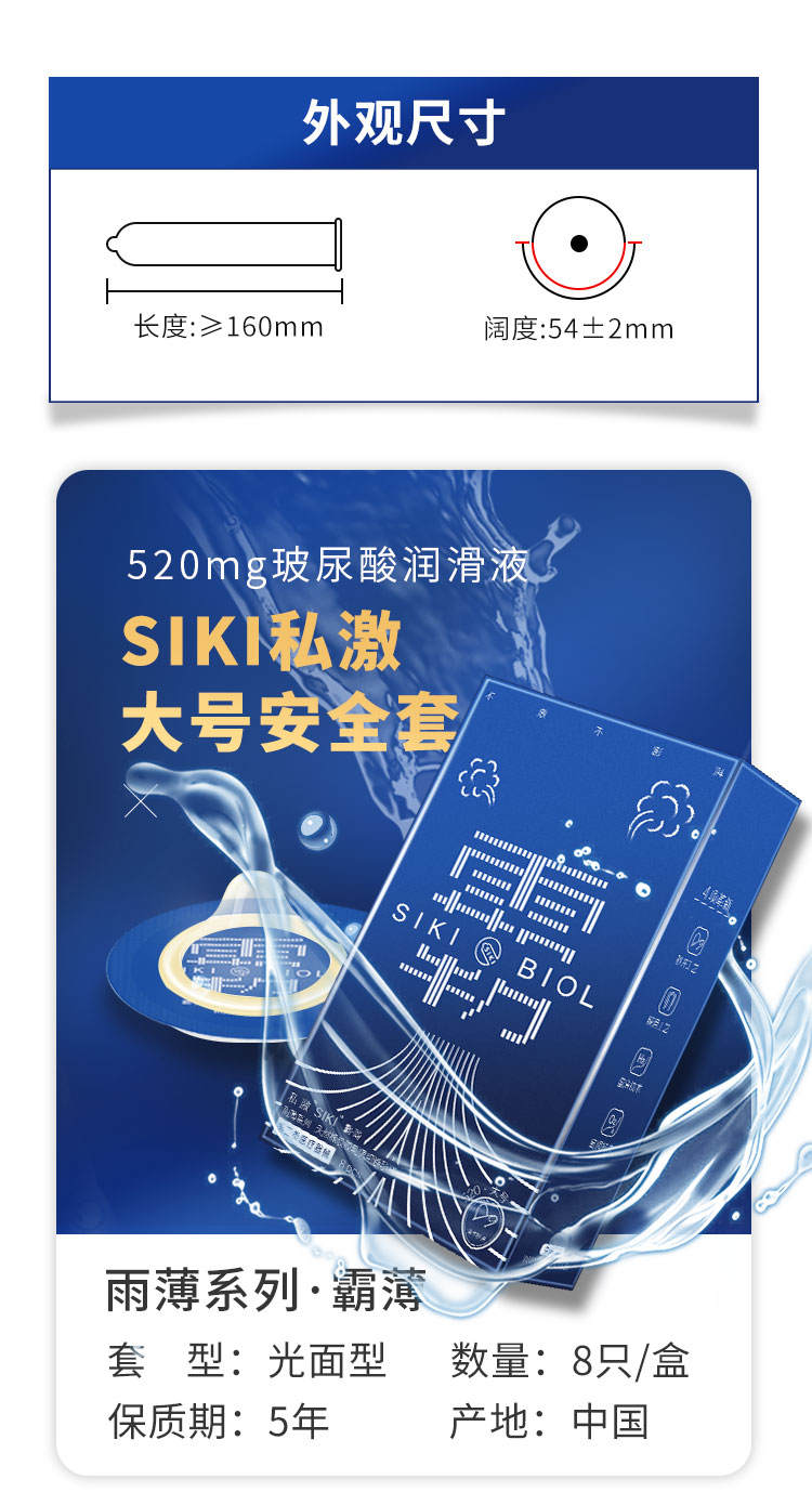 【单手秒开大号】SIKI私激 雨薄系列霸款 超薄润滑玻尿酸安全套