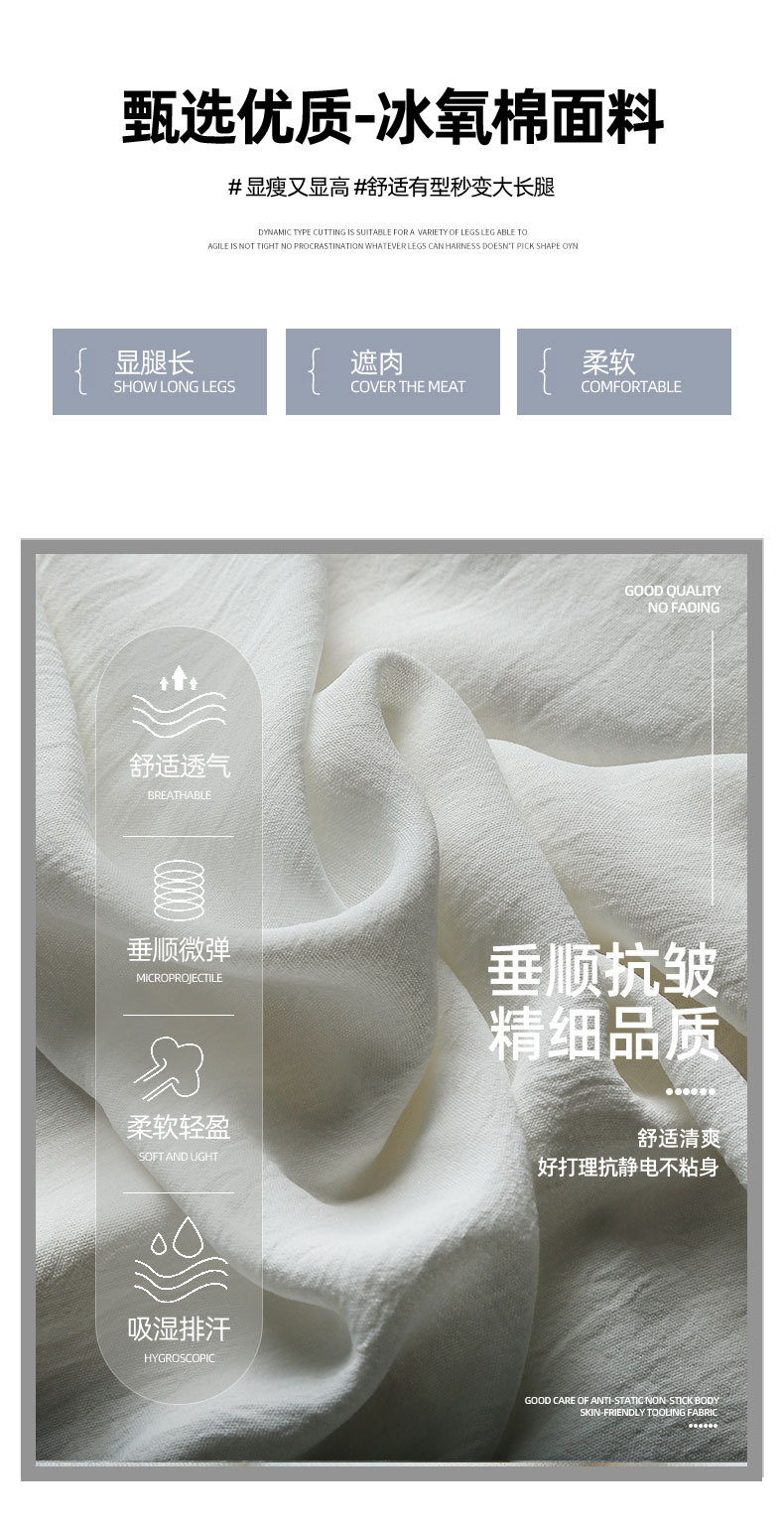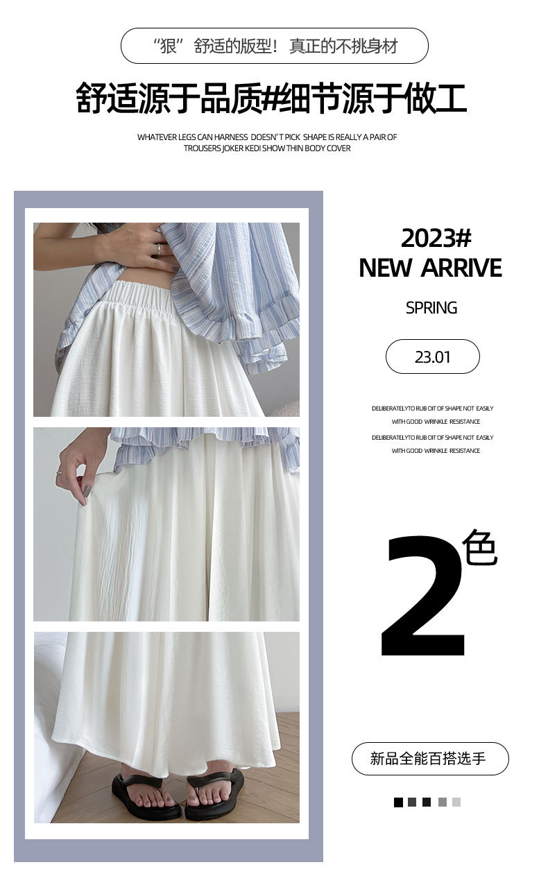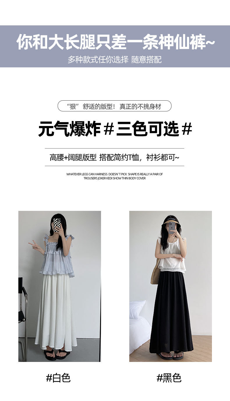 「三色可选!夏日褶皱半身裙」白色裙裤女夏天薄款冰丝小个子飘飘百褶a字半身裙高腰垂感阔腿裤下装