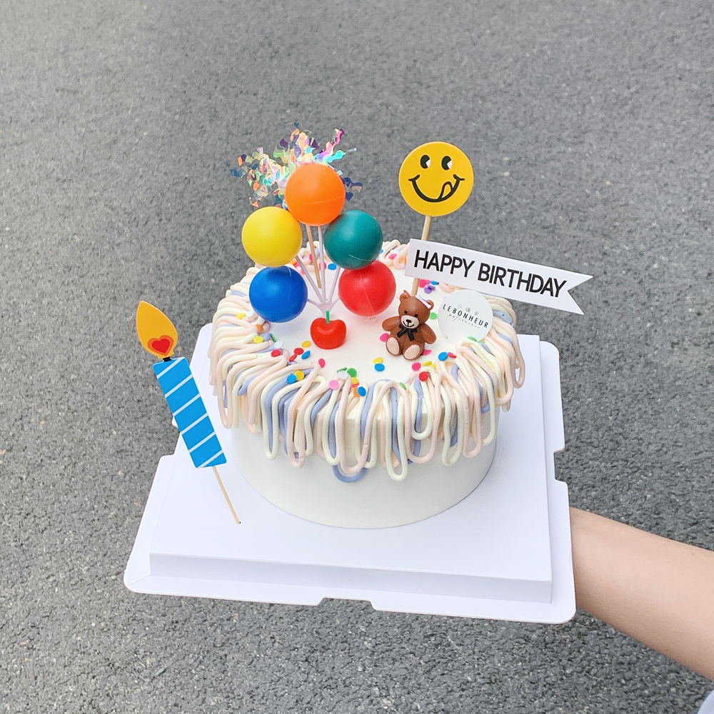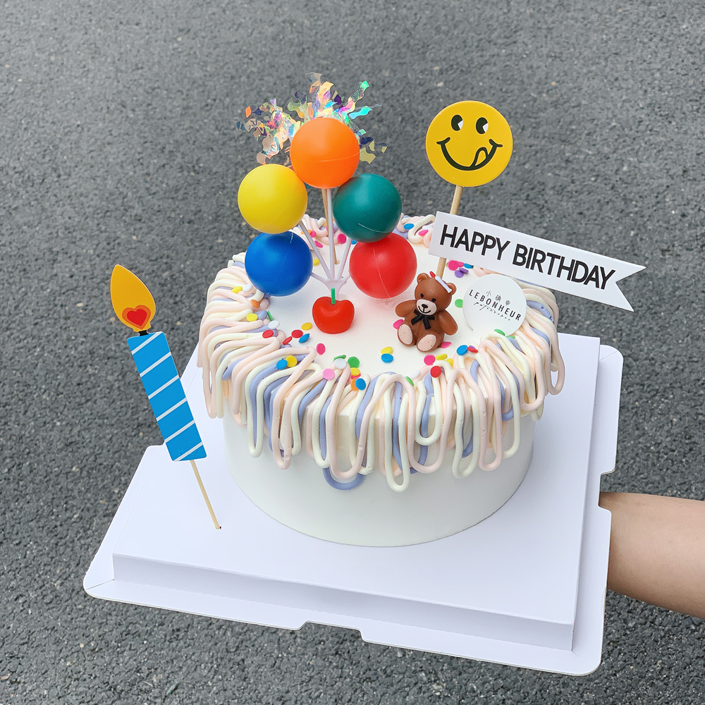 气球、蜡烛、小熊、笑脸、彩带