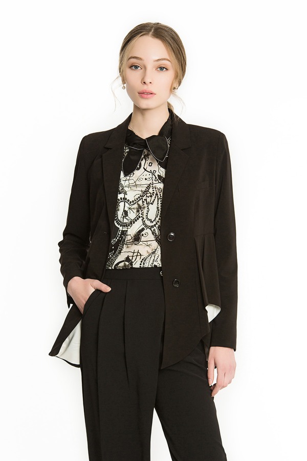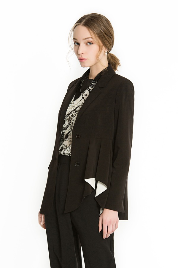 EMC亿美丞 黑色荷叶边西装外套 1130